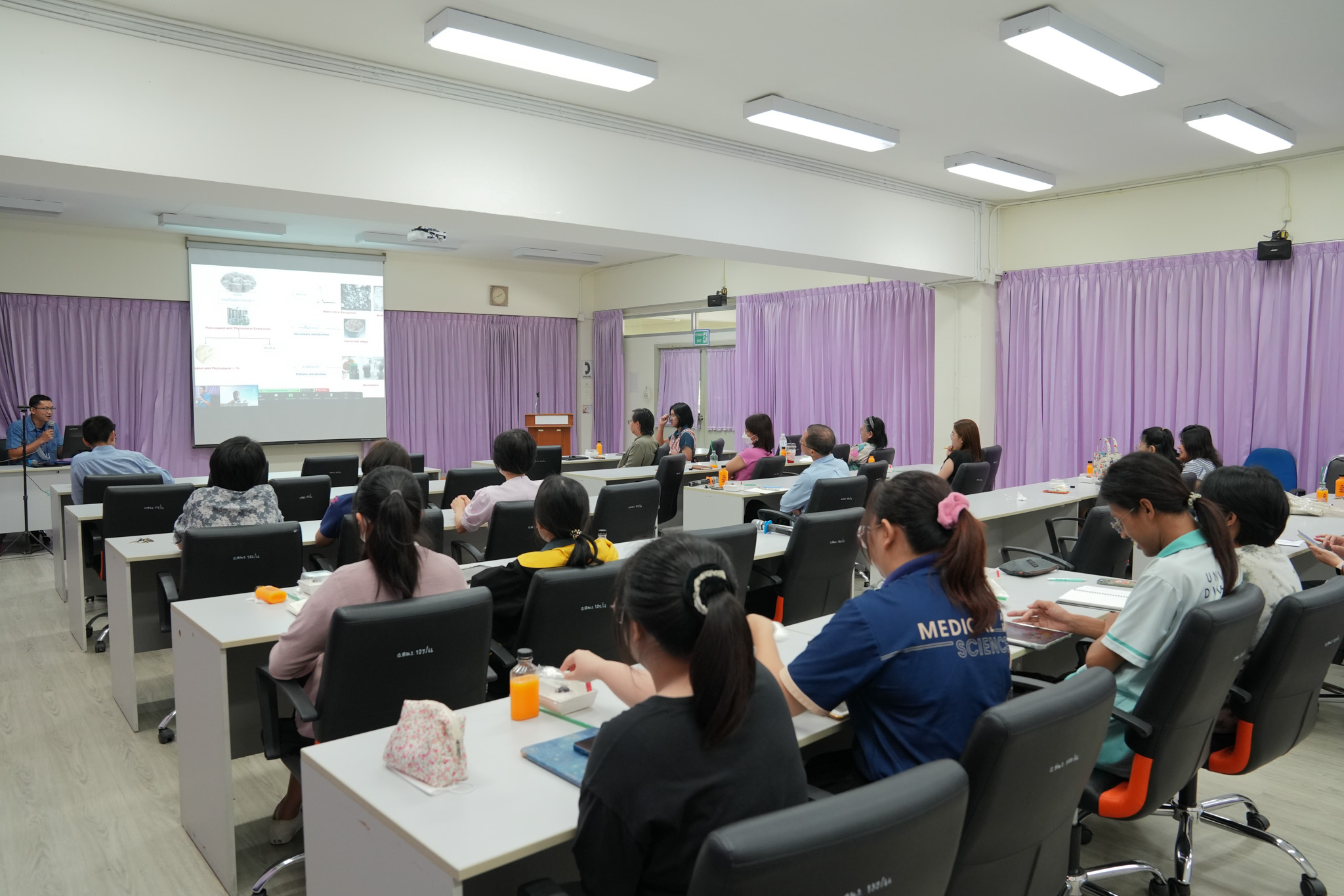 วันศุกร์ที่ 7 มิถุนายน 2567 ณ ห้องประชุม MD 417 หน่วยวิจัย คณะวิทยาศาสตร์การแพทย์ ได้ดำเนินการจัดบรรยาย หัวข้อ “งานวิจัย โจทย์วิจัย และแนวทางความร่วมมือด้านวิจัยร่วมกันด้านการใช้ประโยชน์จากกากเหลือทางการเกษตรเพื่อการผลิตชีววัสดุและผลิตภัณฑ์เสริมสุขภาพ” ซึ่งได้รับเกียรติจาก รศ.ดร.ธนัชสัณห์ พูนไพบูลย์พิพัฒน์ ภาควิชาวิทยาศาสตร์การเกษตร คณะเกษตรศาสตร์ ทรัพยากรธรรมชาติและสิ่งแวดล้อม มาเป็นวิทยากรในครั้งนี้
