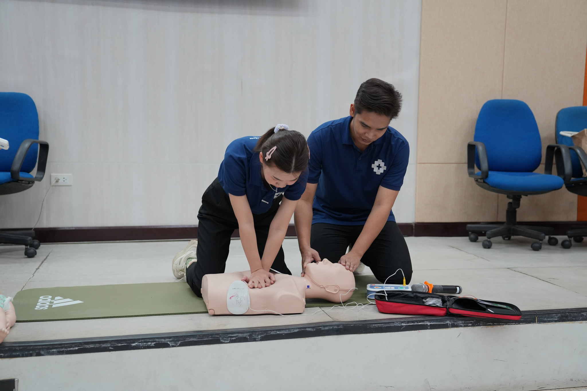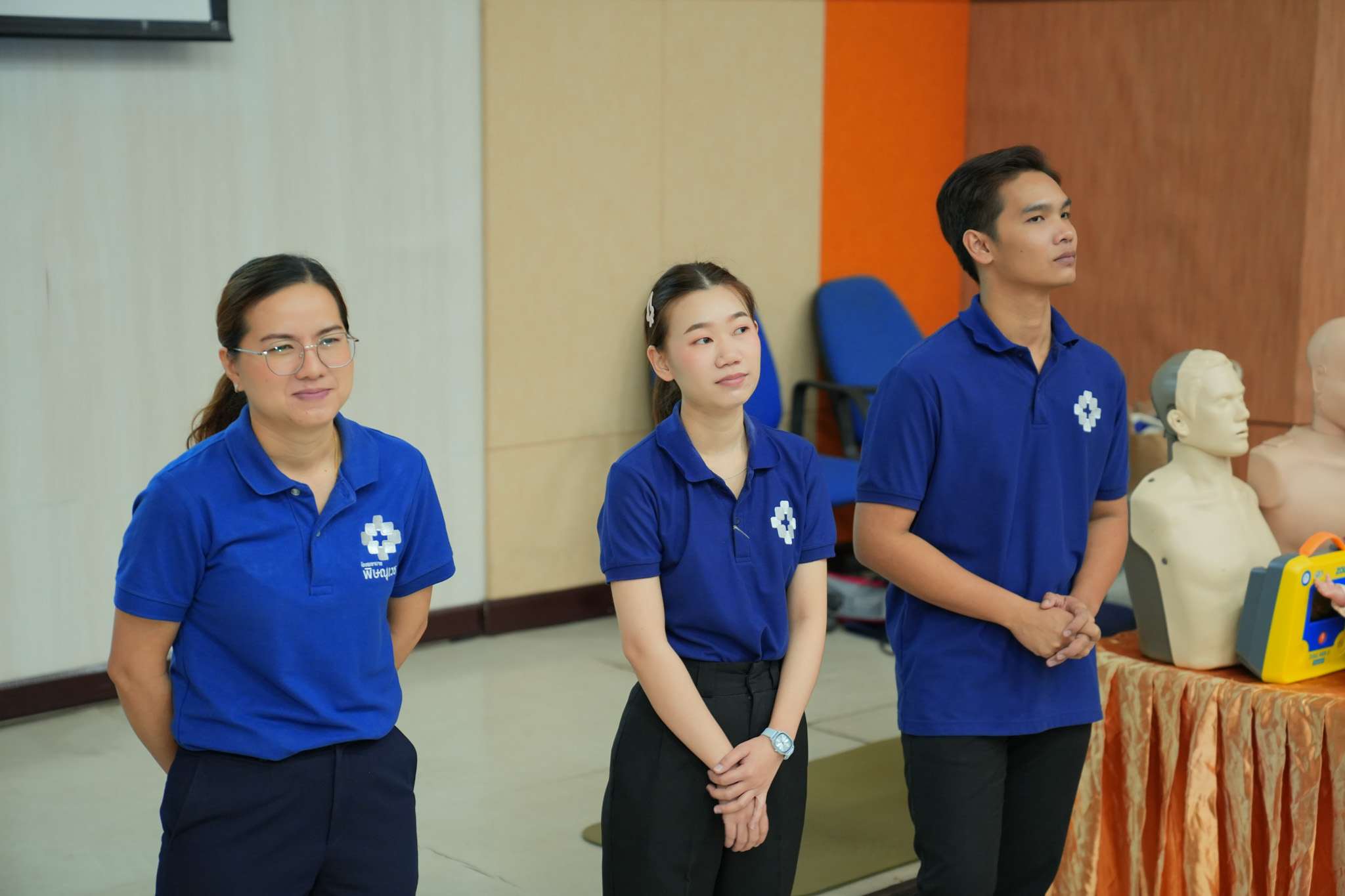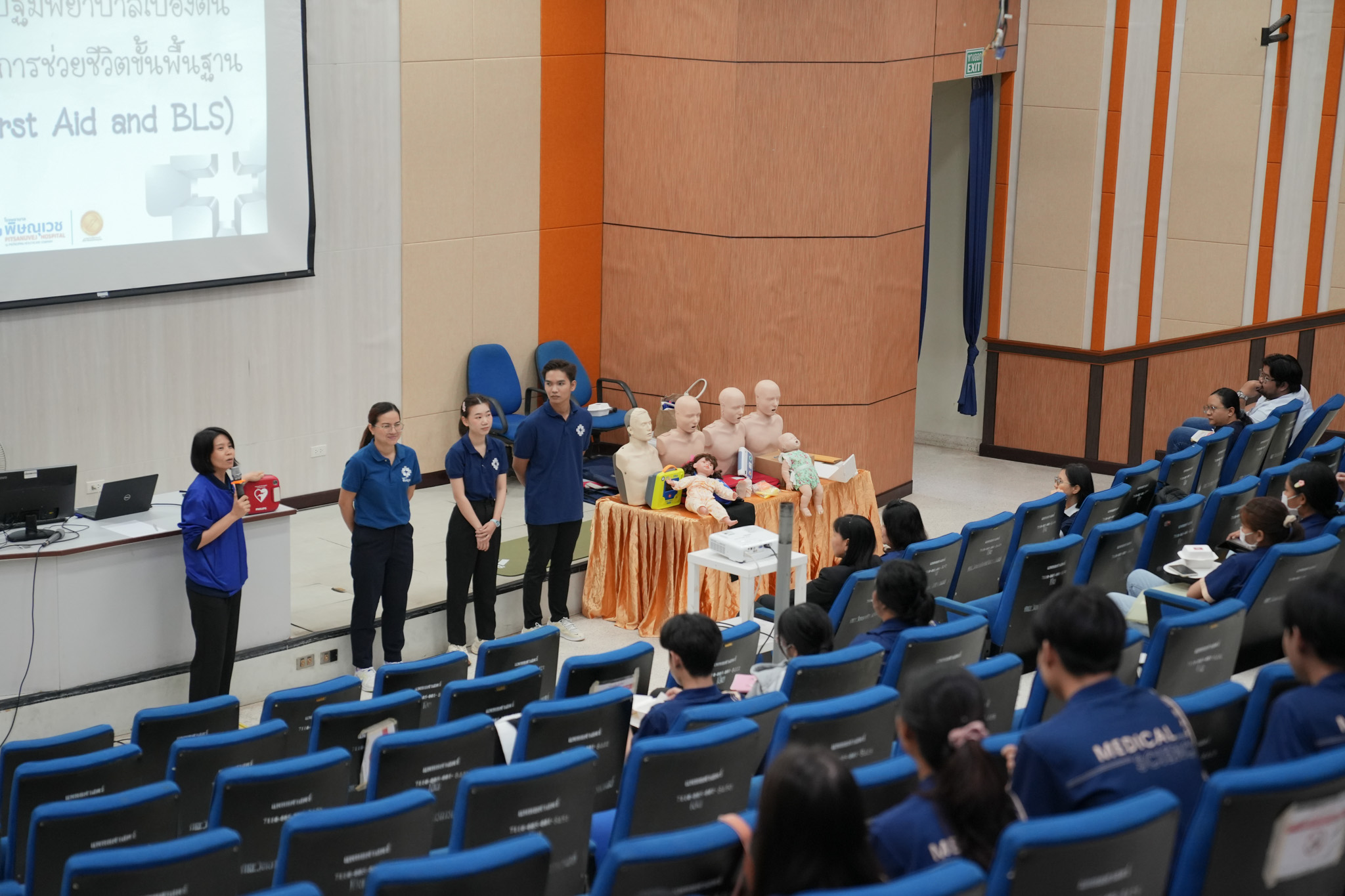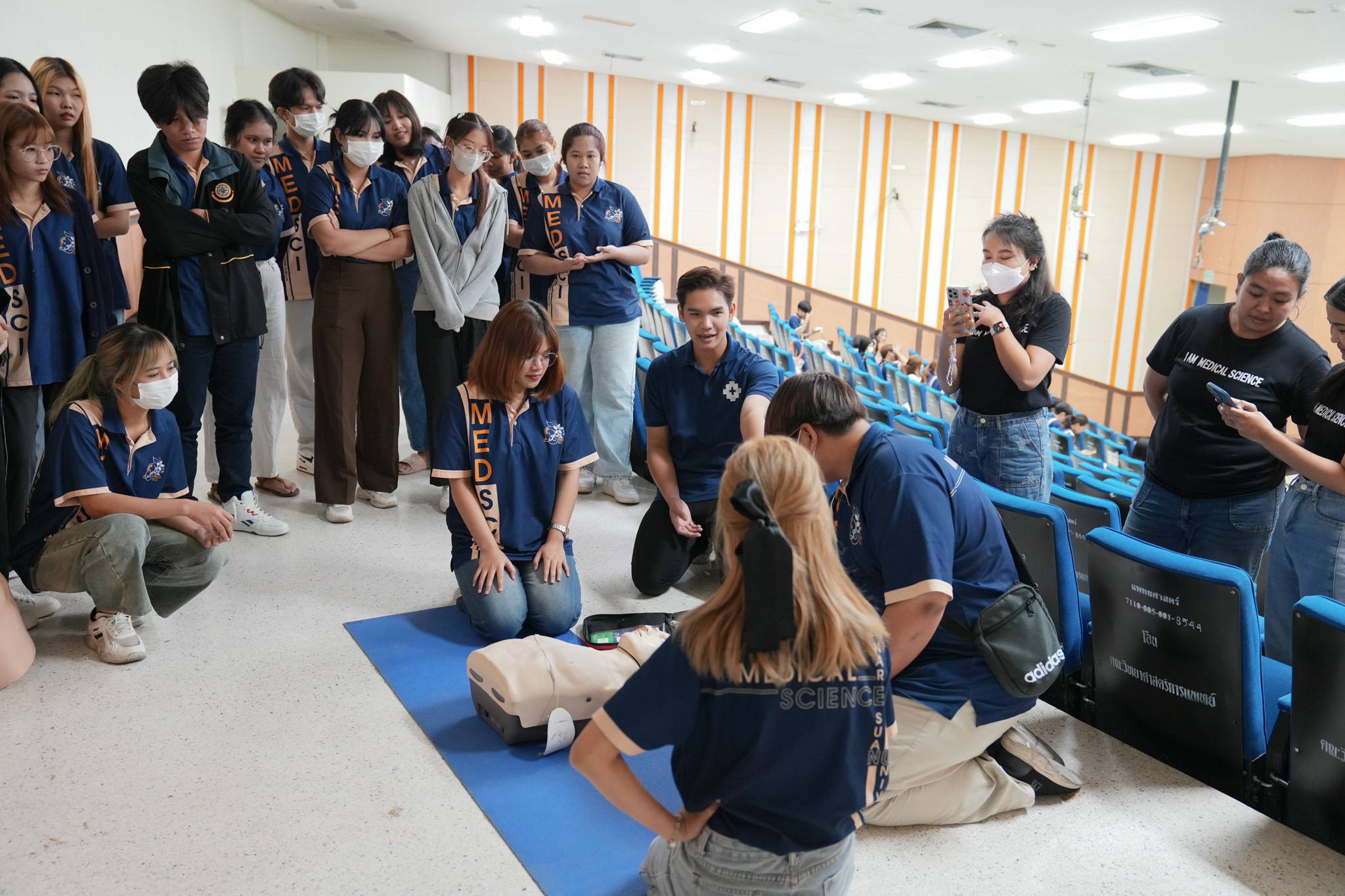 เมื่อวันเสาร์ที่ 6 กรกฎาคม 2567 ที่ผ่านมา หลักสูตรวิทยาศาสตรบัณฑิต สาขาวิชาวิทยาศาสตร์การแพทย์ ร่วมกับ ฝ่ายวิชาการ ได้จัดกิจกรรมการอบรมเชิงปฏิบัติการ “การช่วยฟื้นคืนชีพขั้นพื้นฐาน (CPR) และการใข้งานเครื่องกระตุกไฟฟ้าหัวใจอัตโนมัติ (AED)” ให้ความรู้โดยทีมวิทยากรจากโรงพยาบาลพิษณุเวช ภายใต้โครงการบริหารจัดการหลักสูตร สาขาวิชาวิทยาศาสตร์การแพทย์ โดยได้รับเกียรติจาก รองศาสตราจารย์ ดร.รักษิณา พลสีลา รองคณบดีฝ่ายการจัดการหลักสูตร เป็นประธานในพิธีเปิด และมีคณะกรรมการบริหารหลักสูตร นิสิตจากสาขาวิชาวิทยาศาสตร์การแพทย์ และสาขาวิทยาศาสตร์การแพทย์ (ตรีต่อเนื่องโท) เข้าร่วมกิจกรรมทั้งรอบเช้าและรอบบ่าย