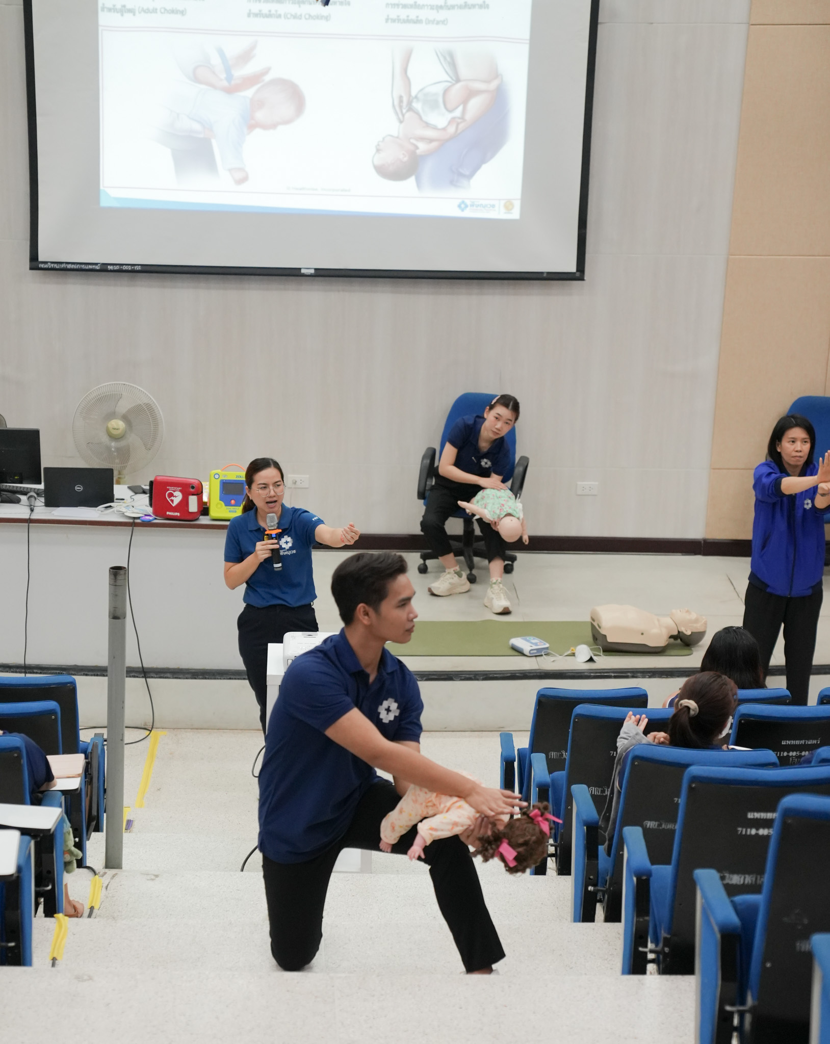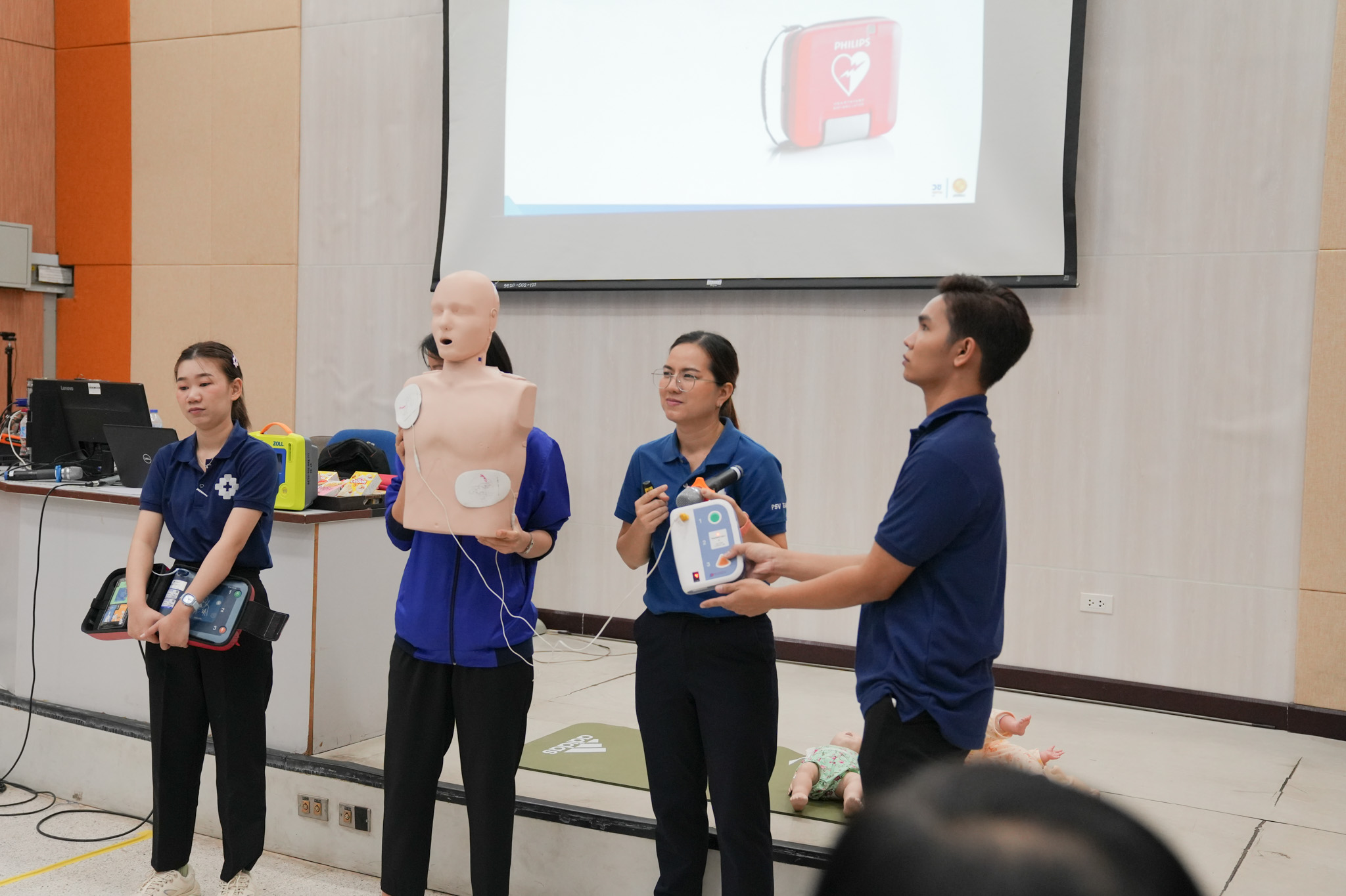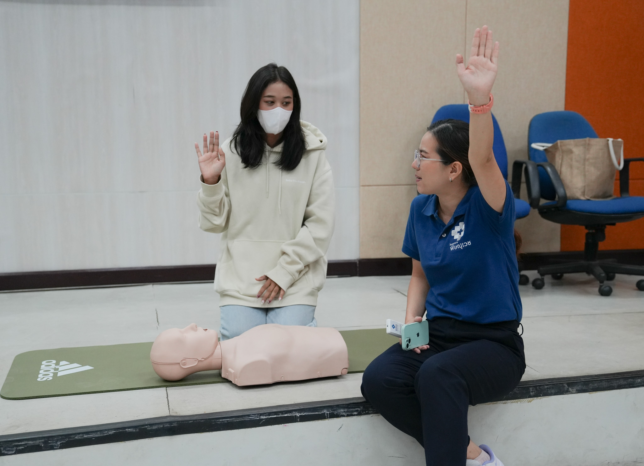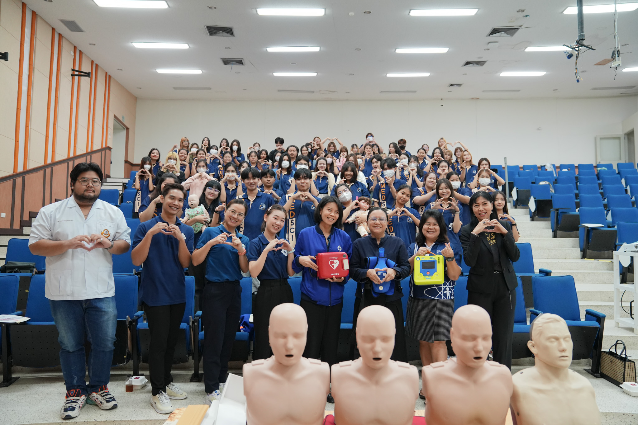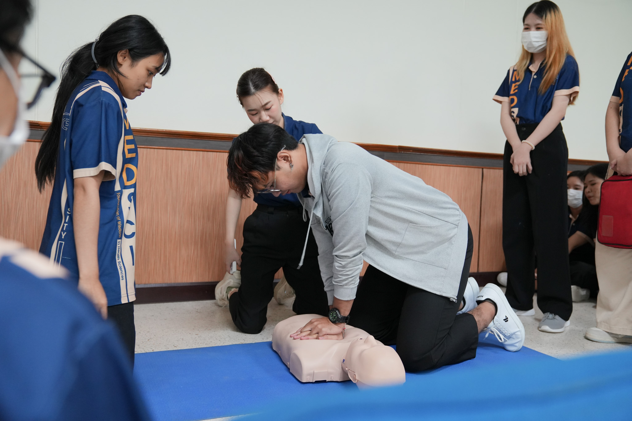 เมื่อวันเสาร์ที่ 6 กรกฎาคม 2567 ที่ผ่านมา หลักสูตรวิทยาศาสตรบัณฑิต สาขาวิชาวิทยาศาสตร์การแพทย์ ร่วมกับ ฝ่ายวิชาการ ได้จัดกิจกรรมการอบรมเชิงปฏิบัติการ “การช่วยฟื้นคืนชีพขั้นพื้นฐาน (CPR) และการใข้งานเครื่องกระตุกไฟฟ้าหัวใจอัตโนมัติ (AED)” ให้ความรู้โดยทีมวิทยากรจากโรงพยาบาลพิษณุเวช ภายใต้โครงการบริหารจัดการหลักสูตร สาขาวิชาวิทยาศาสตร์การแพทย์ โดยได้รับเกียรติจาก รองศาสตราจารย์ ดร.รักษิณา พลสีลา รองคณบดีฝ่ายการจัดการหลักสูตร เป็นประธานในพิธีเปิด และมีคณะกรรมการบริหารหลักสูตร นิสิตจากสาขาวิชาวิทยาศาสตร์การแพทย์ และสาขาวิทยาศาสตร์การแพทย์ (ตรีต่อเนื่องโท) เข้าร่วมกิจกรรมทั้งรอบเช้าและรอบบ่าย