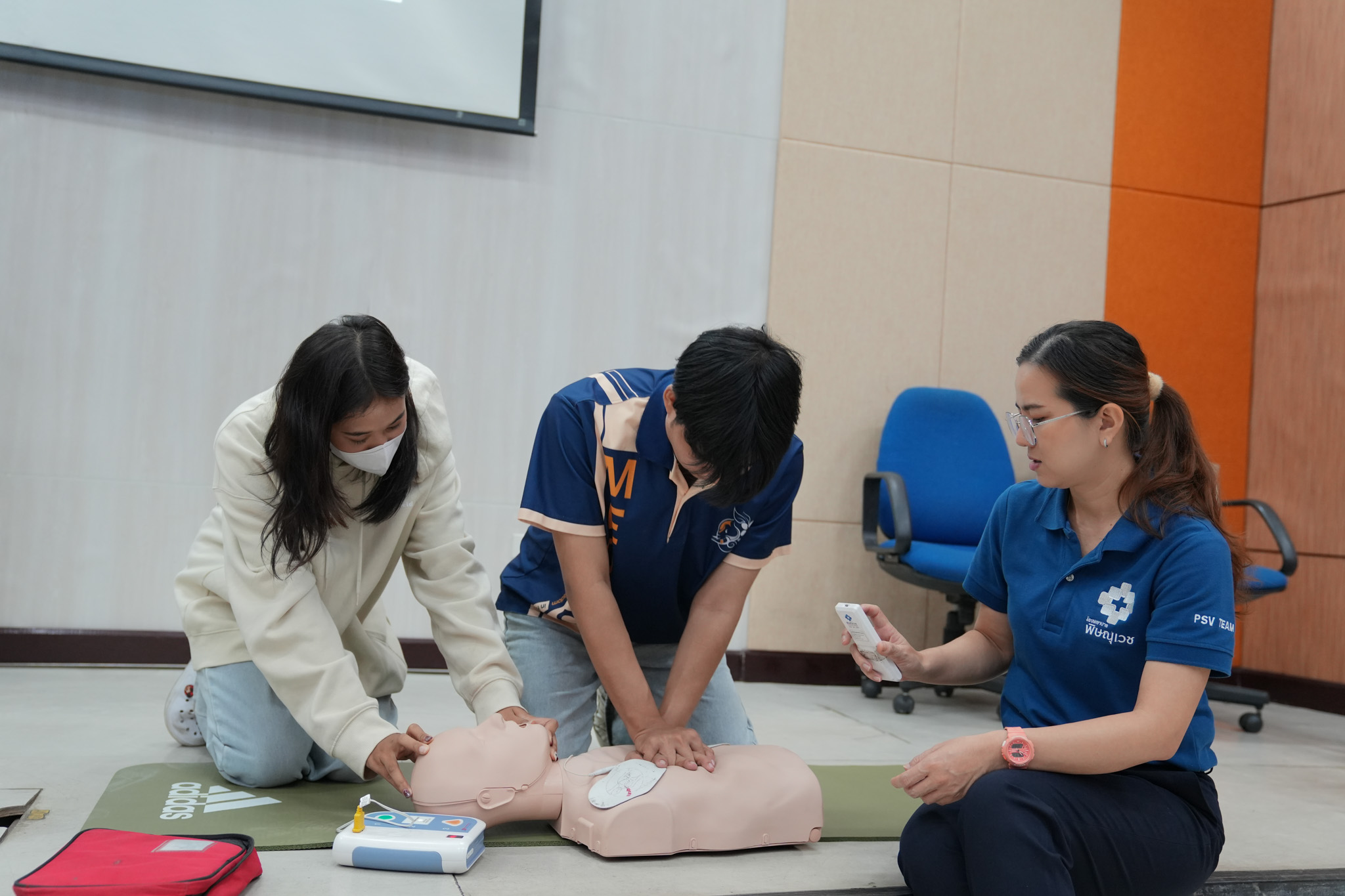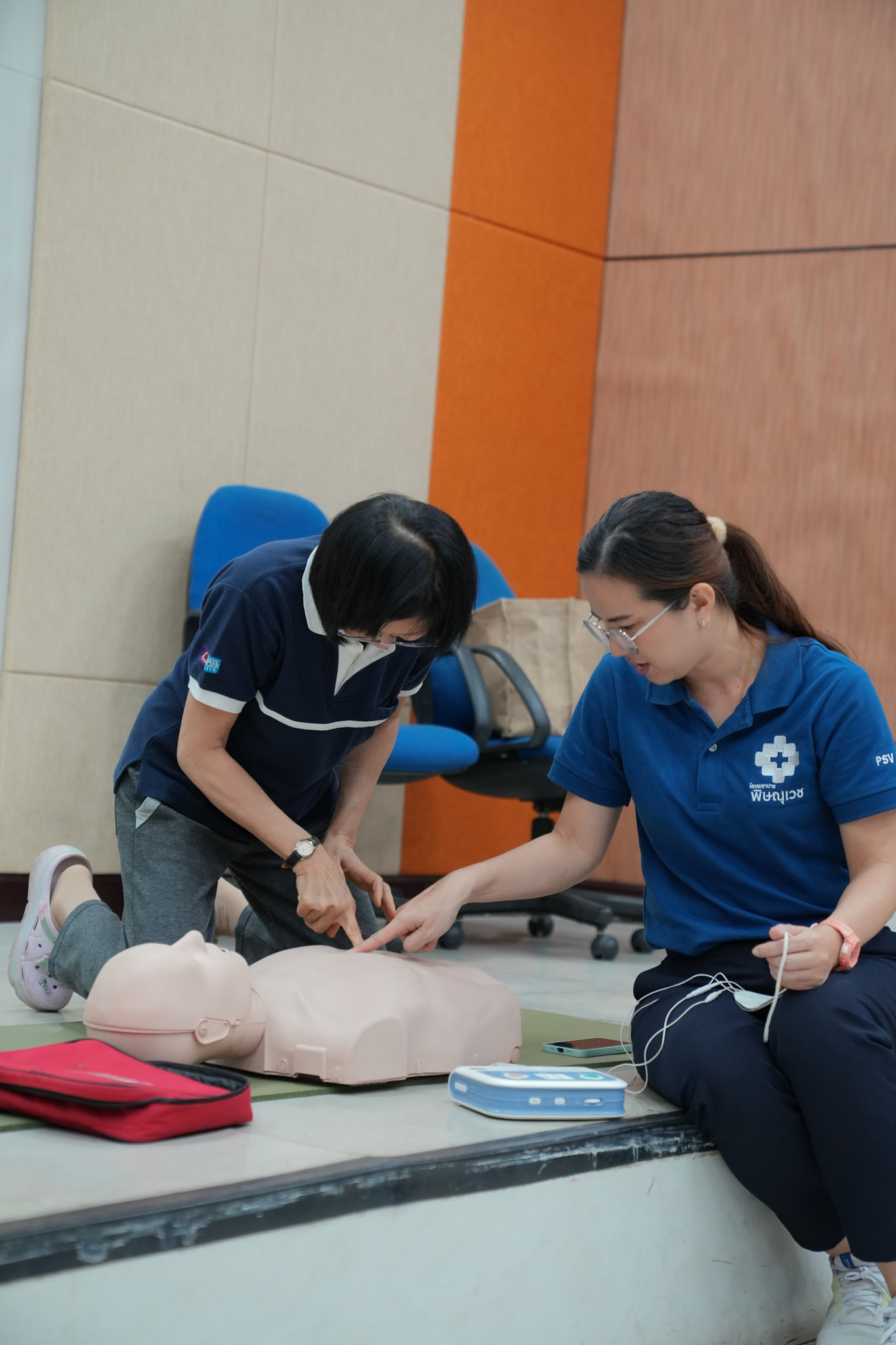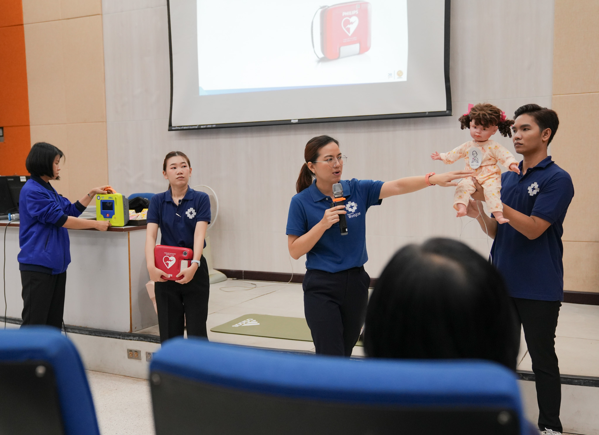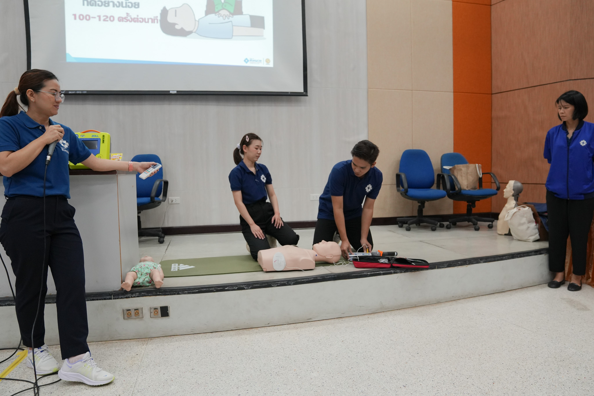เมื่อวันเสาร์ที่ 6 กรกฎาคม 2567 ที่ผ่านมา หลักสูตรวิทยาศาสตรบัณฑิต สาขาวิชาวิทยาศาสตร์การแพทย์ ร่วมกับ ฝ่ายวิชาการ ได้จัดกิจกรรมการอบรมเชิงปฏิบัติการ “การช่วยฟื้นคืนชีพขั้นพื้นฐาน (CPR) และการใข้งานเครื่องกระตุกไฟฟ้าหัวใจอัตโนมัติ (AED)” ให้ความรู้โดยทีมวิทยากรจากโรงพยาบาลพิษณุเวช ภายใต้โครงการบริหารจัดการหลักสูตร สาขาวิชาวิทยาศาสตร์การแพทย์ โดยได้รับเกียรติจาก รองศาสตราจารย์ ดร.รักษิณา พลสีลา รองคณบดีฝ่ายการจัดการหลักสูตร เป็นประธานในพิธีเปิด และมีคณะกรรมการบริหารหลักสูตร นิสิตจากสาขาวิชาวิทยาศาสตร์การแพทย์ และสาขาวิทยาศาสตร์การแพทย์ (ตรีต่อเนื่องโท) เข้าร่วมกิจกรรมทั้งรอบเช้าและรอบบ่าย