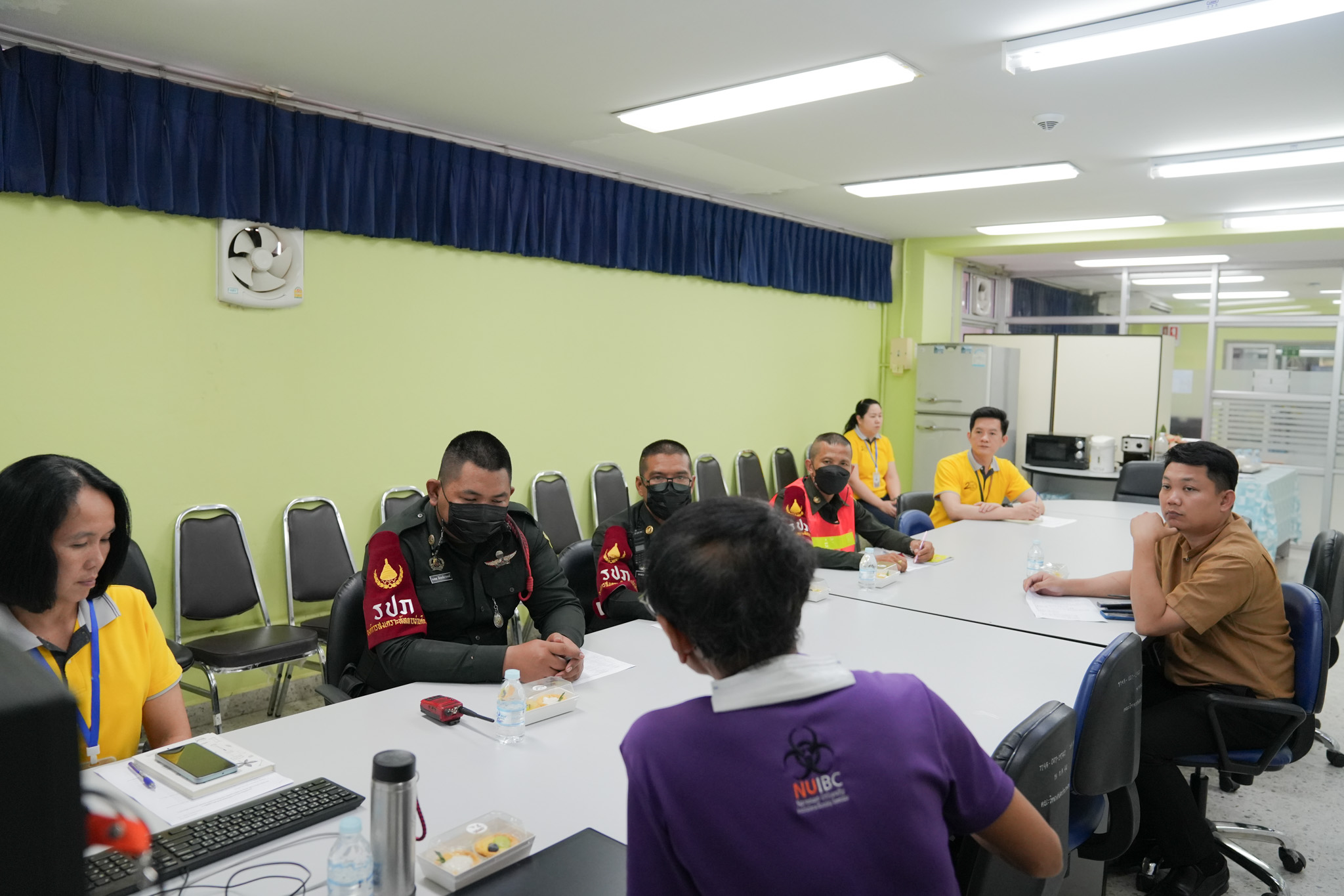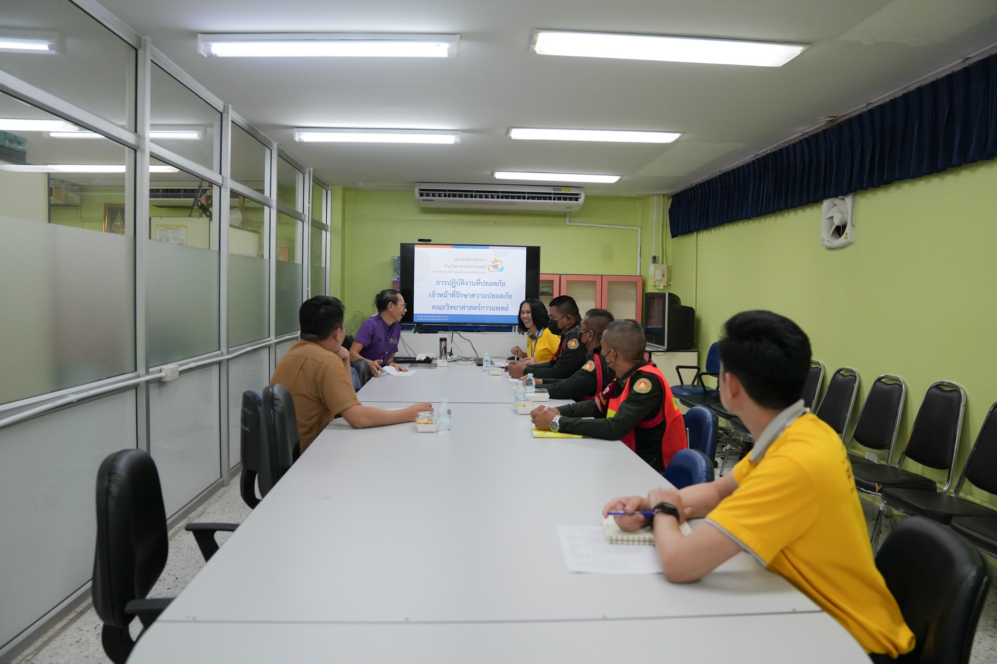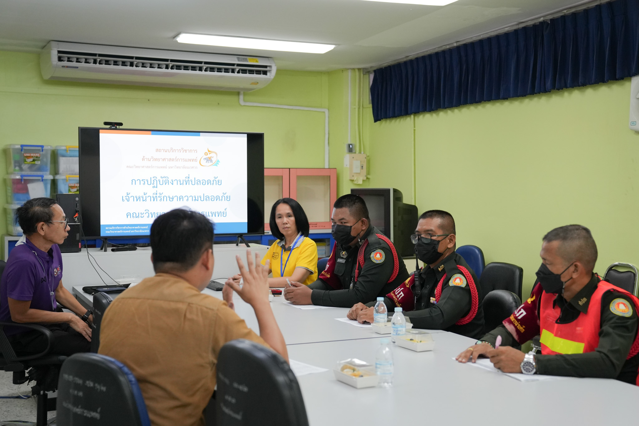 วันที่ 15 กรกฎาคม 2567 รองศาสตราจารย์ ดร.วรศักดิ์ แก้วก่อง รองคณบดีฝ่ายบริหารและส่งเสริมความยั่งยืน พร้อมด้วยบุคลากรสถานบริการวิชาการด้านวิทยาศาสตร์การแพทย์ ร่วมดำเนินกิจกรรมการให้ความรู้เรื่อง “การปฏิบัติงานด้านความปลอดภัยสำหรับเจ้าหน้าที่รักษาความปลอดภัย” แก่พนักงานรักษาความปลอดภัยคณะวิทยาศาสตร์การแพทย์ โดยวิทยากร ดร.วิสาข์ สุพรรณไพบูลย์ คณะกรรมการความปลอดภัยด้านสารเคมี มหาวิทยาลัยนเรศวร ทั้งนี้ ได้ให้ความรู้และสร้างความเข้าใจเรื่องบทบาทหน้าที่ความรับผิดชอบการระงับอัคคีภัยและอพยพหนีไฟสำหรับเจ้าหน้าที่รักษาความปลอดภัย ณ ห้องประชุม MD 513 สถานบริการวิชาการด้านวิทยาศาสตร์การแพทย์ คณะวิทยาศาสตร์การแพทย์