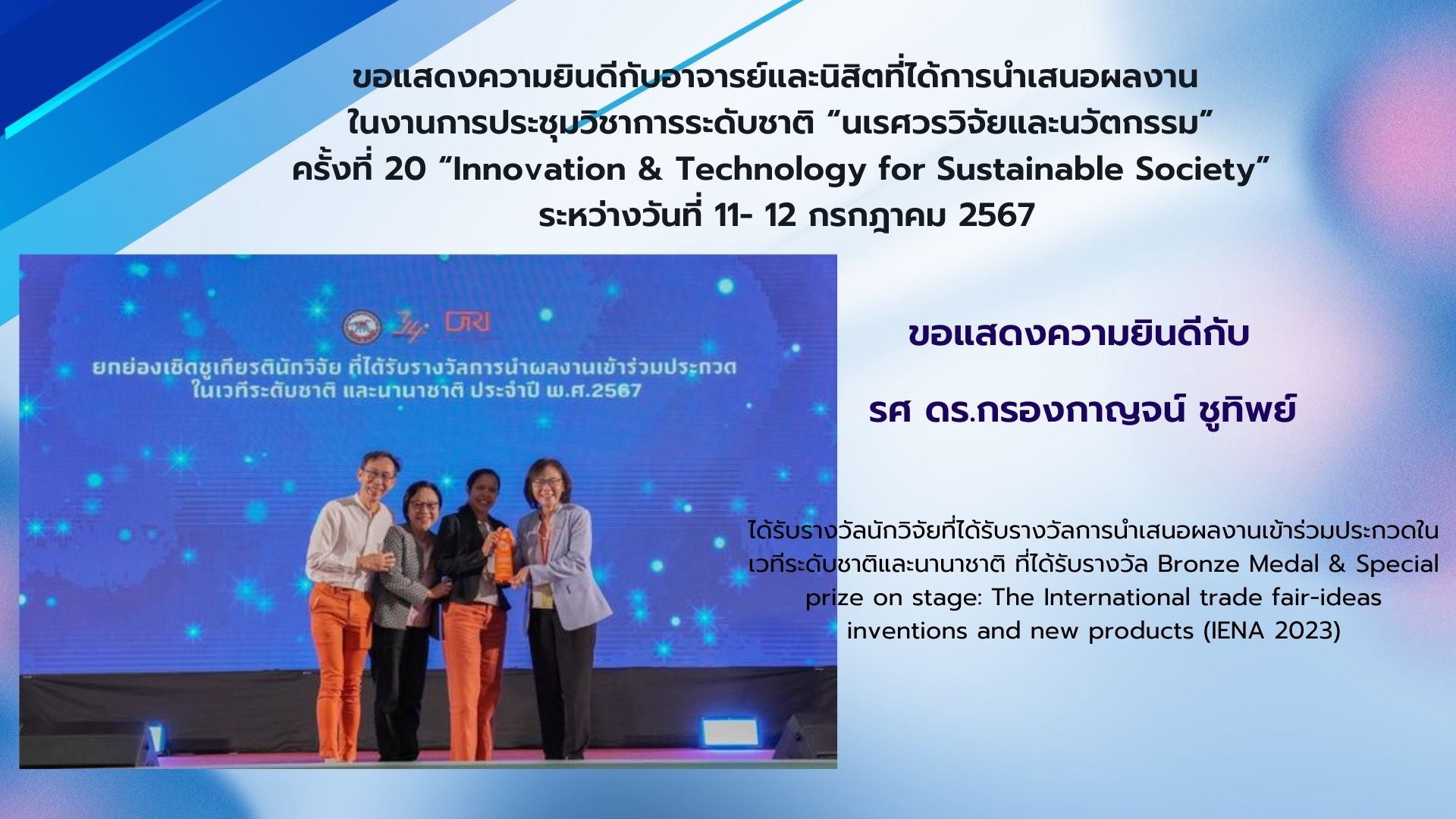 ขอแสดงความยินดีกับรองศาสตราจารย์ ดร.กรองกาญจน์ ชูทิพย์