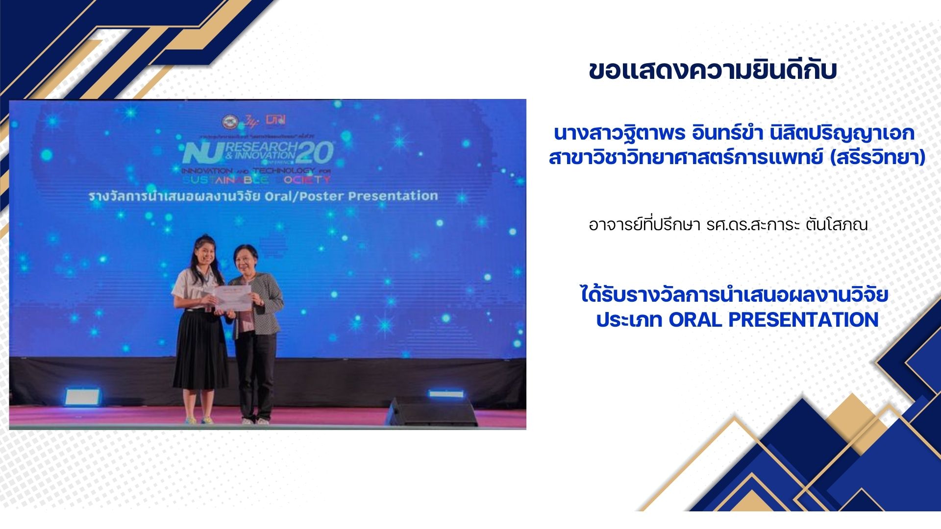 นางสาวฐิตาพร อินทร์ขำ นิสิตปริญญาเอก สาขาวิชาวิทยาศาสตร์การแพทย์ (สรีรวิทยา)