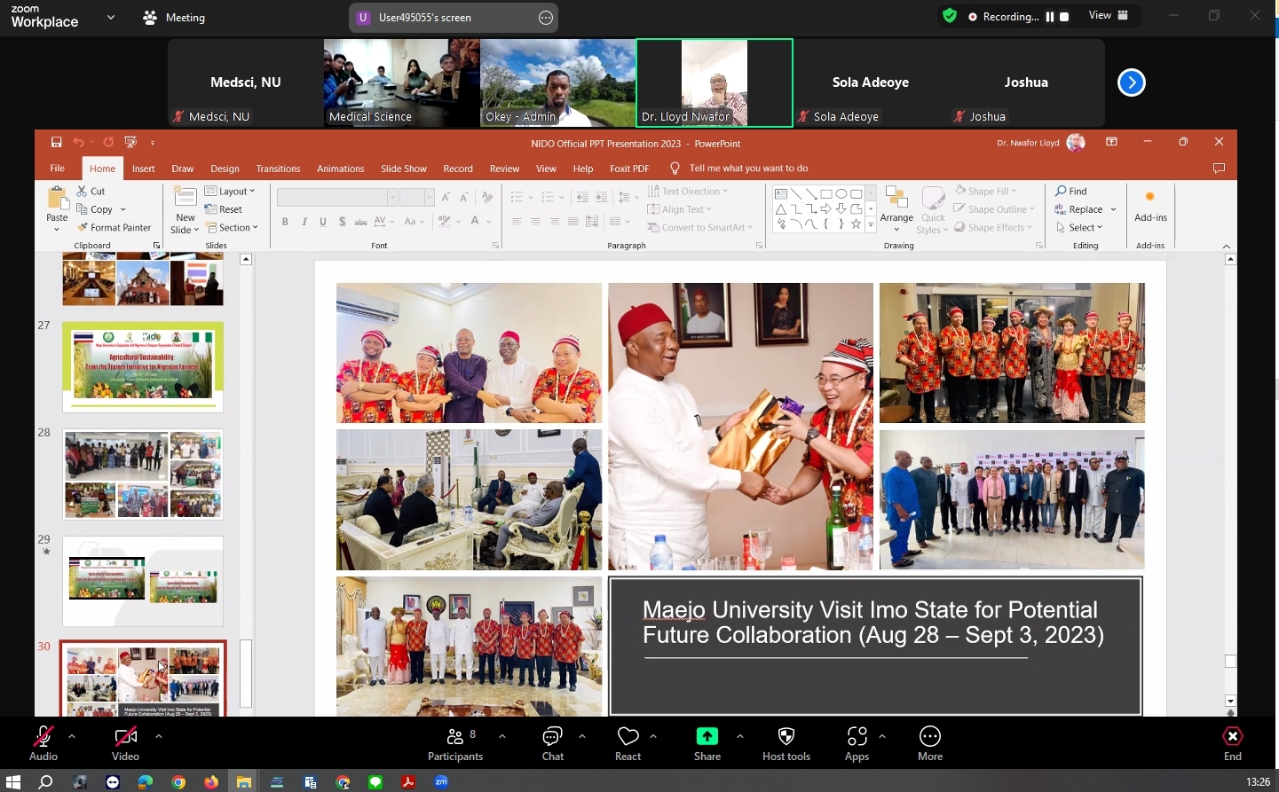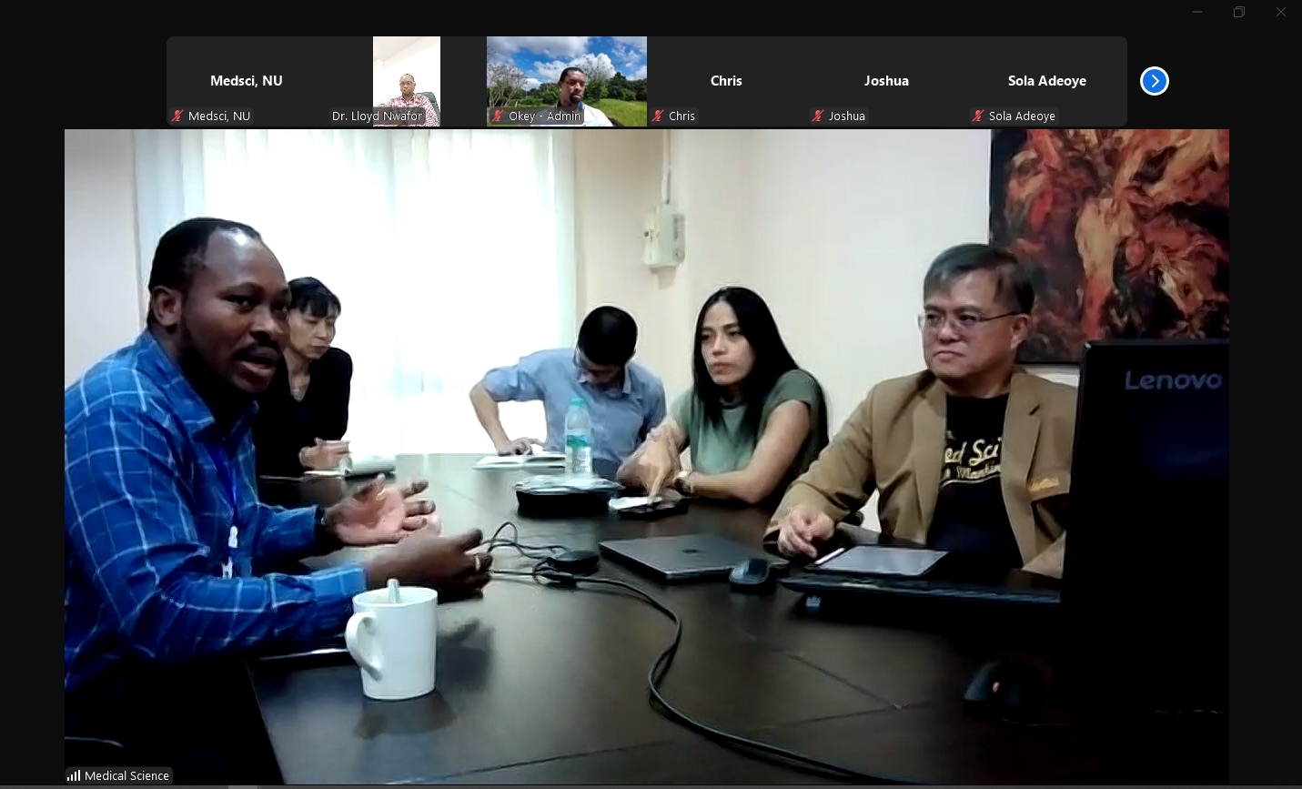เมื่อวันที่ 19 กรกฎาคม 2567 คณะวิทยาศาสตร์การแพทย์ นำโดย รองศาสตราจารย์ ดร.สุขกิจ ยะโสธรศรีกุล คณบดีคณะวิทยาศาสตร์การแพทย์ พร้อมด้วย รองศาสตราจารย์ ดร.วรศักดิ์ แก้วก่อง รองคณบดีฝ่ายบริหารและส่งเสริมความยั่งยืน, รองศาสตราจารย์ ดร.รักษิณา พลสีลา รองคณบดีฝ่ายการจัดการหลักสูตร, ผู้ช่วยศาสตราจารย์ ดร.ภาคภูมิ ทรัพย์สุนทร รองคณบดีฝ่ายวิจัยและนวัตกรรม, ดร.หทัยชนก อิ่มเพ็ง รองคณบดีฝ่ายพัฒนานิสิต และ Mr. Olalekan Israel AIIkulola ผู้มีความรู้ความสามารถพิเศษประจำคณะ ได้เข้าร่วมประขุม และหารือการสร้างความร่วมมือในด้านต่างๆ ทั้งในด้านการวิจัย การเรียนการสอน การแลกเปลี่ยนบุคลากร รวมถึงการจัดกิจกรรมต่างๆร่วมกัน กับ Nigerians In Diaspora Organization Thailand (NIDO) นำโดย Dr. Nwafor C. Lloyd. President of NIDO พร้อมทีมผู้บริหาร ทั้งนี้ได้ประชุมผ่านระบบ Online Zoom Meeting