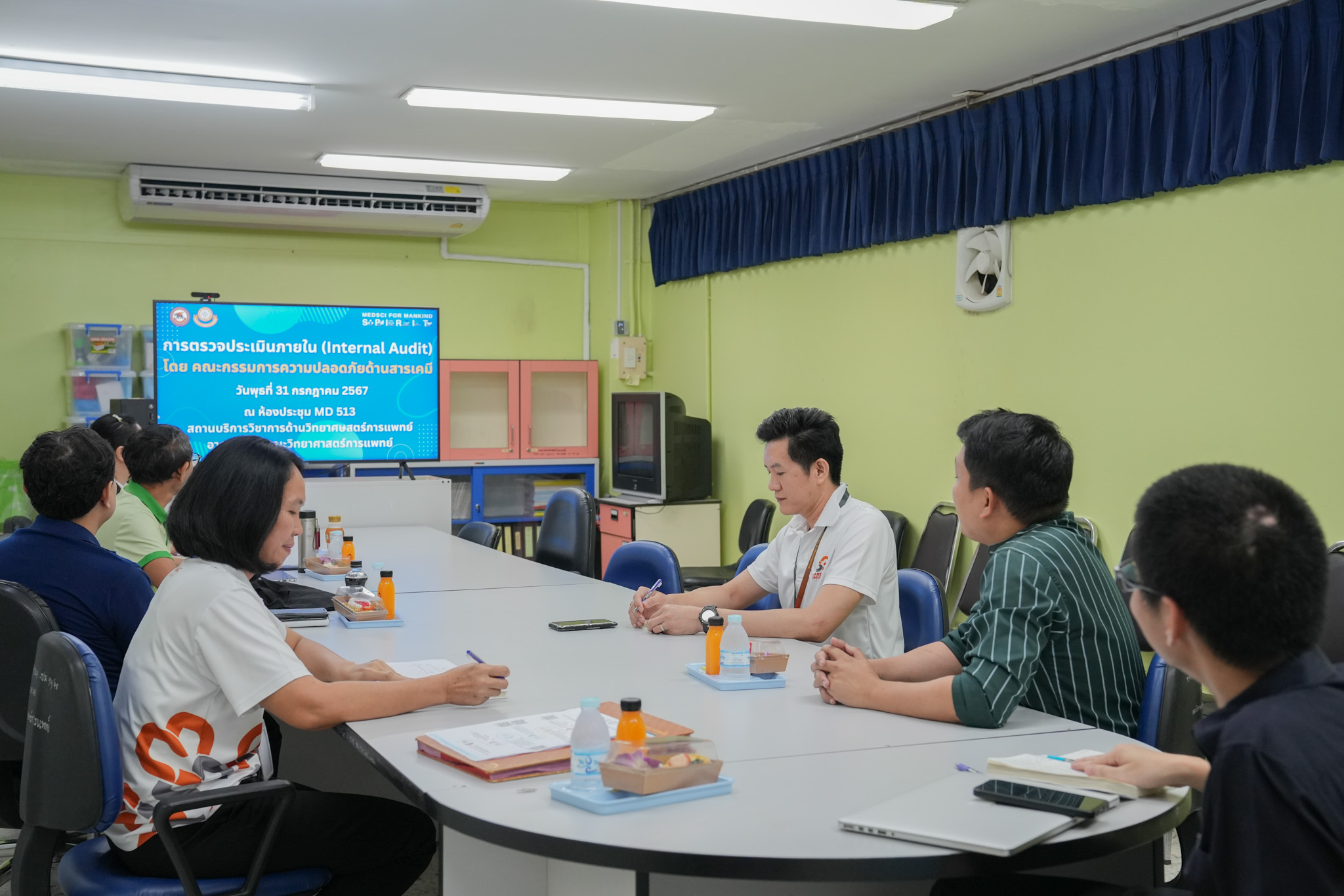 วันพุธที่ 31 กรกฎาคม 2567 รองศาสตราจารย์ ดร.วรศักดิ์ แก้วก่อง รองคณบดีฝ่ายบริหารและส่งเสริมความยั่งยืน พร้อมด้วย ผู้ช่วยศาสตราจารย์ ดร.ภาคภูมิ ทรัพย์สุนทร ผู้อำนวยการสถานบริการวิชาการวิชาการด้านวิทยาศาสตร์การแพทย์ และบุคลากรสถานบริการวิชาการด้านวิทยาศาสตร์การแพทย์ ร่วมรับฟังการตรวจประเมินภายใน (Internal Audit) เพื่อตรวจประเมินห้องปฏิบัติการ (MD 513) สถานบริการวิชาการด้านวิทยาศาสตร์การแพทย์ ตามข้อกำหนดมาตรฐานผลิตภัณฑ์อุตสาหกรรมระบบการจัดการด้านความปลอดภัยของห้องปฏิบัติการที่เกี่ยวกับเคมี (มอก.2677-2558) โดยคณะกรรมการด้านมาตรฐานความปลอดภัยห้องปฏิบัติการเกี่ยวข้องกับสารเคมี มหาวิทยาลัยนเรศวร ณ ห้องประชุม MD 513 สถานบริการวิชาการด้านวิทยาศาสตร์การแพทย์ อาคารเรียนคณะวิทยาศาสตร์การแพทย์