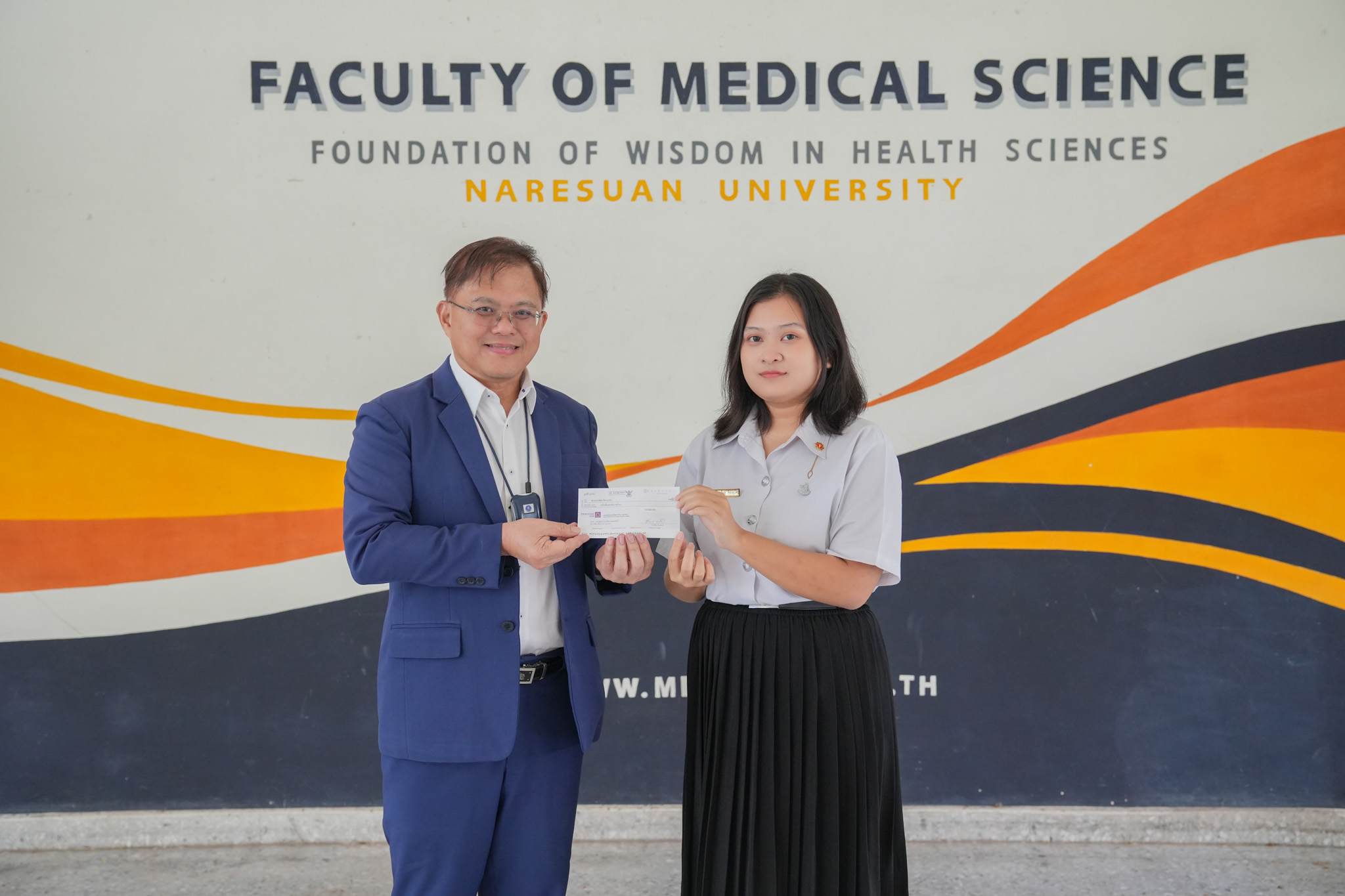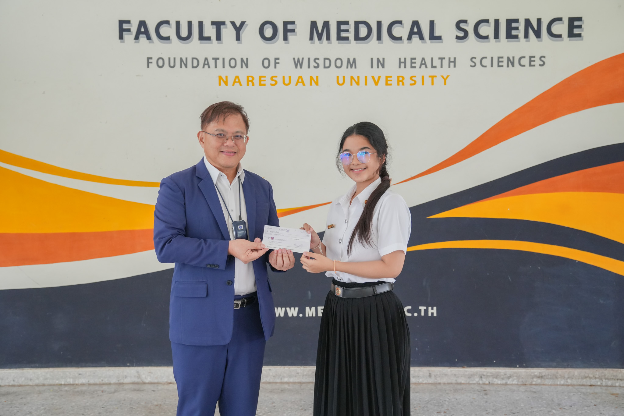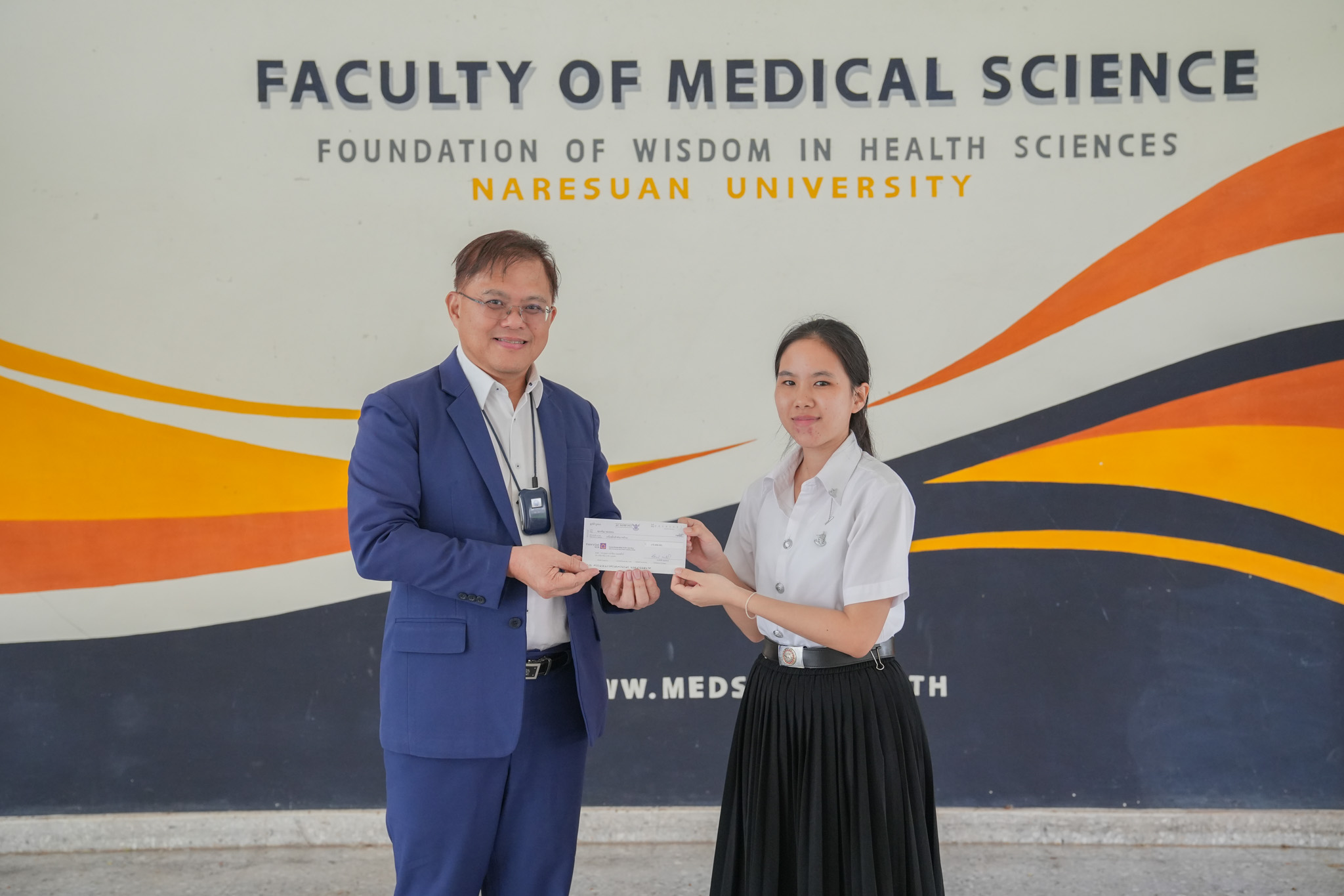 ทั้งนี้ คณบดีคณะวิทยาศาสตร์การแพทย์ รองศาสตราจารย์ ดร.สุขกิจ ยะโสธรศรีกุล เป็นตัวแทนมูลนิธิบ้านสุทธาวาสเฉลิมพระเกียรติฯ มอบทุนการศึกษาให้กับนิสิต และขอขอบพระคุณในความกรุณาที่มอบให้กับนิสิต และหวังเป็นอย่างยิ่งว่า นิสิตทุกคนจะนำทุนการศึกษาที่ได้รับไปใช้ประโยชน์สูงสุดและแบ่งปันความรู้ ความสามารถของตนเอง สานฝันให้กับน้องๆ ในการเข้าศึกษาต่อระดับอุดมศึกษาต่อไป