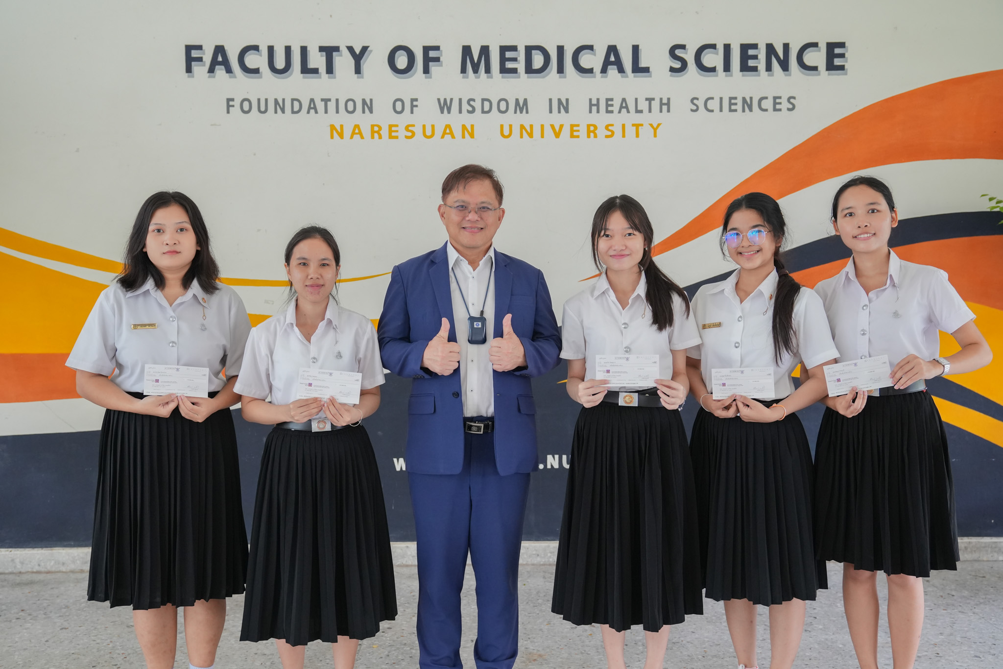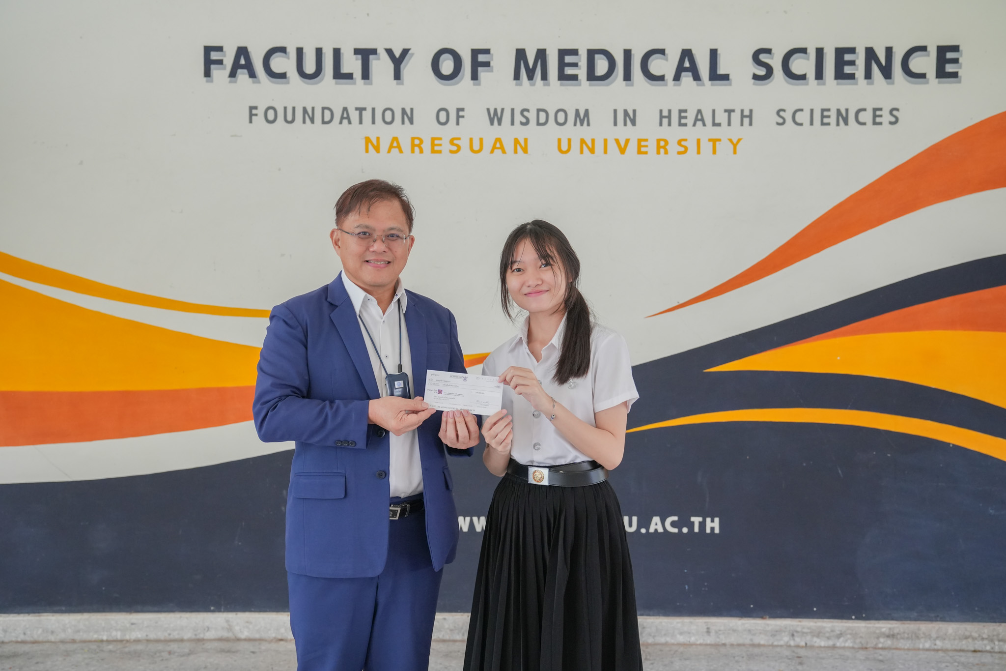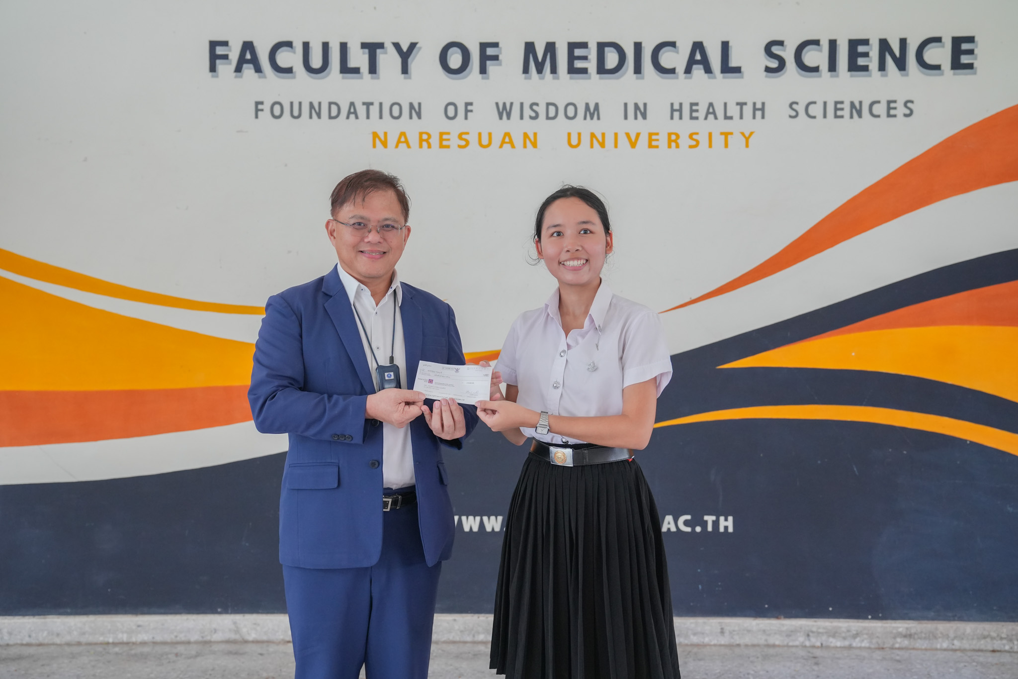 ทั้งนี้ คณบดีคณะวิทยาศาสตร์การแพทย์ รองศาสตราจารย์ ดร.สุขกิจ ยะโสธรศรีกุล เป็นตัวแทนมูลนิธิบ้านสุทธาวาสเฉลิมพระเกียรติฯ มอบทุนการศึกษาให้กับนิสิต และขอขอบพระคุณในความกรุณาที่มอบให้กับนิสิต และหวังเป็นอย่างยิ่งว่า นิสิตทุกคนจะนำทุนการศึกษาที่ได้รับไปใช้ประโยชน์สูงสุดและแบ่งปันความรู้ ความสามารถของตนเอง สานฝันให้กับน้องๆ ในการเข้าศึกษาต่อระดับอุดมศึกษาต่อไป