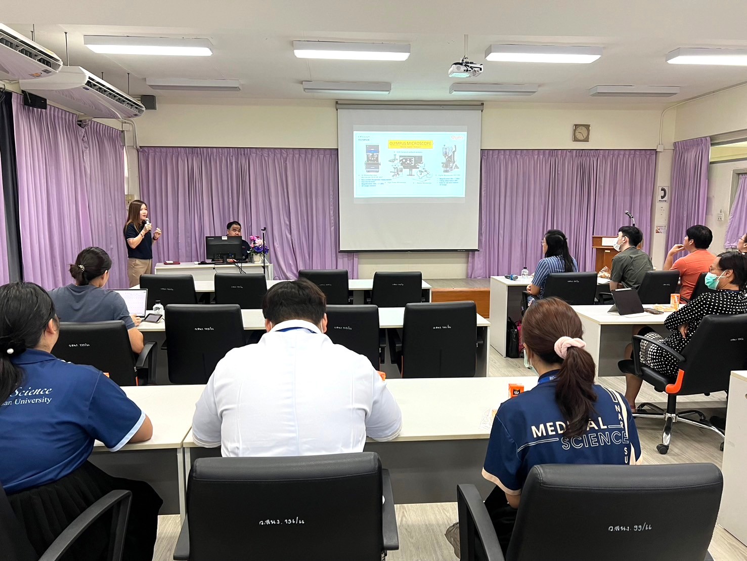 วันพฤหัสบดีที่ 12 กันยายน 2567 สถานบริการวิชาการด้านวิทยาศาสตร์การแพทย์ ดำเนินการจัดโครงการอบรมเชิงปฏิบัติการด้านเครื่องมือวิทยาศาสตร์ กิจกรรมสัมมนา (workshop) หัวข้อเรื่อง “3D Digital Microscope DSX1000” โดยวิทยากรจาก บริษัท ควอลิตี้ รีพอร์ท จำกัด ทั้งนี้ ผู้เข้าร่วมโครงการได้รับชมการสาธิตการใช้งานกล้องจุลทรรศน์แบบดิจิตอลความละเอียดสูง และได้นำตัวอย่างชิ้นงานมาทดสอบกล้องเพื่อวิเคราะห์ชิ้นงานและวัตถุต่างทางด้านวิทยาศาสตร์การแพทย์ ณ ห้องประชุม MD 417 อาคารเรียนคณะวิทยาศาสตร์การแพทย์