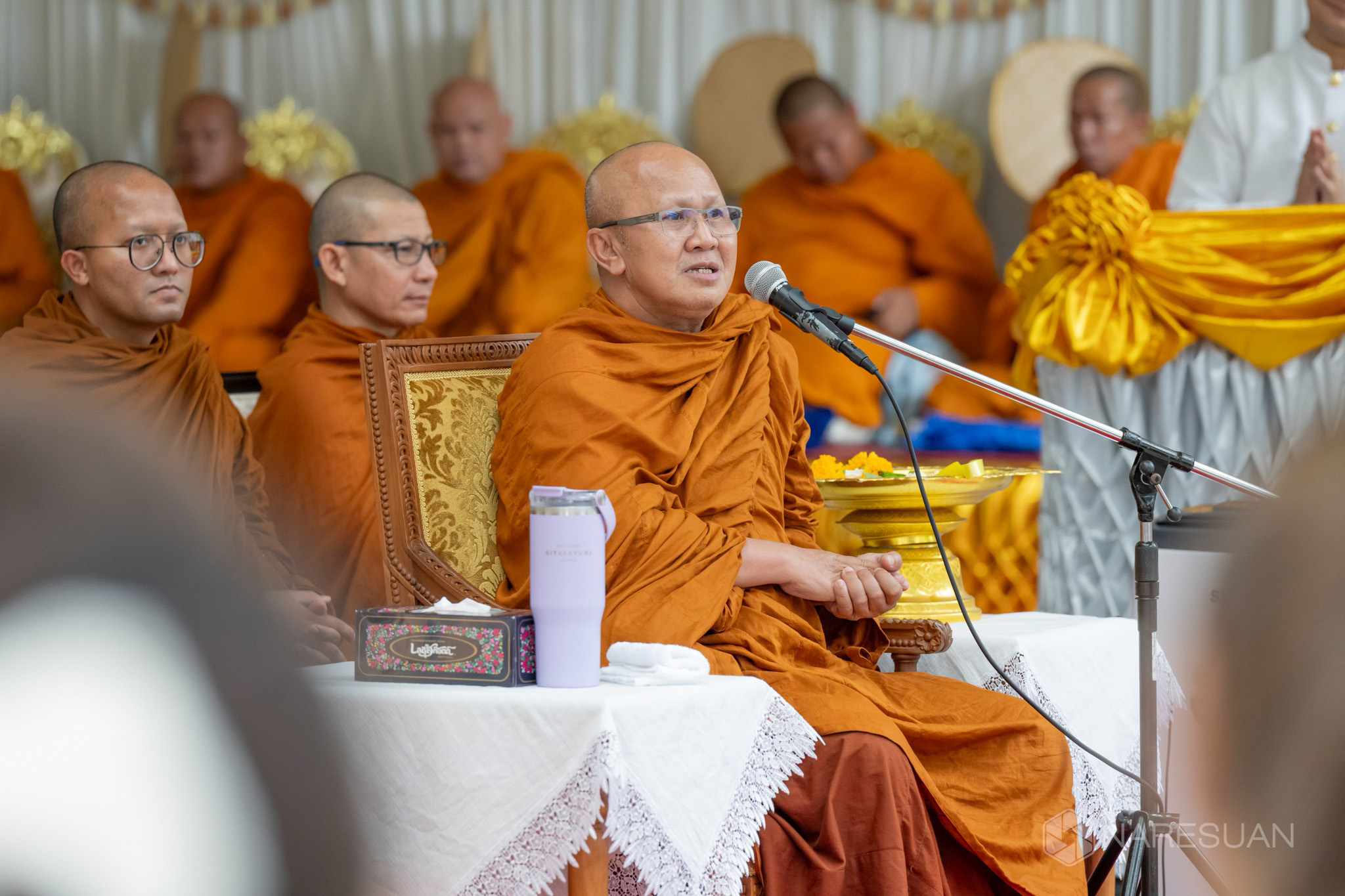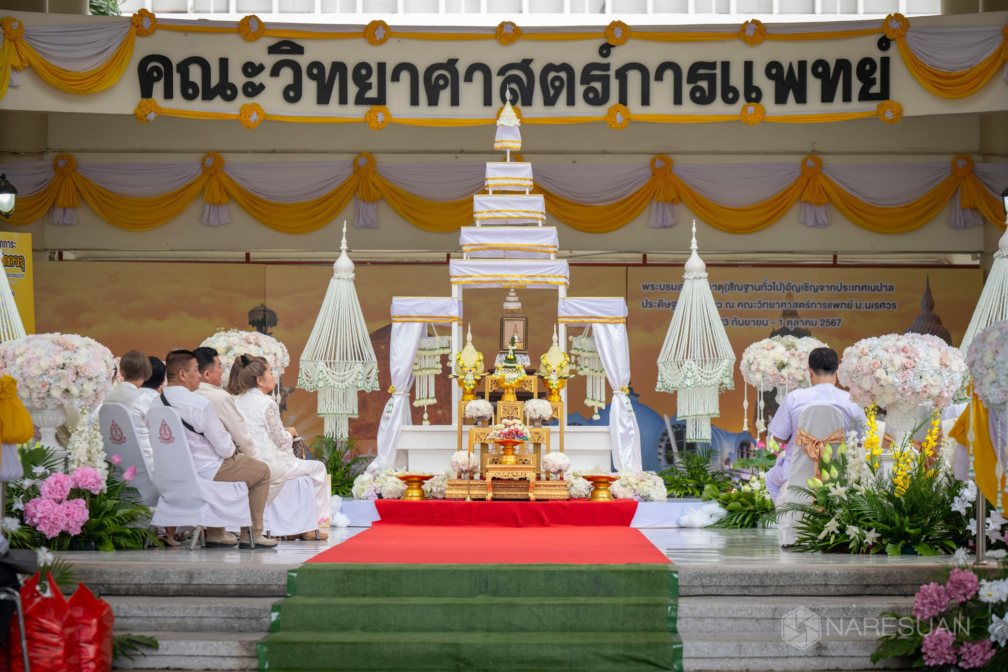 วันที่ 23 กันยายน 2567 คณะวิทยาศาสตร์การแพทย์ ร่วมกับ สมาคมธุรกิจการท่องเที่ยวจังหวัดพิษณุโลกและสภาอุตสาหกรรมจังหวัดพิษณุโลก จัดพิธีอัญเชิญพระบรมสารีริกธาตุ (สัญฐานทั่วไป) จากประเทศเนปาล แดนประสูติสมเด็จพระสัมมาสัมพุทธเจ้า ประดิษฐานชั่วคราว ณ คณะวิทยาศาสตร์การแพทย์ ตั้งแต่วันที่ 23 กันยายน ถึง วันที่ 1 ตุลาคม 2567 โดย ผู้ช่วยศาสตราจารย์ ดร.จรูญ สารินทร์ รักษาการในตำแหน่งผู้อำนวยการสำนักงานอธิการบดี เป็นประธานในพิธี พร้อมด้วยรองศาสตราจารย์ ดร.สุขกิจ ยะโสธรศรีกุล คณบดีคณะวิทยาศาสตร์การแพทย์ คณะผู้บริหาร บุคลากรและนิสิตร่วมพิธีดังกล่าว ณ โถงแก้ว คณะวิทยาศาสตร์การแพทย์ มหาวิทยาลัยนเรศวร