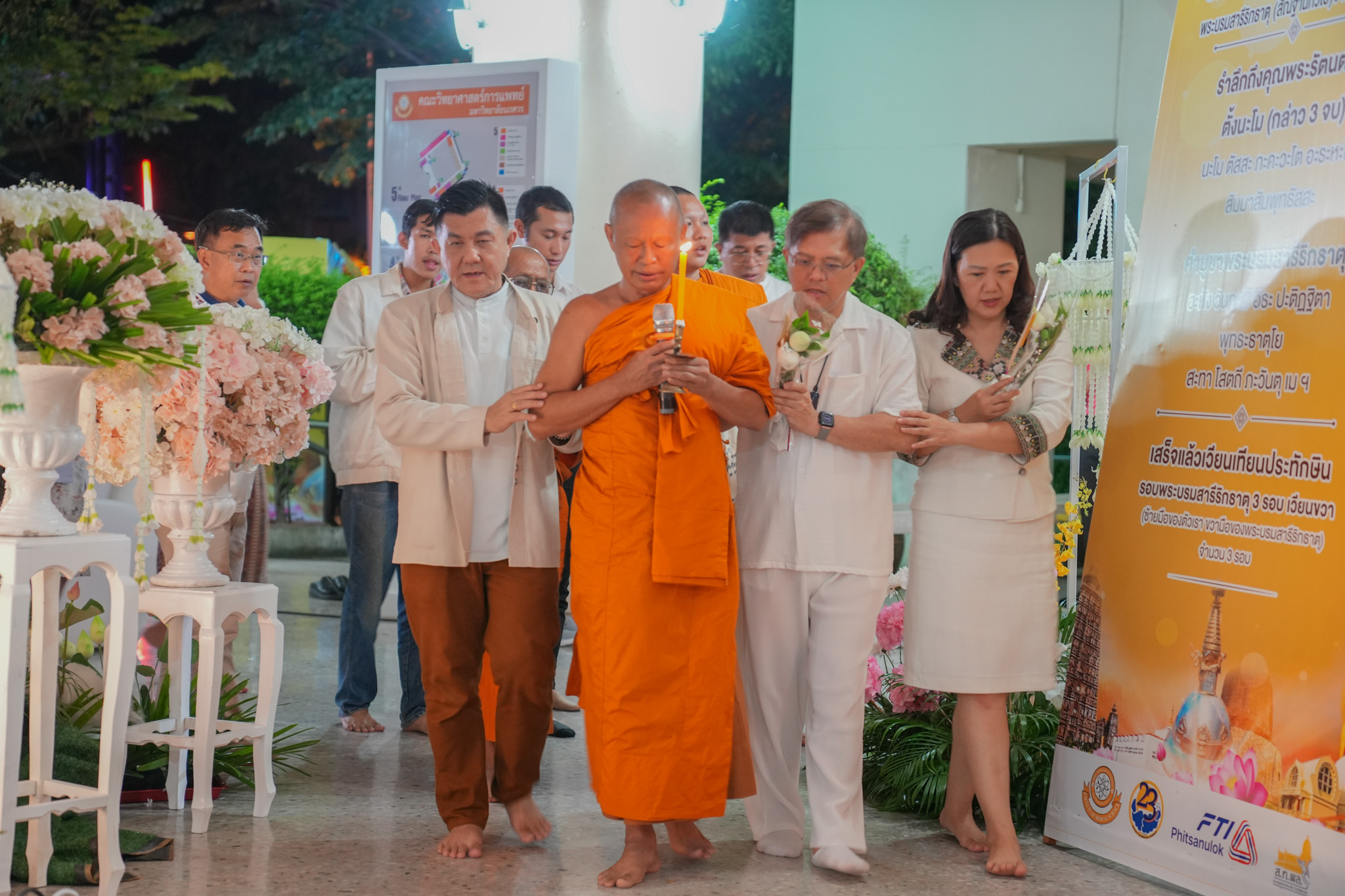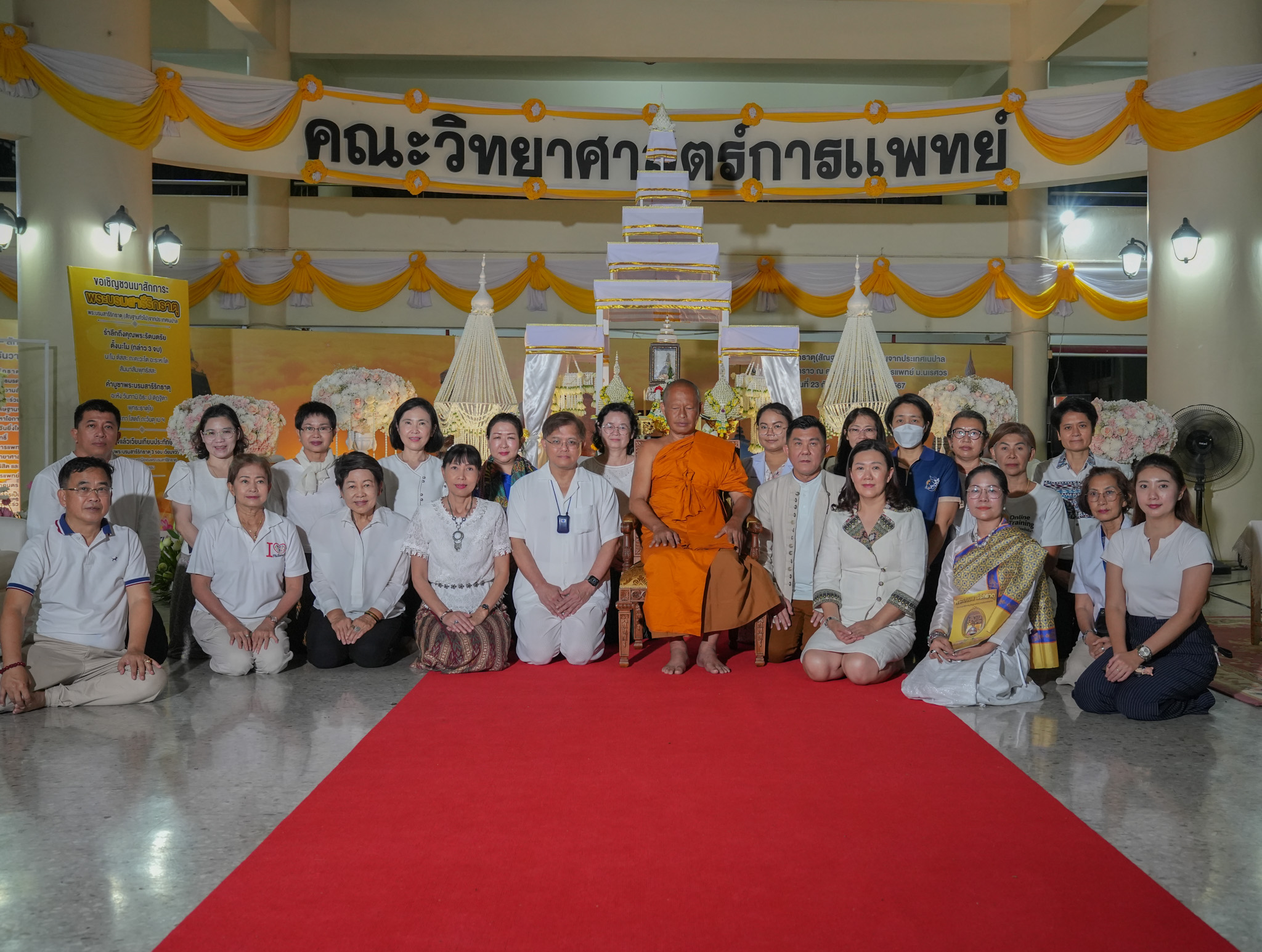 เมื่อวันที่ 24 กันยายน 2567 คณะผู้จัดงานฯ ได้จัดให้มีพิธีสวดมนต์ทำวัตรเย็น และร่วมเดินเวียนเทียนประทักษิณ 3 รอบ เพื่อบูชาพระบรมสารีริกธาตุ (สัญฐานทั่วไป) จากประเทศเนปาล แดนประสูติสมเด็จพระสัมมาสัมพุทธเจ้า ซึ่งได้รับเกียรติจาก พระครูวินัยธร อรรณพ จารุธรรมโม (อาจารย์ยักษ์) วัดสวนบริสุทธาราม อ.พรหมพิราม เป็นประธานฝ่ายสงฆ์ โดยมี คณะผู้บริหาร บุคลากร คณะบริหารธุรกิจ เศรษฐศาสตร์และการสื่อสาร มหาวิทยาลัยนเรศวร เป็นประธานฝ่ายฆราวาส พร้อมด้วย บุคลากร นิสิต และพุทธศาสนิกชนร่วมพิธีดังกล่าว ณ โถงแก้ว คณะวิทยาศาสตร์การแพทย์ มหาวิทยาลัยนเรศวร