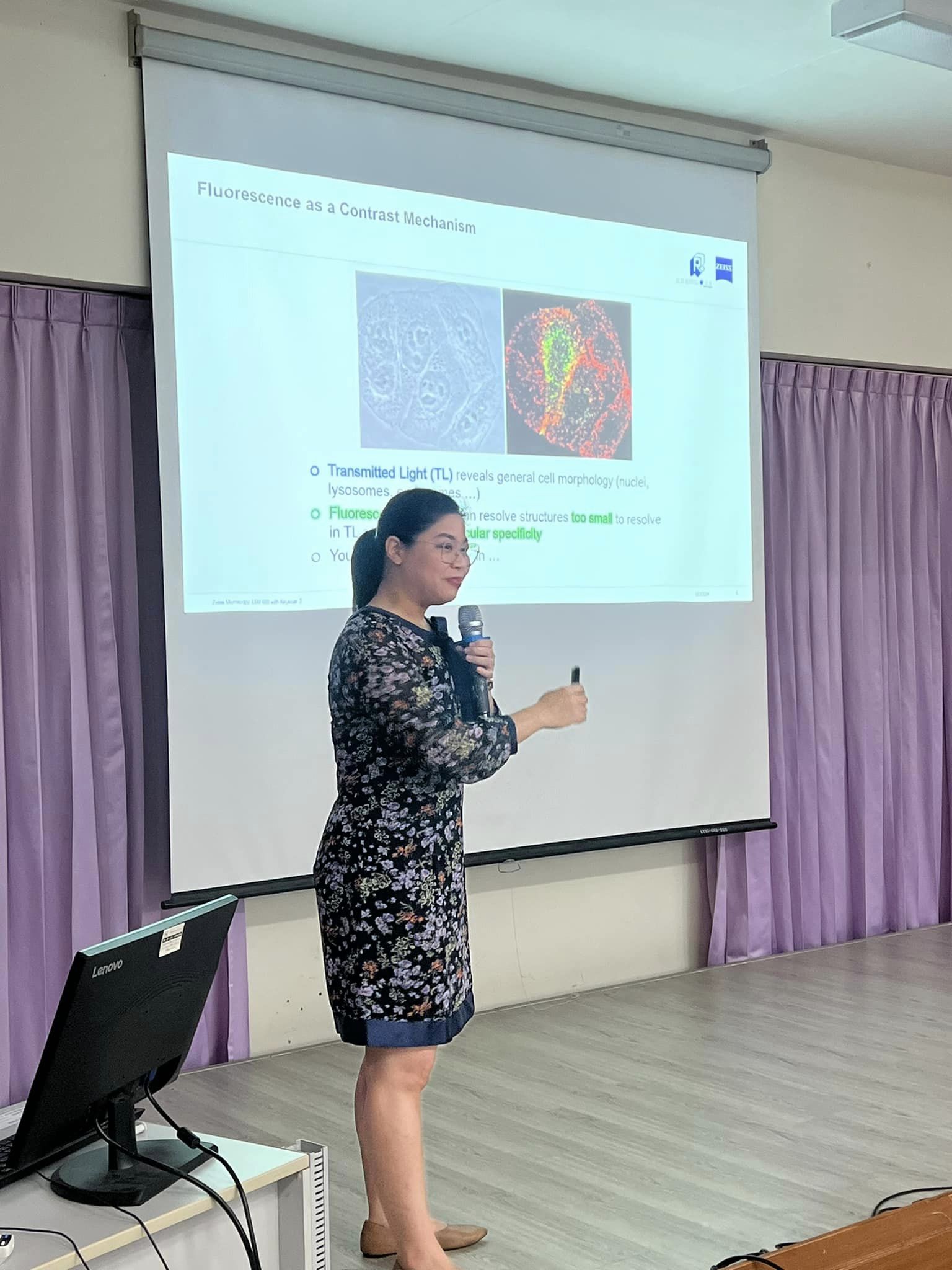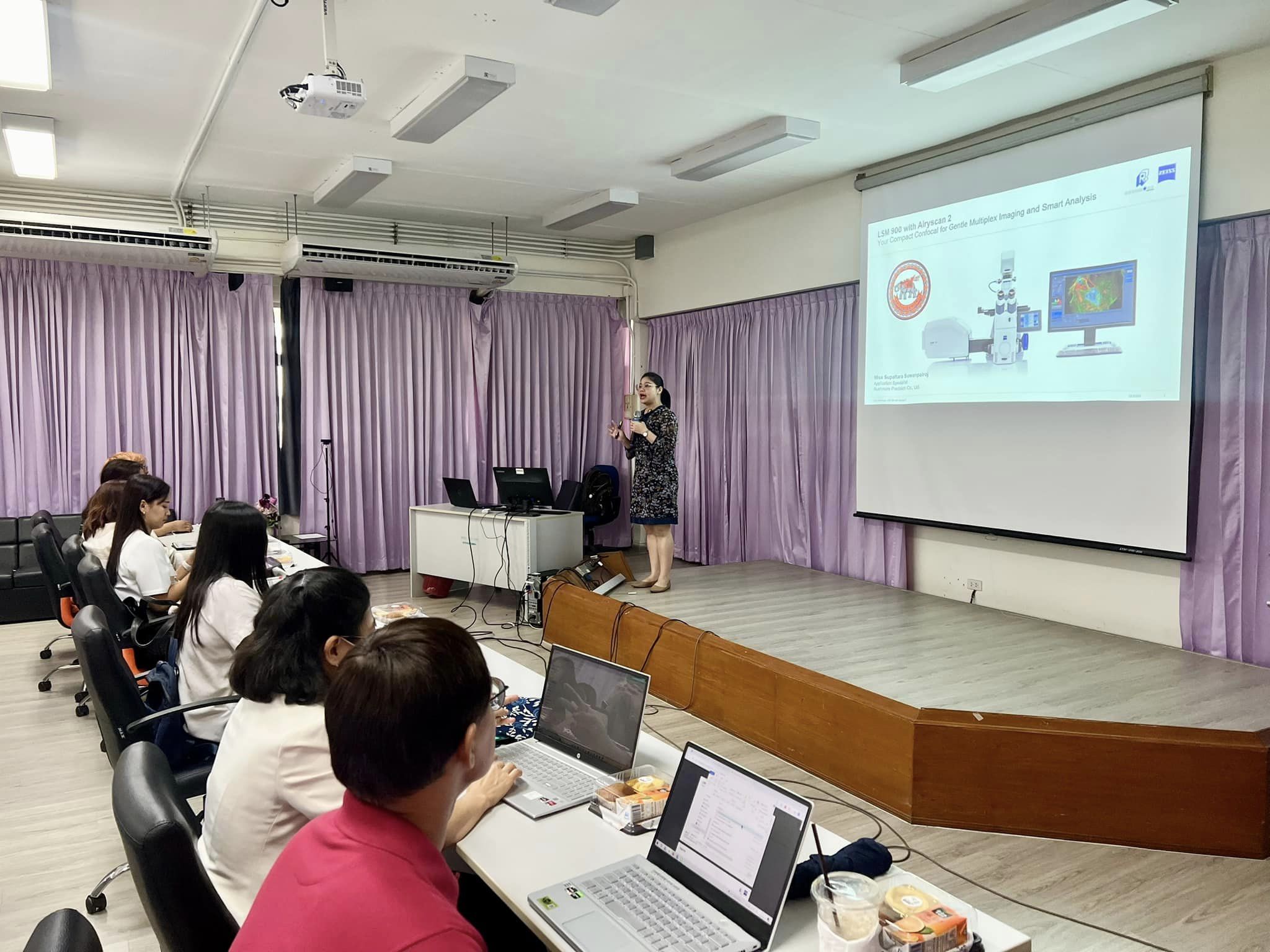 วันพฤหัสบดีที่ 3 ตุลาคม 2567 สถานบริการวิชาการด้านวิทยาศาสตร์การแพทย์ ดำเนินการจัดโครงการอบรมเชิงปฏิบัติการด้านเครื่องมือวิทยาศาสตร์ การบรรยายความรู้ หัวข้อเรื่อง “การใช้งานกล้องจุลทรรศน์คอนโฟคอลชนิดแสงส่องกราดด้วยเลเซอร์ (Confocal Microscope) รุ่น Zeiss LSM 900 with Airyscan 2″