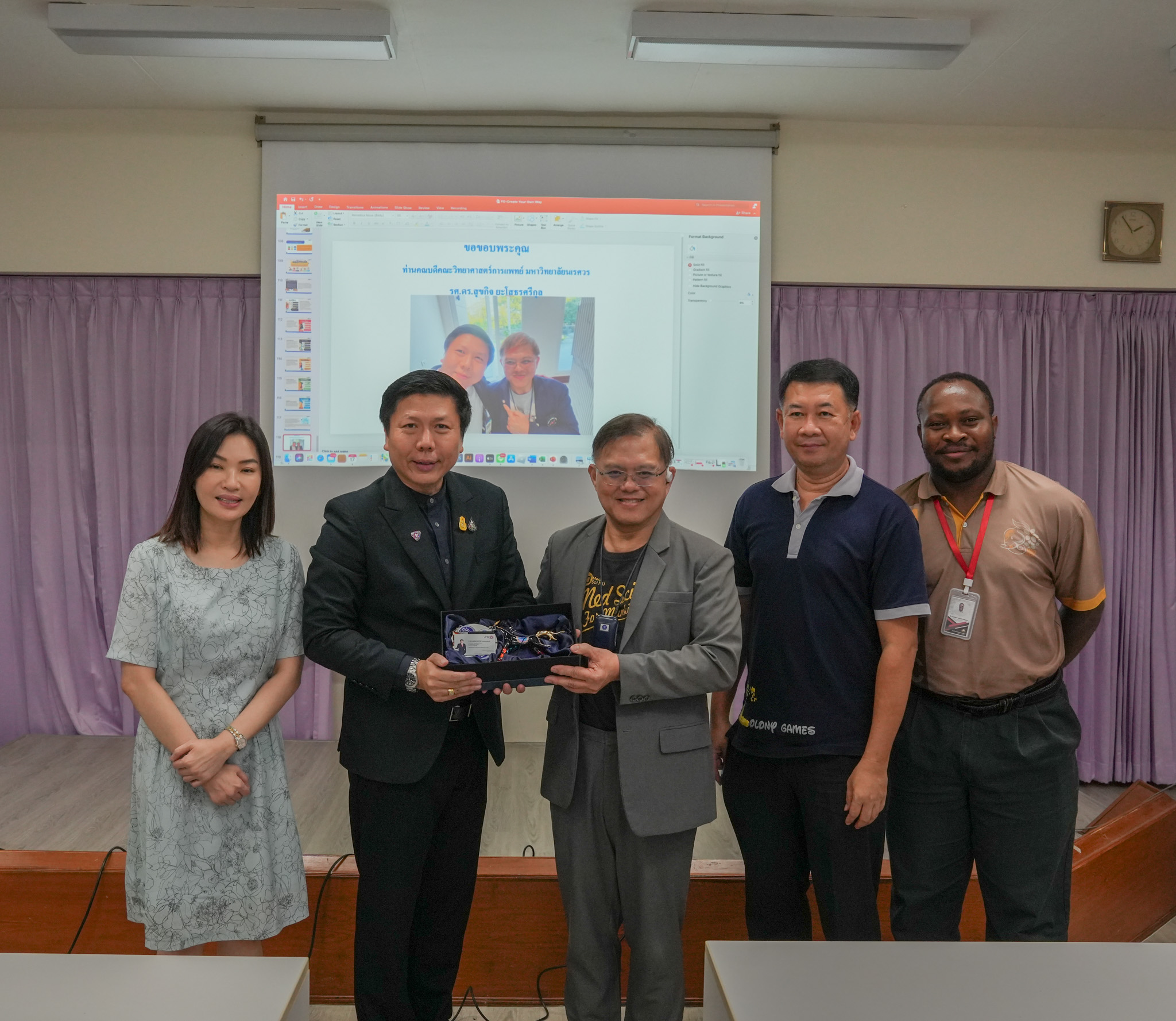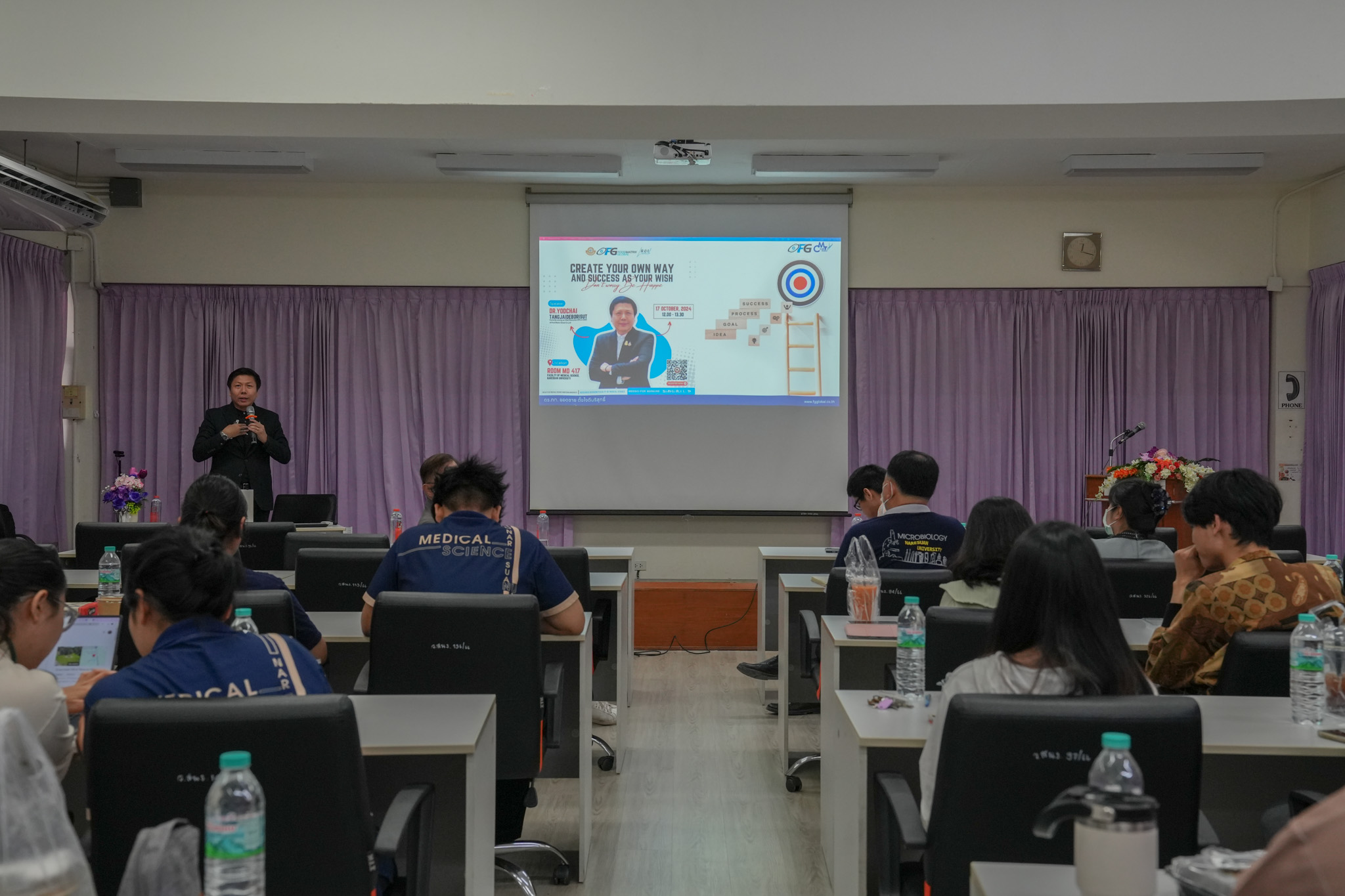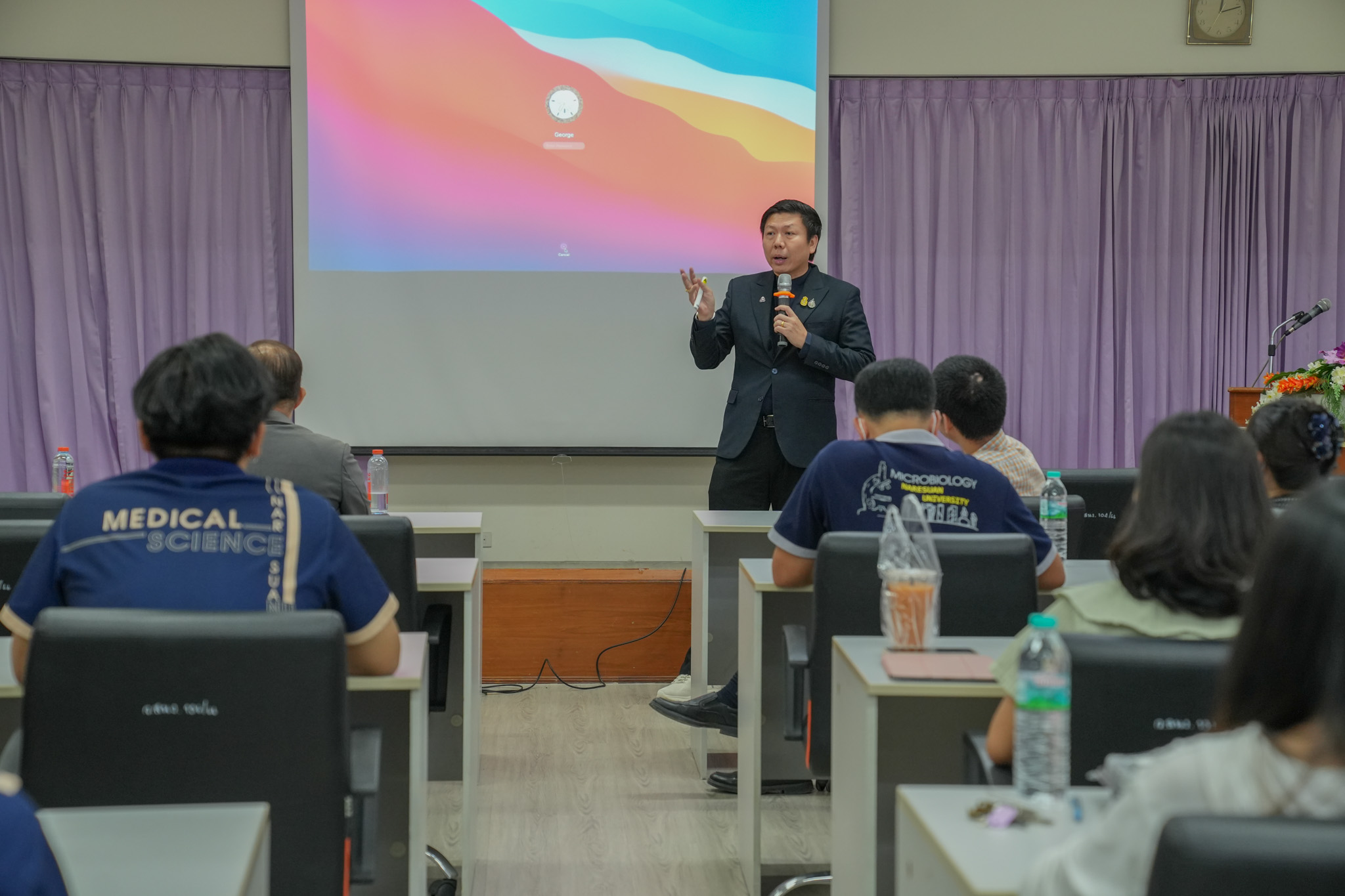 วันพฤหัสบดีที่ 17 ตุลาคม 2567 ณ ห้อง MD 417 หน่วยวิจัย คณะวิทยาศาสตร์การแพทย์ ได้ดำเนินการจัดบรรยายพิเศษ ในหัวข้อ “Create your own way and success as your wish Don’t worry Be Happe” ซึ่งได้รับเกียรติจาก Dr. Yodchai Tangjaideborisut (Currently serving as Chief Executive Office (CEO) at Food Matrix Global Co.,Ltd.) มาเป็นวิทยากรในครั้งนี้ โดยมี รศ.ดร.สุขกิจ ยะโสธรศรีกุล คณบดีคณะวิทยาศาสตร์การแพทย์, ผศ.พญ.พิริยา นฤขัตรพิชัย คณบดีคณะแพทยศาสตร์ คณาจารย์ บุคลากร และนิสิต ให้ความสนใจและร่วมแลกเปลี่ยนความคิดเห็น