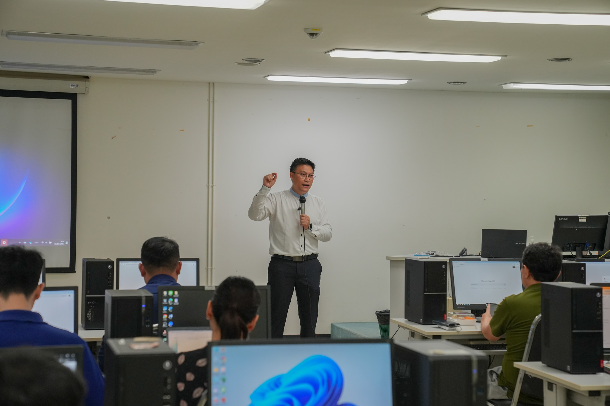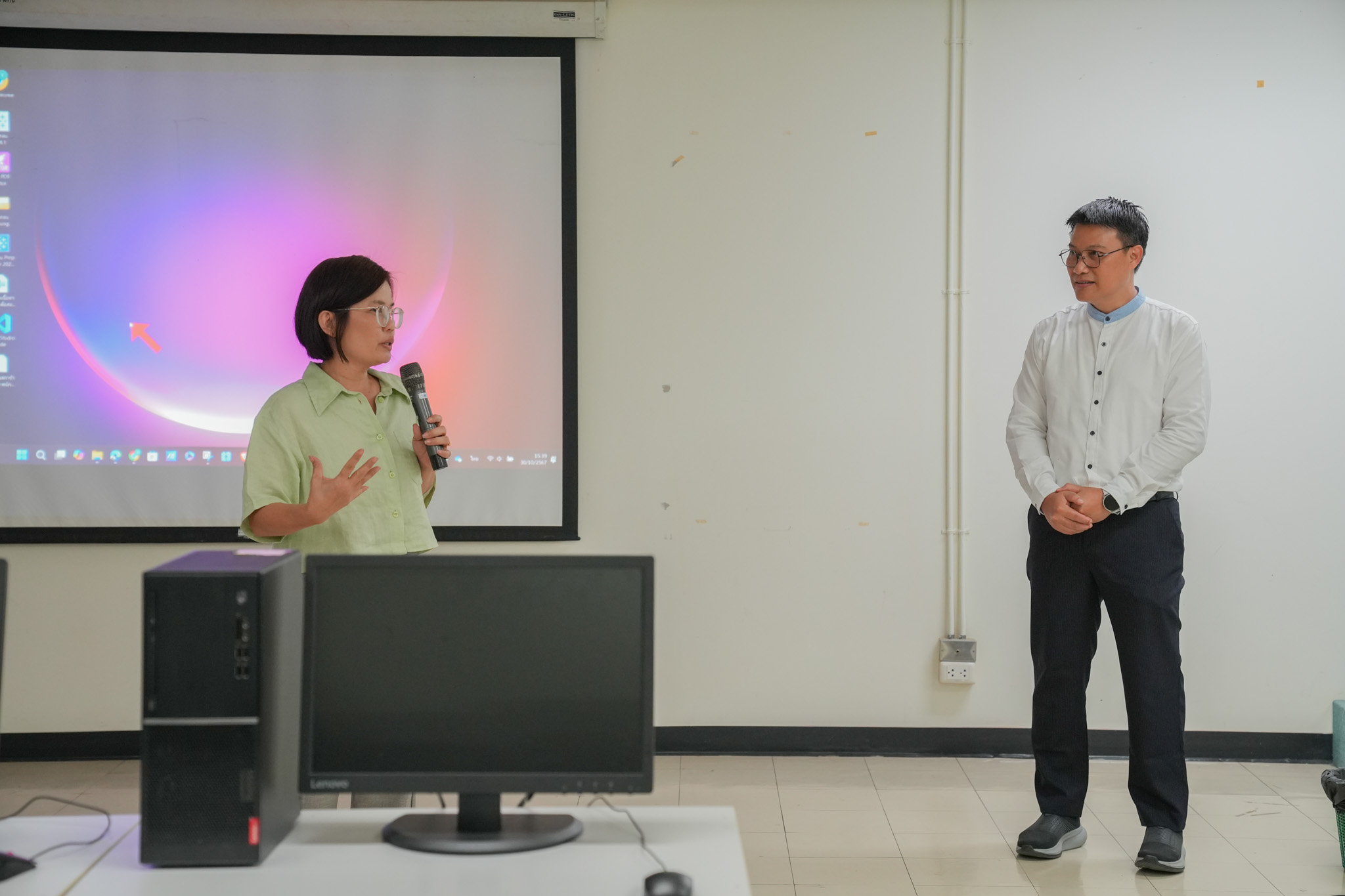 ภายในกิจกรรม ได้รับเกียรติจาก คุณกำพล กิ้กสันเทีย คณะสังคมศาสตร์ มหาวิทยาลัยนเรศวร ซึ่งเป็นวิทยากรผู้เชี่ยวชาญในด้านการใช้เทคโนโลยีปัญญาประดิษฐ์ในการทำงานสมัยใหม่ โดยวิทยากรได้บรรยายเกี่ยวกับการนำ AI มาใช้ในกระบวนการจัดการข้อมูล วิเคราะห์เชิงลึก และการสร้างระบบอัตโนมัติสำหรับงานประจำวัน งานวิจัย และงานสร้างสรรค์ต่างๆ พร้อมทั้งได้ฝึกฝนการใช้ AI ผ่านโปรแกรมที่ทันสมัย และสามารถนำทักษะไปใช้ในการทำงาน เพิ่มโอกาสในการพัฒนาศักยภาพในยุคดิจิทัล