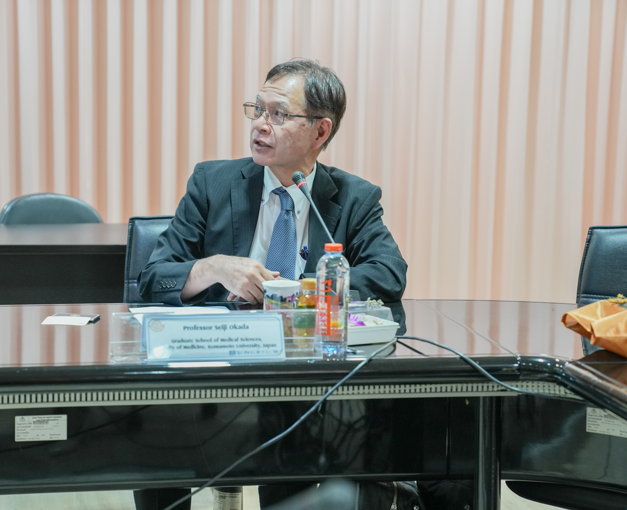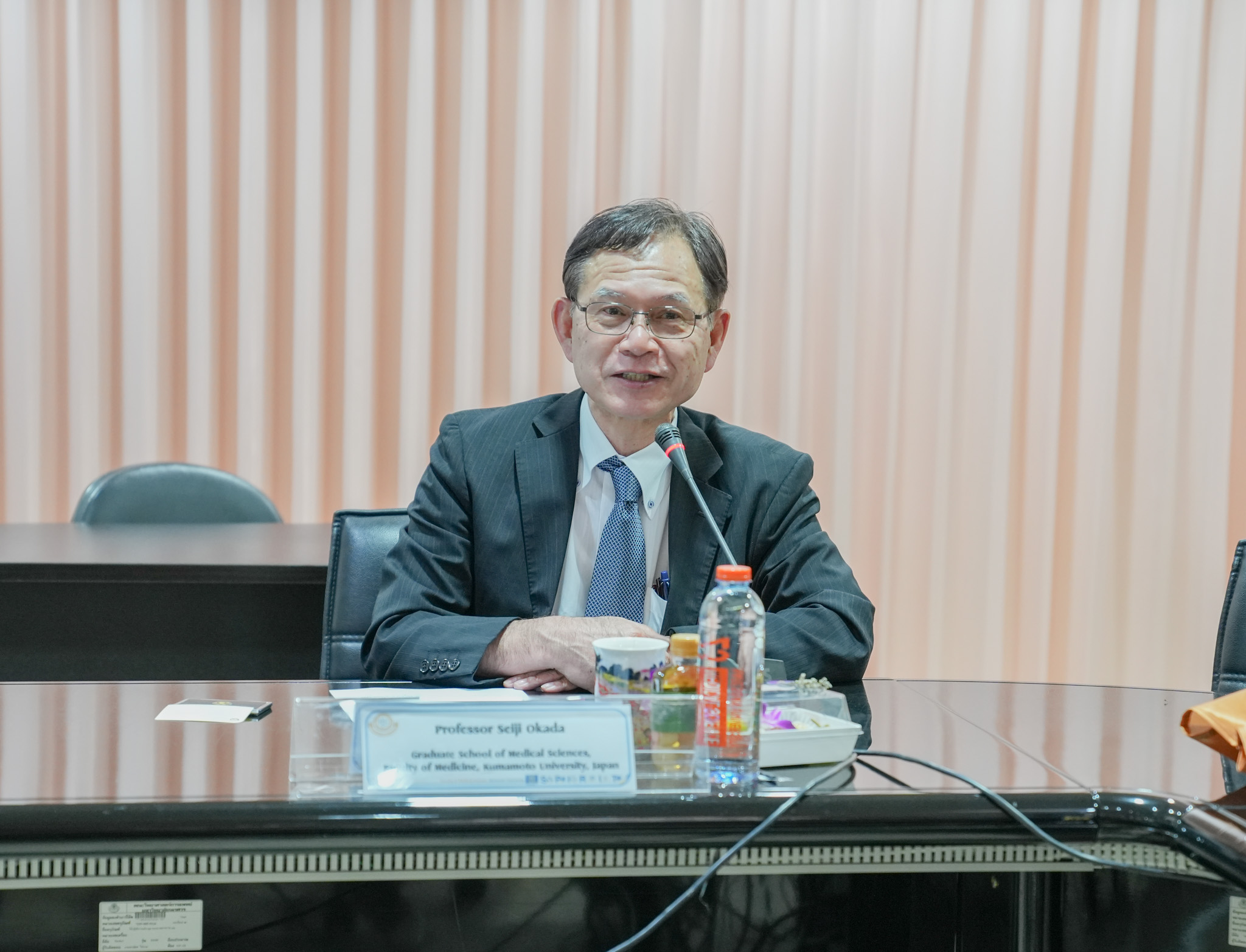 วันที่ 27 พฤศจิกายน 2567 รองศาสตราจารย์ ดร.สุขกิจ ยะโสธรศรีกุล คณบดีคณะวิทยาศาสตร์การแพทย์ พร้อมด้วยผู้บริหารของคณะ และ รองศาสตราจารย์ ดร.กรองกาญจน์ ชูทิพย์ คณบดีบัณฑิตวิทยาลัย พร้อมผู้บริหารของบัณฑิตวิทยาลัย ร่วมประชุมและหารือความร่วมมือทางวิชาการ กับ Prof. Seiji Okada, Graduate School of Medical Science, Faculty of Medicine, Kumamoto University, Japan พร้อมด้วย รศ.ดร.ศิวนนท์ จิรวัฒโนทัย และ ดร.กัญญา สิทธิธรรมชารี คณะแพทยศาสตร์ศิริราชพยาบาล มหาวิทยาลัยมหิดล ในการพัฒนาหลักสูตรปริญญาเอกแบบ Double Degree Program หลักสูตร Ph.D. in Medical Sciences, Graduate School of Medical Sciences, Faculty of Medicine, Kumamoto University, Japan กับ หลักสูตรปรัชญาดุษฎีบัณฑิต สาขาวิชาวิทยาศาสตร์การแพทย์ คณะวิทยาศาสตร์การแพทย์ และ บัณฑิตวิทยาลัย มหาวิทยาลัยนเรศวร