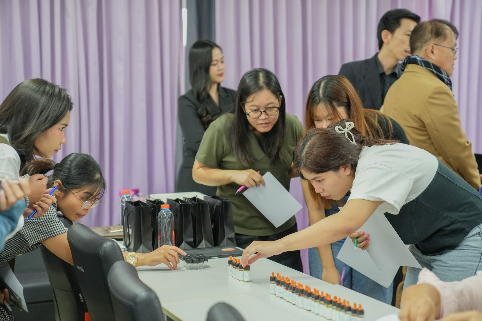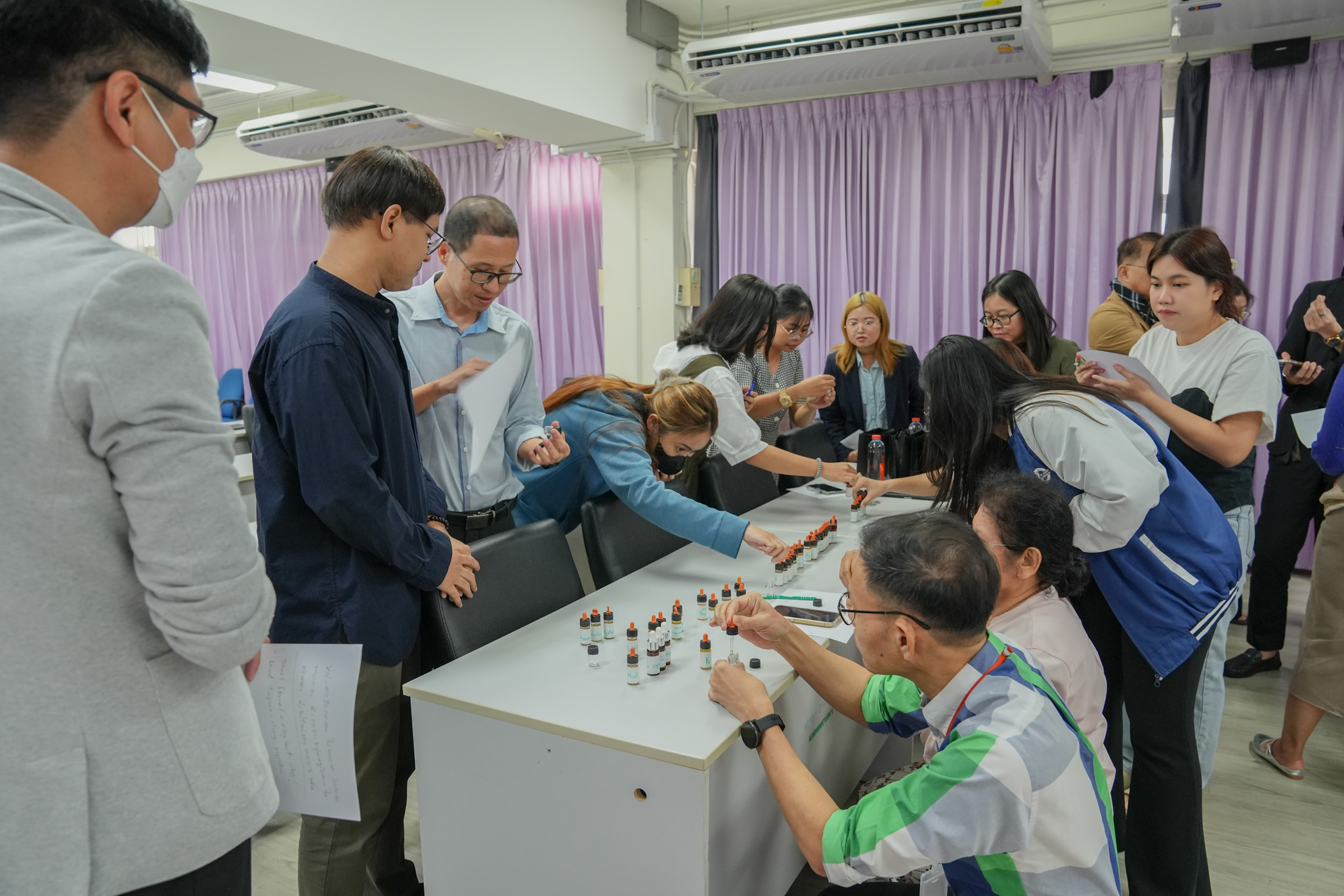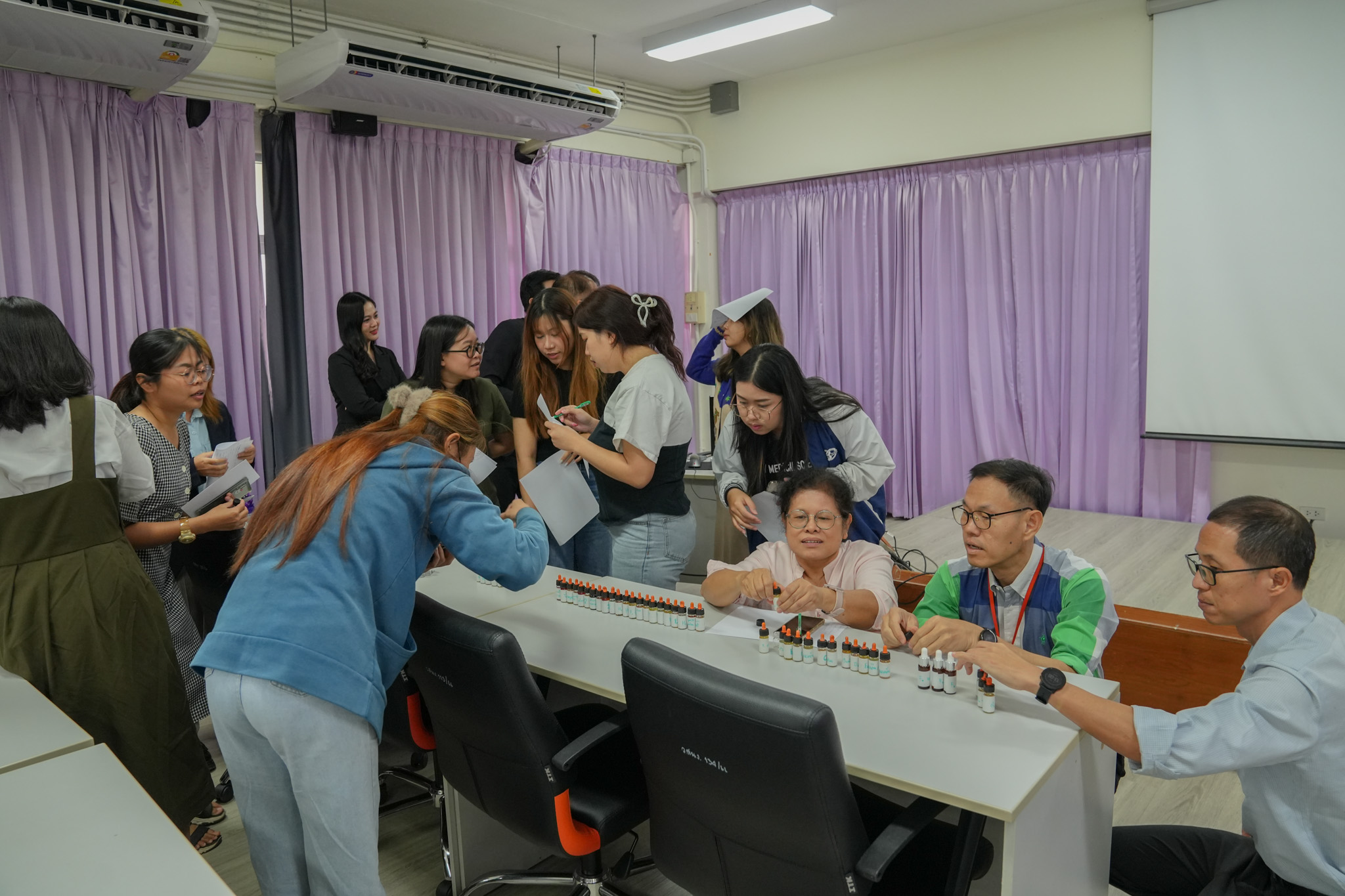 วันพฤหัสบดีที่ 28 พฤศจิกายน 2567 ณ ห้อง MD 417 หน่วยวิจัย คณะวิทยาศาสตร์การแพทย์ ได้ดำเนินการจัดการเสวนางานวิจัย หัวข้อ “Fragrance Science to Business” วิทยากรโดย คุณอภิวิชญ์ ศาสนพิทักษ์กุล Brand Identity Designer & Scent Designer และยังได้มีการจัด Workshop ให้ผู้เข้าร่วมได้ทดลองสร้างน้ำหอมในแบบฉบับของตัวเอง ทั้งนี้ มี รศ.ดร.ศักดิ์ชัย วิทยาอารีย์กุล จากคณะเภสัชศาสตร์ และ ดร.นิทรา เนื่องจำนงค์ จากคณะวิทยาศาสตร์ ให้ความสนใจและร่วมแลกเปลี่ยนความคิดเห็นด้วย