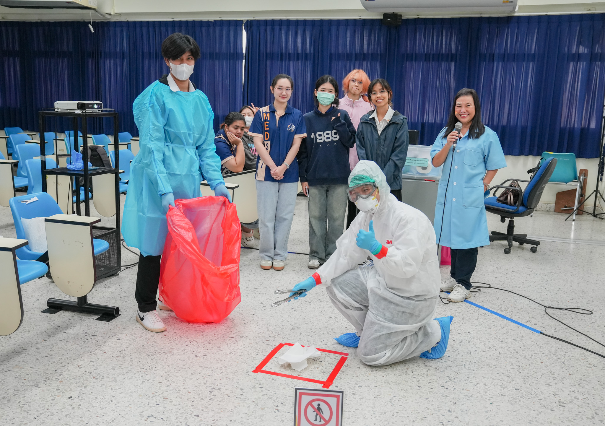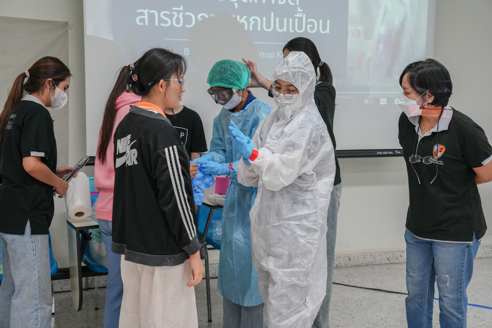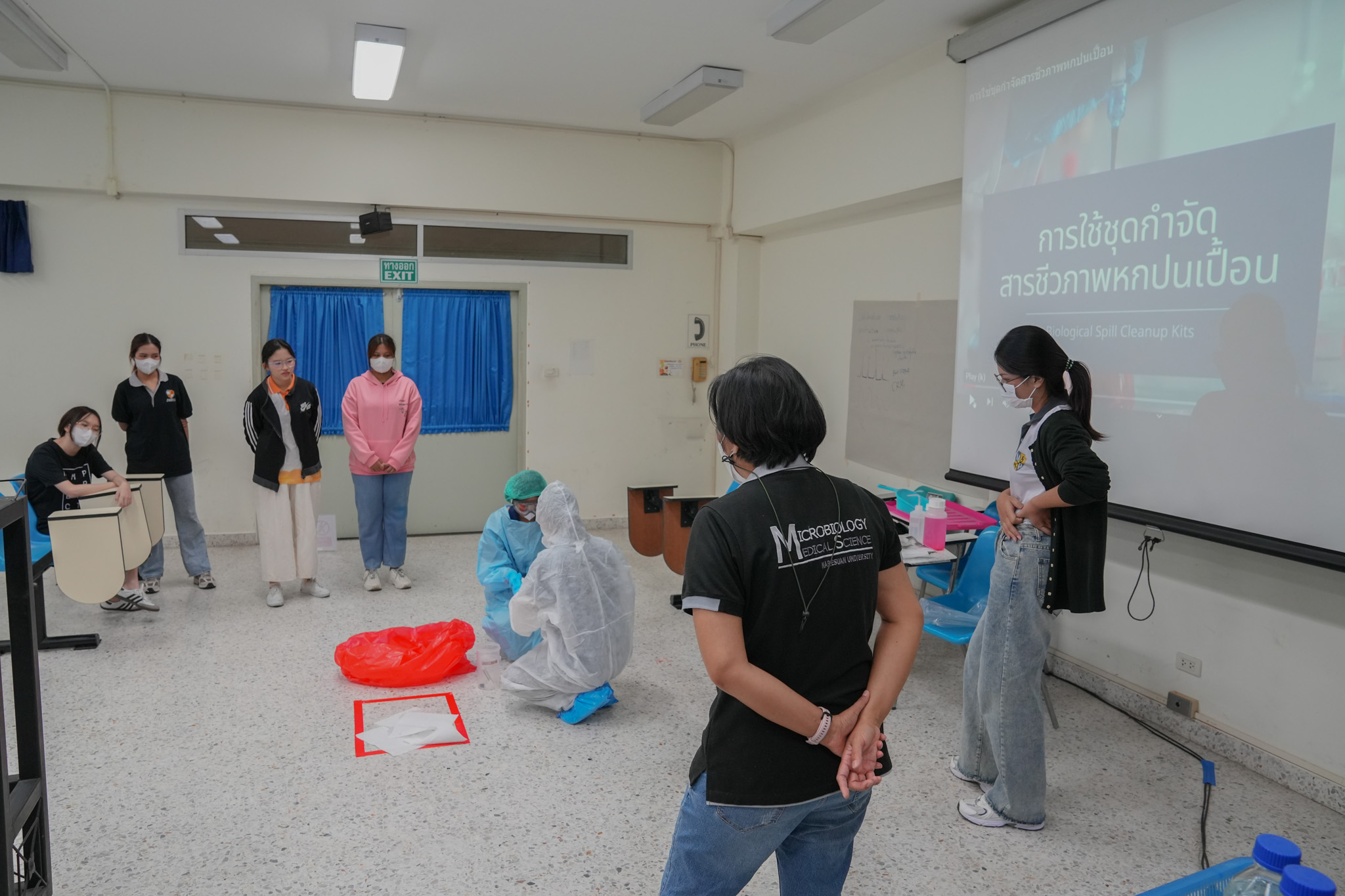 วันที่ 30 พฤศจิกายน 2567 ฝ่ายบริหาร ร่วมกับ คณะกรรมการดำเนินงานด้านความปลอดภัยคณะวิทยาศาสตร์การแพทย์ ดำเนินการจัดโครงการบริหารจัดการความปลอดภัยของคณะวิทยาศาสตร์การแพทย์ กิจกรรมการอบรมเชิงปฏิบัติการเกี่ยวกับมาตรฐานด้านความปลอดภัยทางชีวภาพและการรักษาความปลอดภัยทางชีวภาพ (Biosafety and Biosecurity) ภาคปฏิบัติการ โดยจัดกิจกรรมการฝึกอบรมเชิงปฏิบัติการให้แก่ บุคลากร และนิสิตคณะวิทยาศาสตร์การแพทย์ โครงการอบรมในครั้งนี้ มีวัตถุประสงค์ เพื่อให้ผู้เข้ารับการอบรมได้รู้ถึงหลักการ กฎระเบียบที่เกี่ยวข้อง แนวปฏิบัติเกี่ยวกับความปลอดภัยทางชีวภาพ การรักษาความปลอดภัยทางชีวภาพ และมีความตระหนักในการปฏิบัติงานที่เกี่ยวข้องกับเชื้อจุลินทรีย์ก่อโรค พิษจากสัตว์ หรือสิ่งมีชีวิตดัดแปลงพันธุกรรมอย่างถูกต้องและปลอดภัยสำหรับผู้ที่ดำเนินงานเกี่ยวกับเทคโนโลยีชีวภาพสมัยใหม่หรือพันธุวิศวกรรม หรือมีการดำเนินงานตามพระราชบัญญัติเชื้อโรคและพิษจากสัตว์ พ.ศ. 2558 รวมทั้งดำเนินงานวิจัยเกี่ยวกับเชื้อโรค หรือตัวอย่างชีวภาพ (จุลินทรีย์ พริออน พืช เซลล์ cell line พิษจากสัตว์) ณ ห้อง MD 234 อาคารเรียนคณะวิทยาศาสตร์การแพทย์ มหาวิทยาลัยนเรศวร