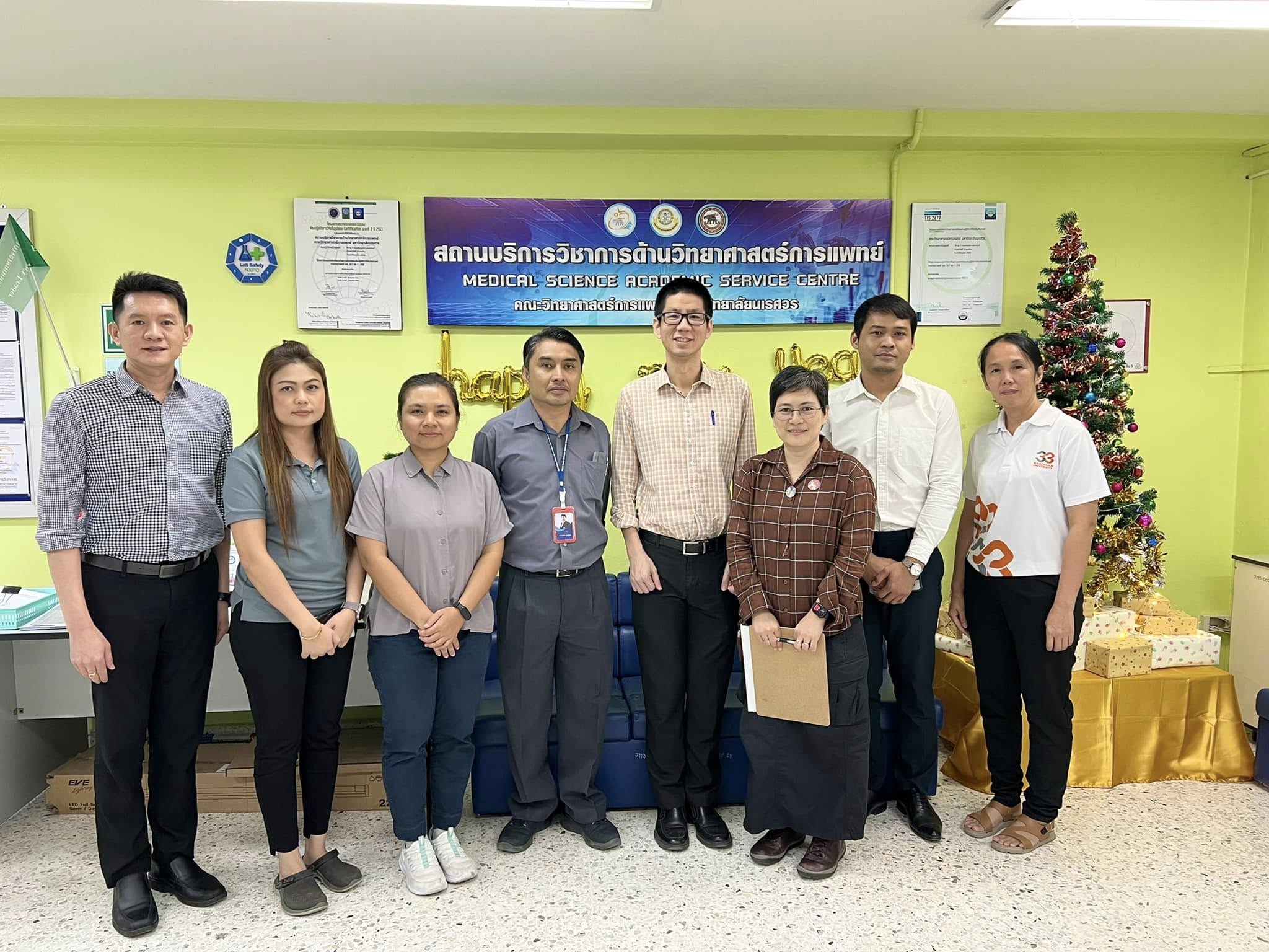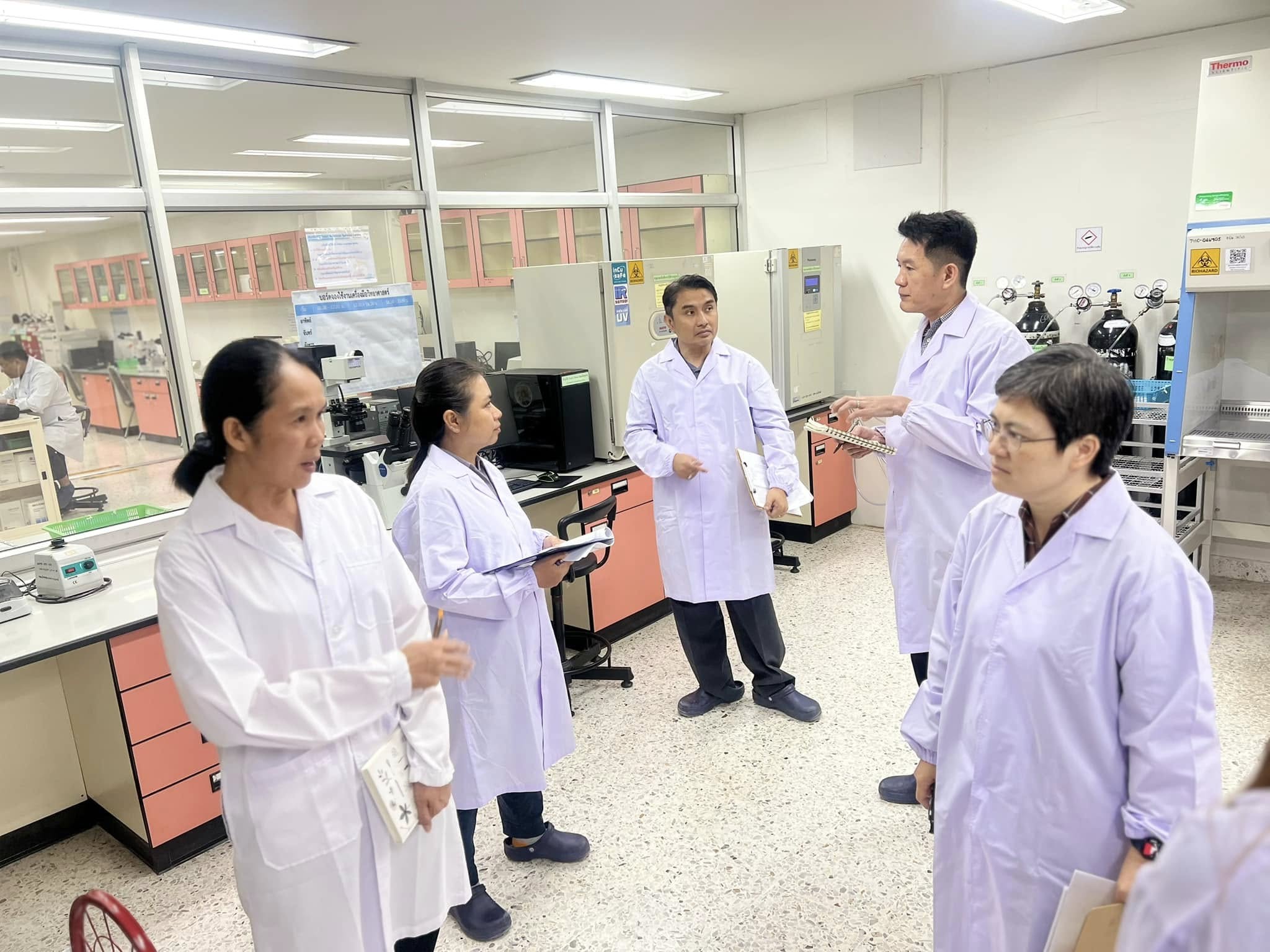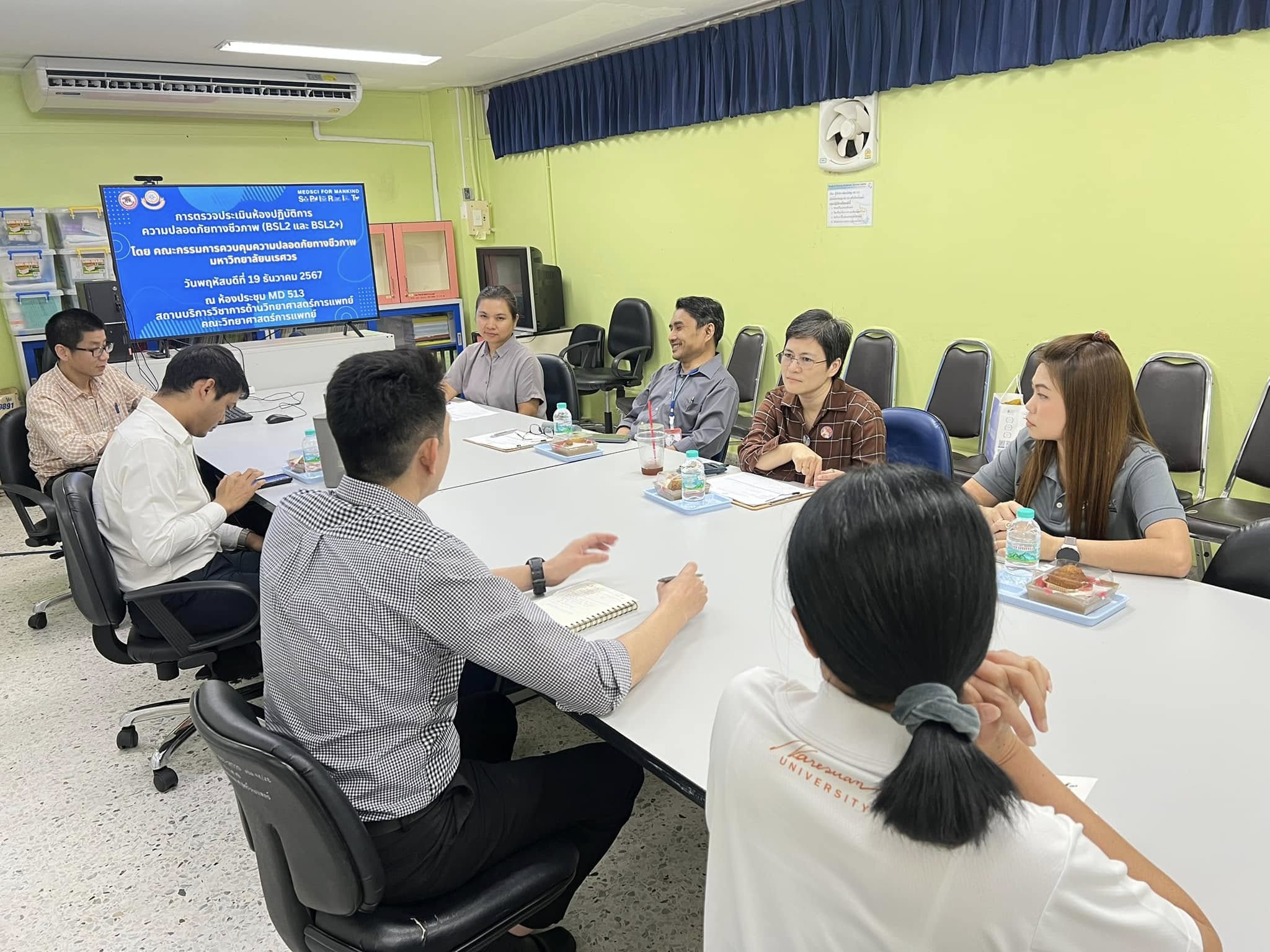 วันพฤหัสบดีที่ 19 ธันวาคม พ.ศ. 2567 ผู้ช่วยศาสตราจารย์ ดร.ภาคภูมิ ทรัพย์สุนทร รองคณบดีฝ่ายวิจัยและนวัตกรรม ดร.ระพี ธรรมมีภักดิ์ ผู้ช่วยคณบดีคณะวิทยาศาสตร์การแพทย์ พร้อมด้วยบุคลากรสถานบริการวิชาการด้านวิทยาศาสตร์การแพทย์ ร่วมรับฟังการตรวจประเมินคุณภาพห้องปฏิบัติการสถานบริการวิชาการด้านวิทยาศาสตร์การแพทย์ เพื่อตรวจติดตามการพัฒนาคุณภาพห้องปฏิบัติการความปลอดภัยทางชีวภาพ ระดับที่ 2 และระดับที่ 2 เสริมสมรรถนะ ได้แก่ ห้องปฏิบัติการตรวจวิเคราะห์จุลินทรีย์ (MD 502) และห้องปฏิบัติการเพาะเลี้ยงเซลล์ (MD 513-1) โดยคณะกรรมการควบคุมความปลอดภัยทางชีวภาพ มหาวิทยาลัยนเรศวร ณ สถานบริการวิชาการด้านวิทยาศาสตร์การแพทย์ อาคารเรียนคณะวิทยาศาสตร์การแพทย์