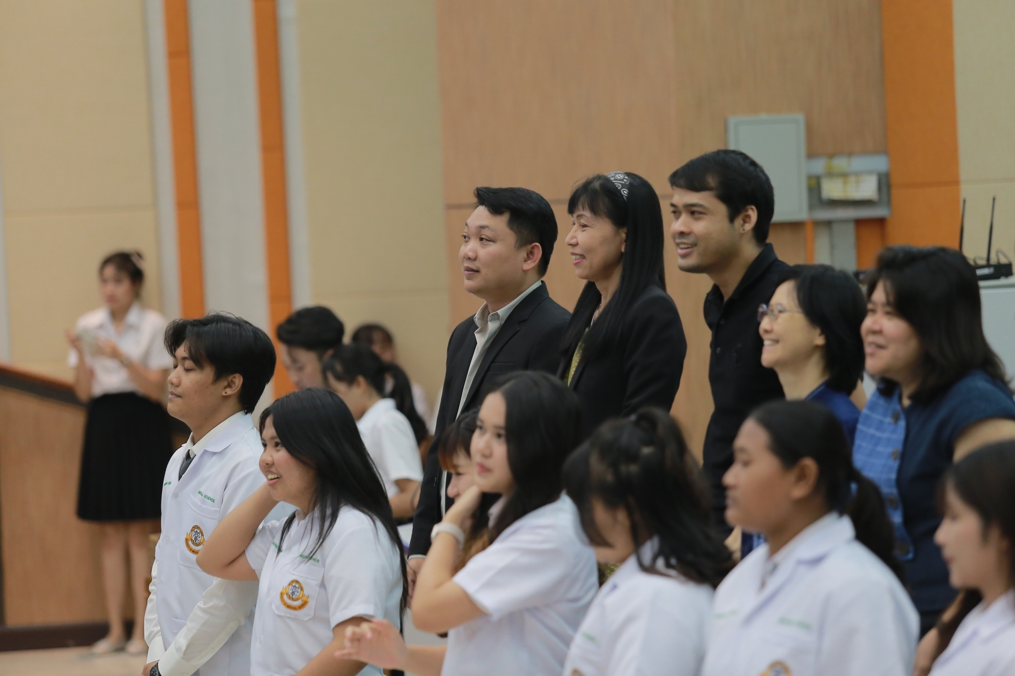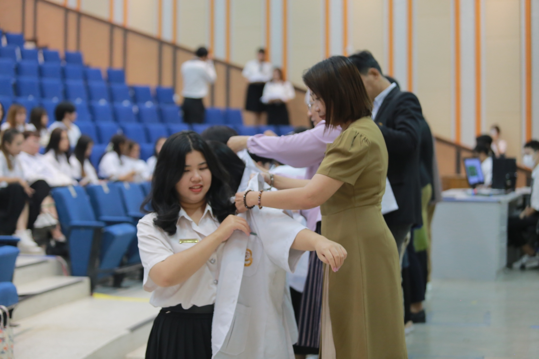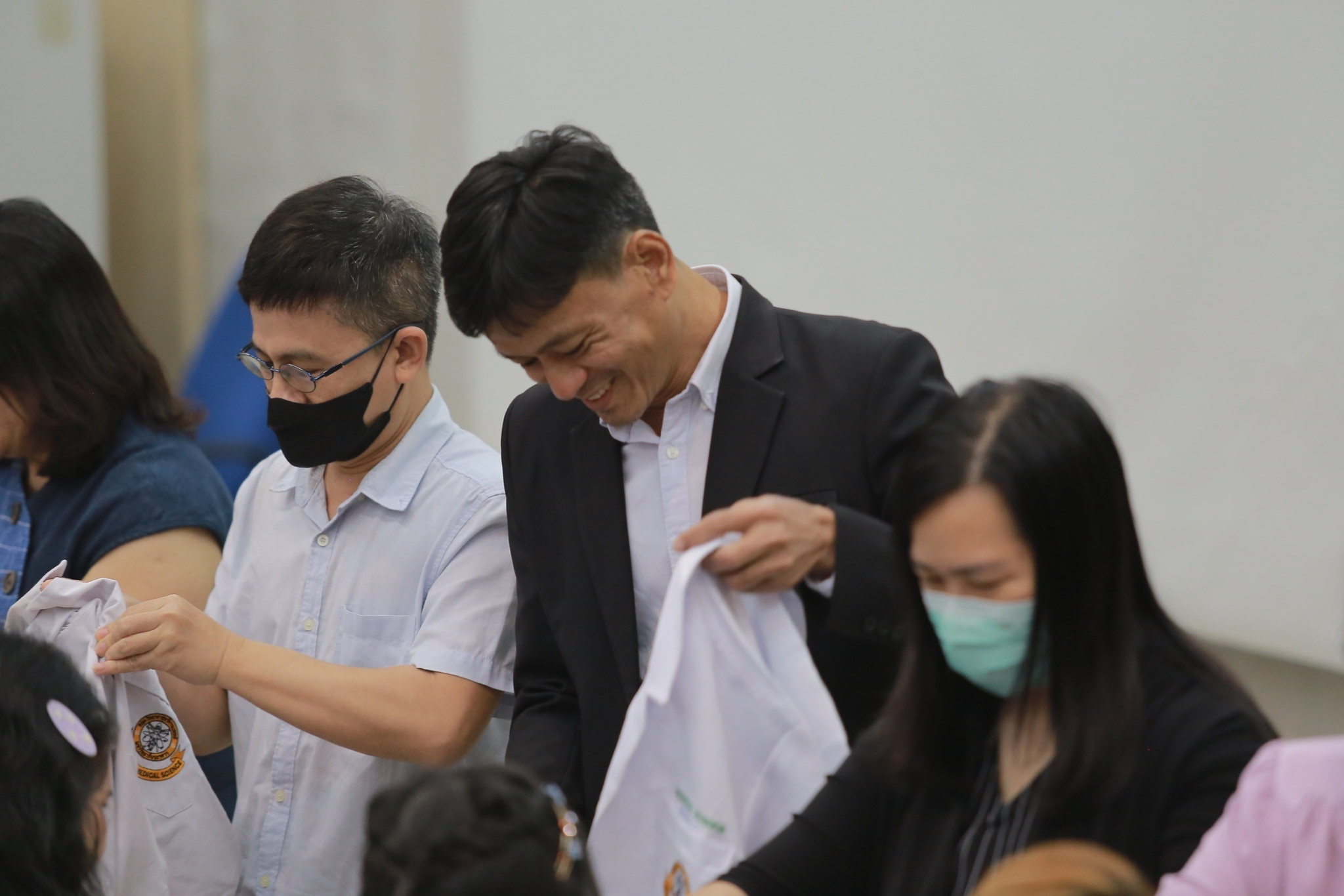 บรรยากาศภายในงานเป็นไปด้วยความอบอุ่นและเต็มไปด้วยความมุ่งมั่นของนิสิตที่ได้รับเสื้อกาวน์สั้น ซึ่งถือเป็นสัญลักษณ์สำคัญของการเดินทางในเส้นทางวิทยาศาสตร์การแพทย์ นิสิตทุกคนต่างแสดงความภาคภูมิใจและมีความมุ่งมั่นในการพัฒนาศักยภาพของตนเองเพื่อก้าวสู่การเป็นนักวิทยาศาสตร์การแพทย์ที่มีคุณภาพต่อไปในอนาคต