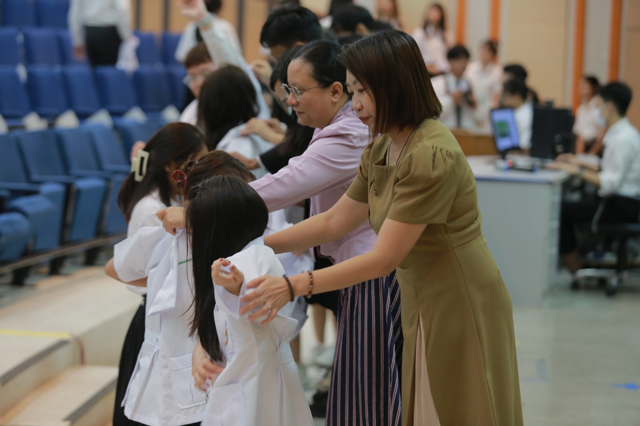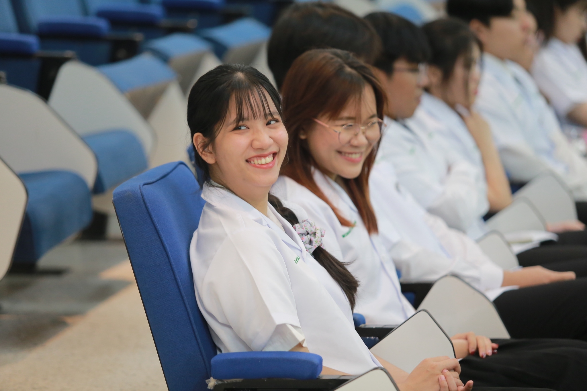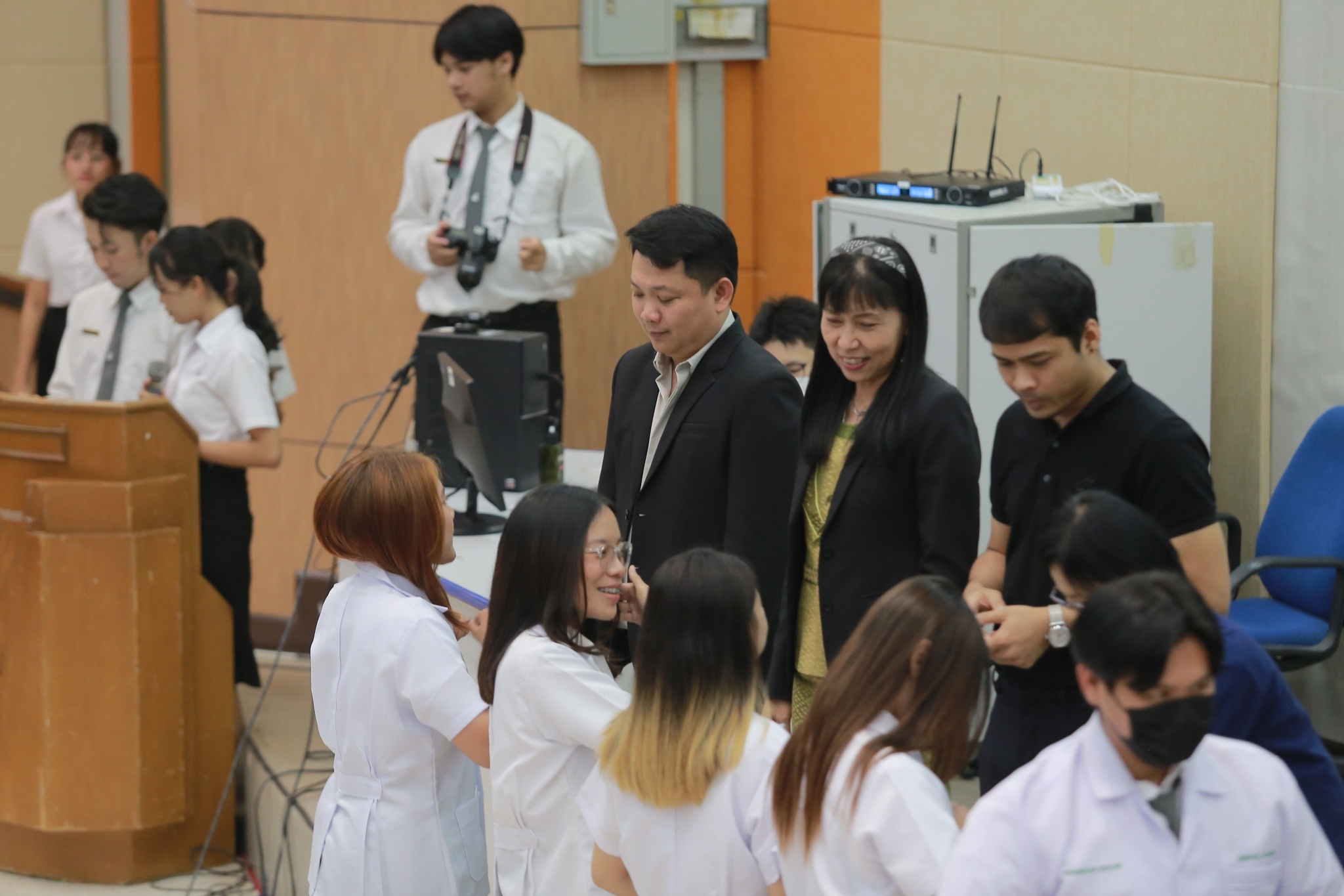 บรรยากาศภายในงานเป็นไปด้วยความอบอุ่นและเต็มไปด้วยความมุ่งมั่นของนิสิตที่ได้รับเสื้อกาวน์สั้น ซึ่งถือเป็นสัญลักษณ์สำคัญของการเดินทางในเส้นทางวิทยาศาสตร์การแพทย์ นิสิตทุกคนต่างแสดงความภาคภูมิใจและมีความมุ่งมั่นในการพัฒนาศักยภาพของตนเองเพื่อก้าวสู่การเป็นนักวิทยาศาสตร์การแพทย์ที่มีคุณภาพต่อไปในอนาคต