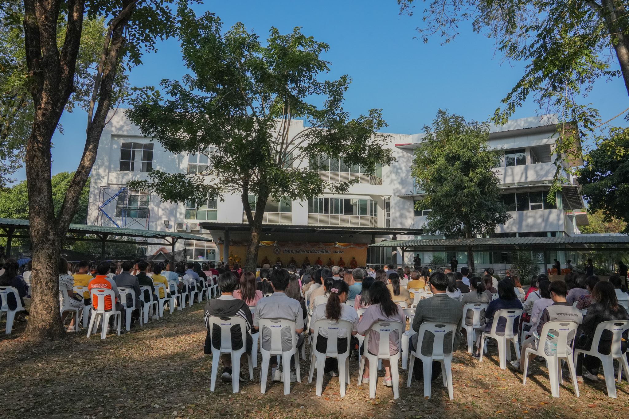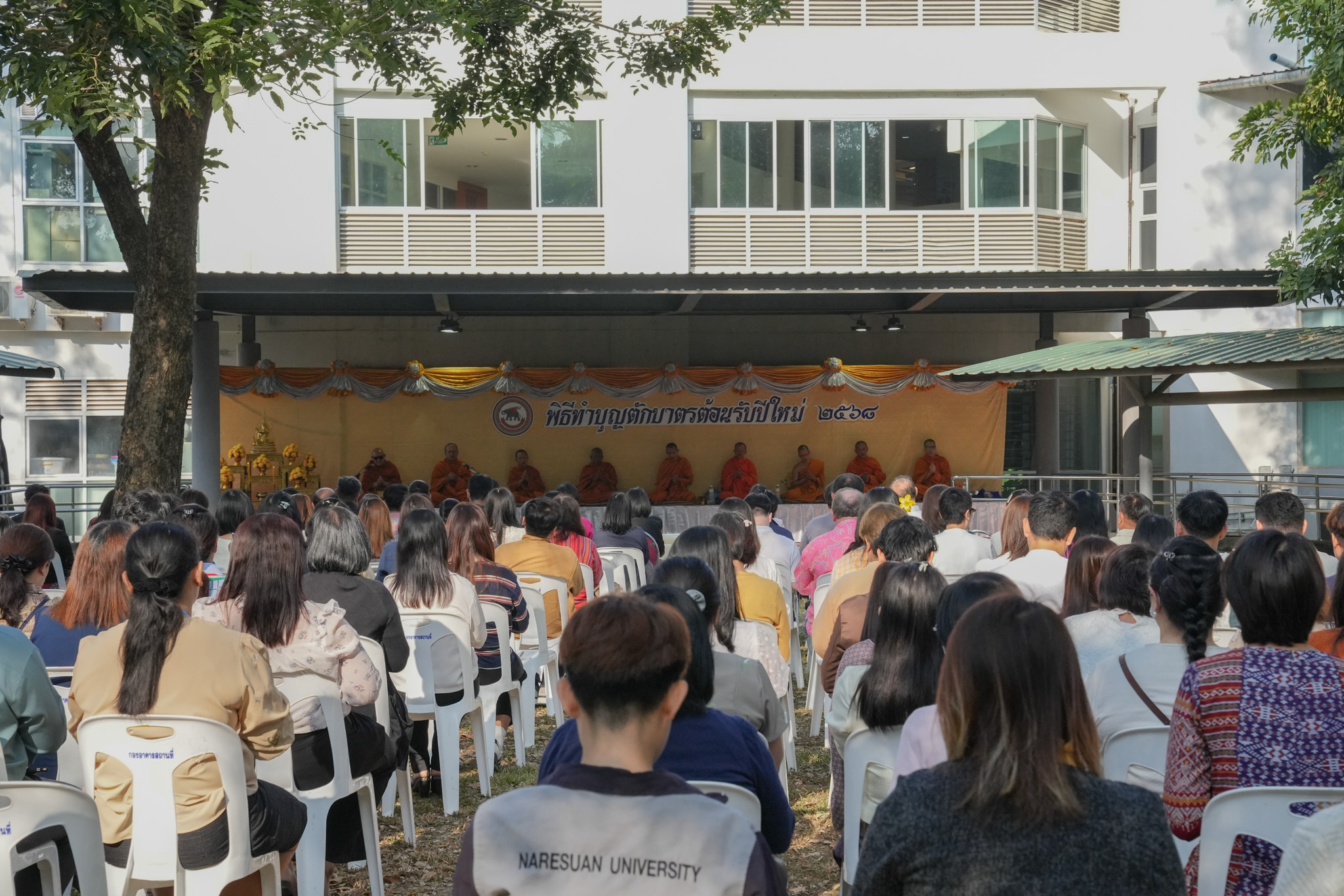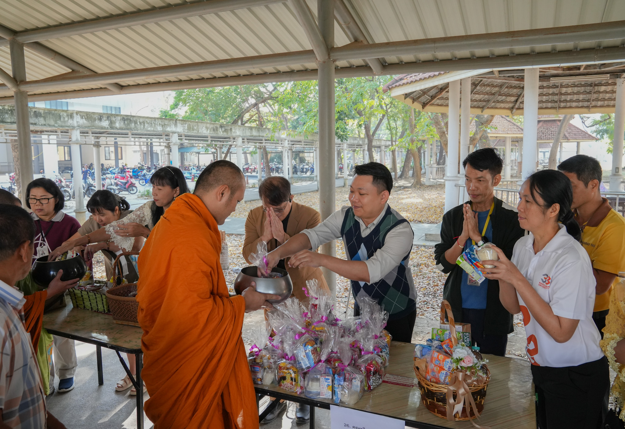 วันที่ 6 มกราคม 2568 รองศาสตราจารย์ ดร.สุขกิจ ยะโสธรศรีกุล คณบดีคณะวิทยาศาสตร์การแพทย์ พร้อมด้วย รองศาสตราจารย์ ดร.วรศักดิ์ แก้วก่อง รองคณบดีฝ่ายบริหารและส่งเสริมความยั่งยืน, รองศาสตราจารย์ ดร. รักษิณา พลสีลา รองคณบดีฝ่ายการจัดการหลักสูตร และบุคลากรคณะวิทยาศาสตร์การแพทย์ ร่วมทำบุญตักบาตร ข้าวสารอาหารแห้ง แด่พระภิกษุ สามเณร จำนวน 29 รูป เนื่องในโอกาสวันขึ้นปีใหม่ 2568 ณ บริเวณอาคารสำนักงานอธิการบดี มหาวิทยาลัยนเรศวร