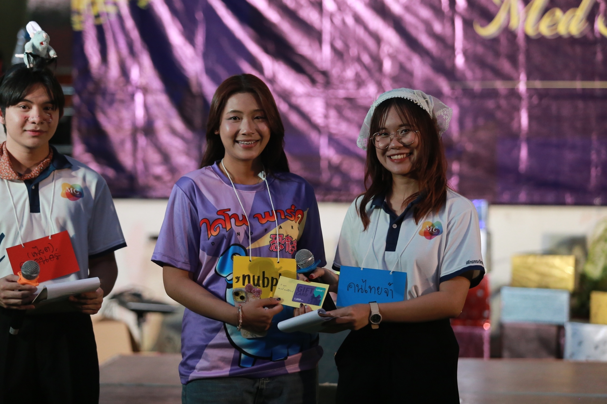 ภายในงานมีกิจกรรมที่สร้างความสนุกสนานและความประทับใจหลากหลายรูปแบบ เช่น การแข่งขันกีฬาสีฮาเฮที่สร้างเสียงหัวเราะและเสริมสร้างความสามัคคี เกมชิงรางวัลที่มีของรางวัลมากมาย การประกวด Med Sci Talent ที่นิสิตได้แสดงความสามารถพิเศษ และการประกวดการแต่งกายธีมการ์ตูนที่เต็มไปด้วยสีสันและความสร้างสรรค์ นอกจากนี้ยังมีการแสดงโชว์สุดพิเศษจากคณาจารย์ที่ทำให้บรรยากาศของงานเต็มไปด้วยความสนุกสนานและอบอุ่น พร้อมกับอีกหนึ่งไฮไลท์ของงานคือการแสดงดนตรีในสวนจากวงเฉพาะกิจ NU Band ที่เพิ่มความชิลและรื่นเริงให้กับงาน