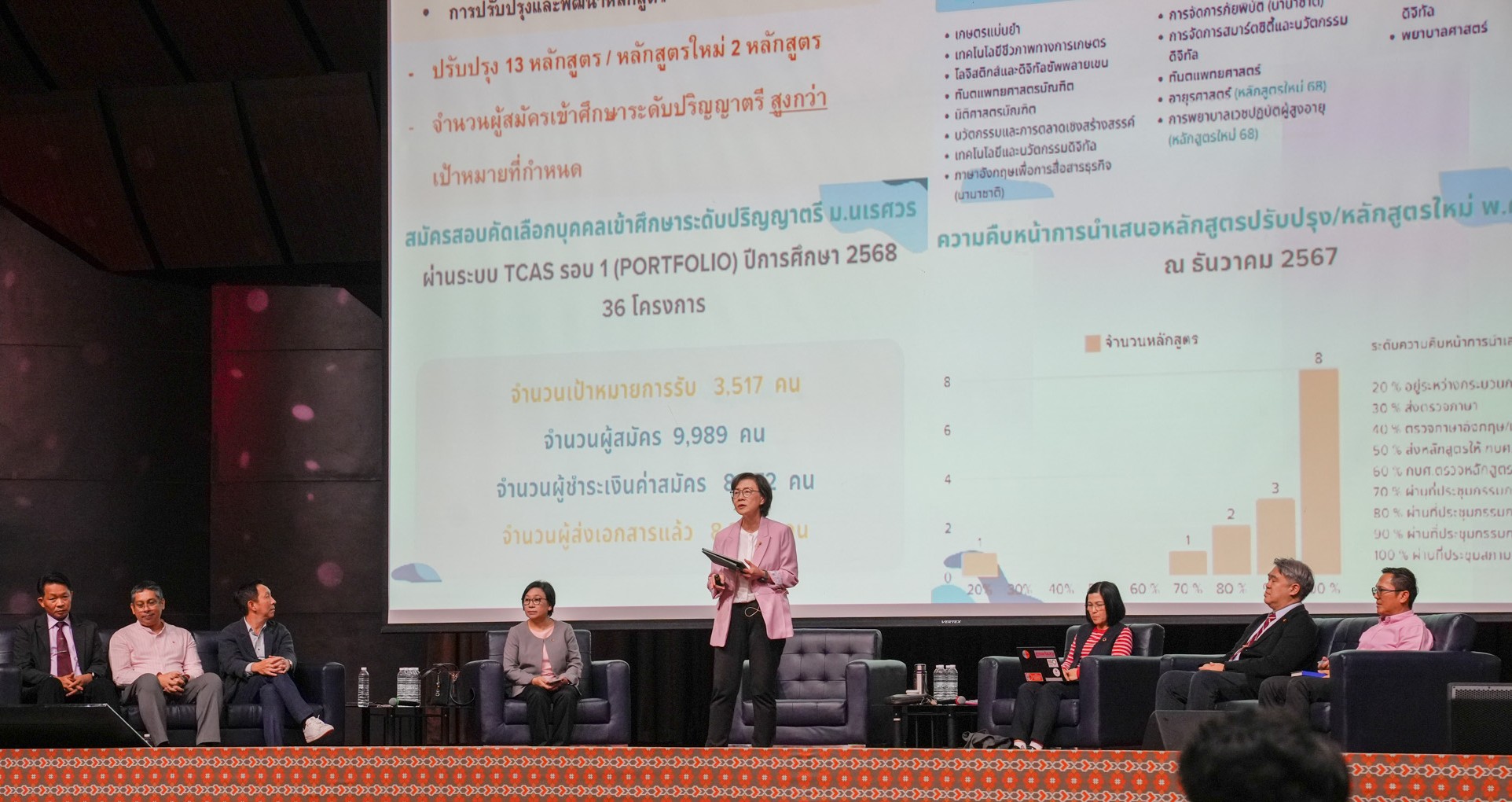 วันที่ 14 กุมภาพันธ์ 2568 รองศาสตราจารย์ ดร.สุขกิจ ยะโสธรศรีกุล คณบดีคณะวิทยาศาสตร์การแพทย์ พร้อมด้วย รองศาสตราจารย์ ดร.วรศักดิ์ แก้วก่อง รองคณบดีฝ่ายบริหารและส่งเสริมความยั่งยืน, รองศาสตราจารย์ ดร.รักษิณา พลสีลา รองคณบดีฝ่ายการจัดการหลักสูตร, ดร.หทัยชนก อิ่มเพ็ง รองคณบดีฝ่ายพัฒนานิสิต, ดร.ระพี ธรรมมีภักดิ์ ผู้ช่วยคณบดี และนายแพทย์ณรงค์ จัตุรัส ผู้ช่วยคณบดี และบุคลากรคณะวิทยาศาสตร์การแพทย์ เข้าร่วมกิจกรรมเวทีผู้บริหารพบประชาคม ครั้งที่ 1 ประจำปีงบประมาณ 2568 เพื่อรับฟังผลการดำเนินงานการบริหารมหาวิทยาลัยนเรศวร ณ หอประชุมมหาราช อาคารอุทยานองค์สมเด็จพระนเรศวรมหาราช ชั้น 2 มหาวิทยาลัยนเรศวร