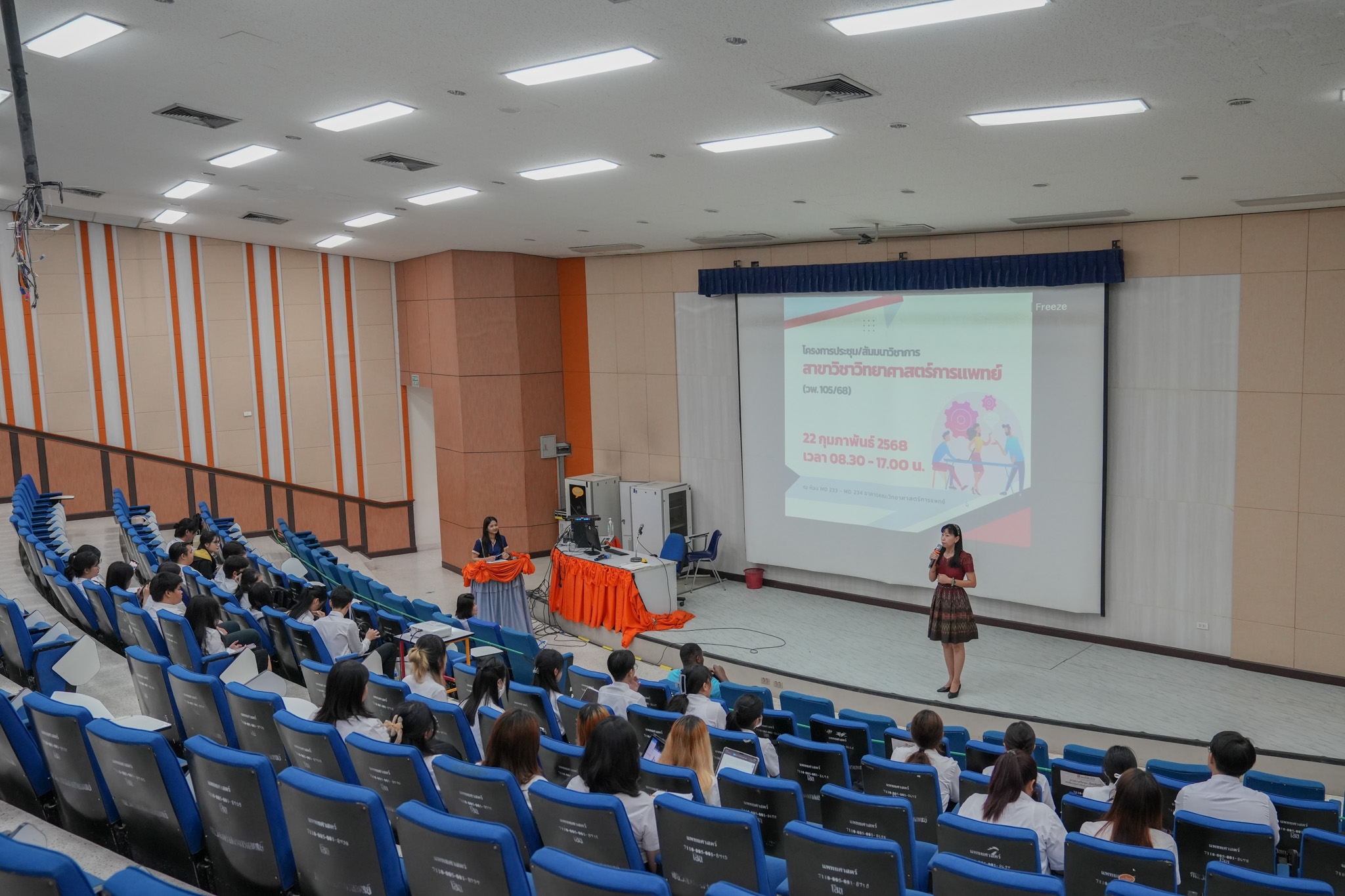 หลักสูตรวิทยาศาสตร์การแพทย์ดำเนินการจัดโครงการประชุม/สัมมนาวิชาการ สาขาวิชาวิทยาศาสตร์การแพทย์ ในภาคเรียนปลายของปีการศึกษา 2567 ให้กับนิสิตสาขาวิชาวิทยาศาสตร์การแพทย์ (ตรีต่อเนื่องโท) ชั้นปีที่ 3 ในวันเสาร์ที่ 22 กุมภาพันธ์ 2568 ณ ห้อง MD 233 และ MD 234 อาคารคณะวิทยาศาสตร์การแพทย์ ระหว่างเวลา 08.30 – 17.00 น. โดยมีวัตถุประสงค์เพื่อให้นิสิตสาขาวิชาวิทยาศาสตร์การแพทย์ได้มีโอกาสนำเสนอผลงานวิชาการด้านวิทยาศาสตร์การแพทย์เสมือนการนำเสนอผลงานทางวิชาการในงานประชุมจริงด้วยวาจา โดยใช้ภาษาอังกฤษ