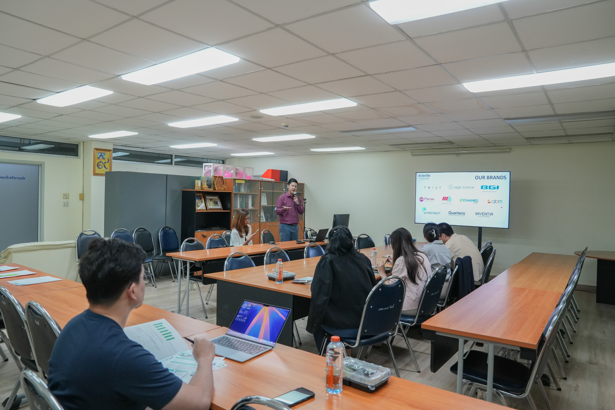 วันจันทร์ที่ 24 กุมภาพันธ์ 2568 ที่ผ่านมา หน่วยวิจัย คณะวิทยาศาสตร์การแพทย์ ได้จัดกิจกรรม R&I Lunch ณ ห้อง MD 134 โดยมีเป้าหมายเพื่อส่งเสริมความร่วมมือด้านการวิจัยระหว่าง คณะวิทยาศาสตร์การแพทย์ และ บริษัท RI technology ซึ่งเป็นบริษัทที่ทำเกี่ยวกับผลิตภัณฑ์และการบริการด้าน DNA synthesis & DNA sequencing