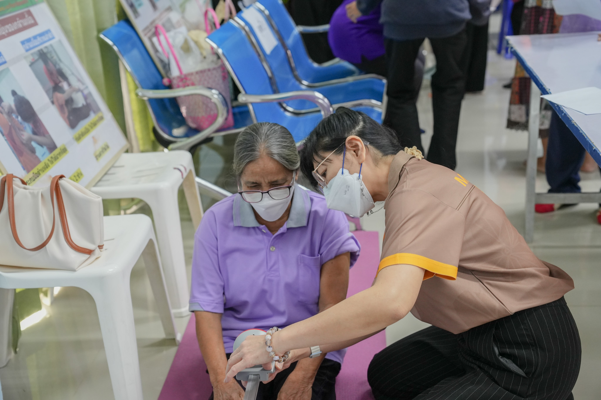 กิจกรรมเรียนรู้มหัศจรรย์การทำงานของร่างกายมนุษย์ เรียนรู้โภชนาการที่ดีถูกสุขลักษณะของผู้สูงอายุ ตรวจวัดไขมันและน้ำตาลในเลือดผู้สูงอายุ และกิจกรรมตรวจวัดสมรรถภาพร่างกายผู้สูงอายุ (โดยวิทยากร : คณาจารย์ เจ้าหน้าที่ และนิสิตภาควิชาสรีรวิทยา)