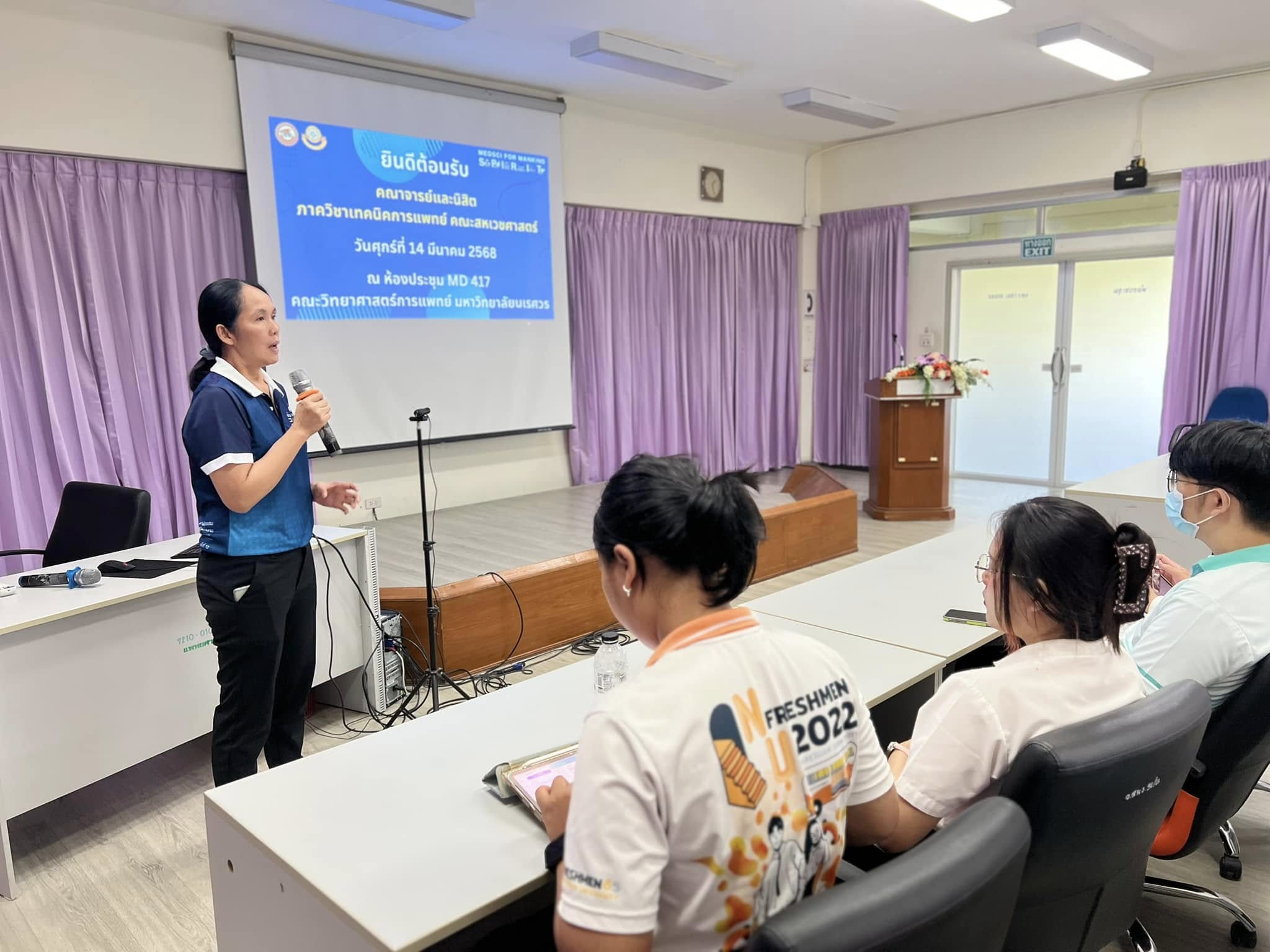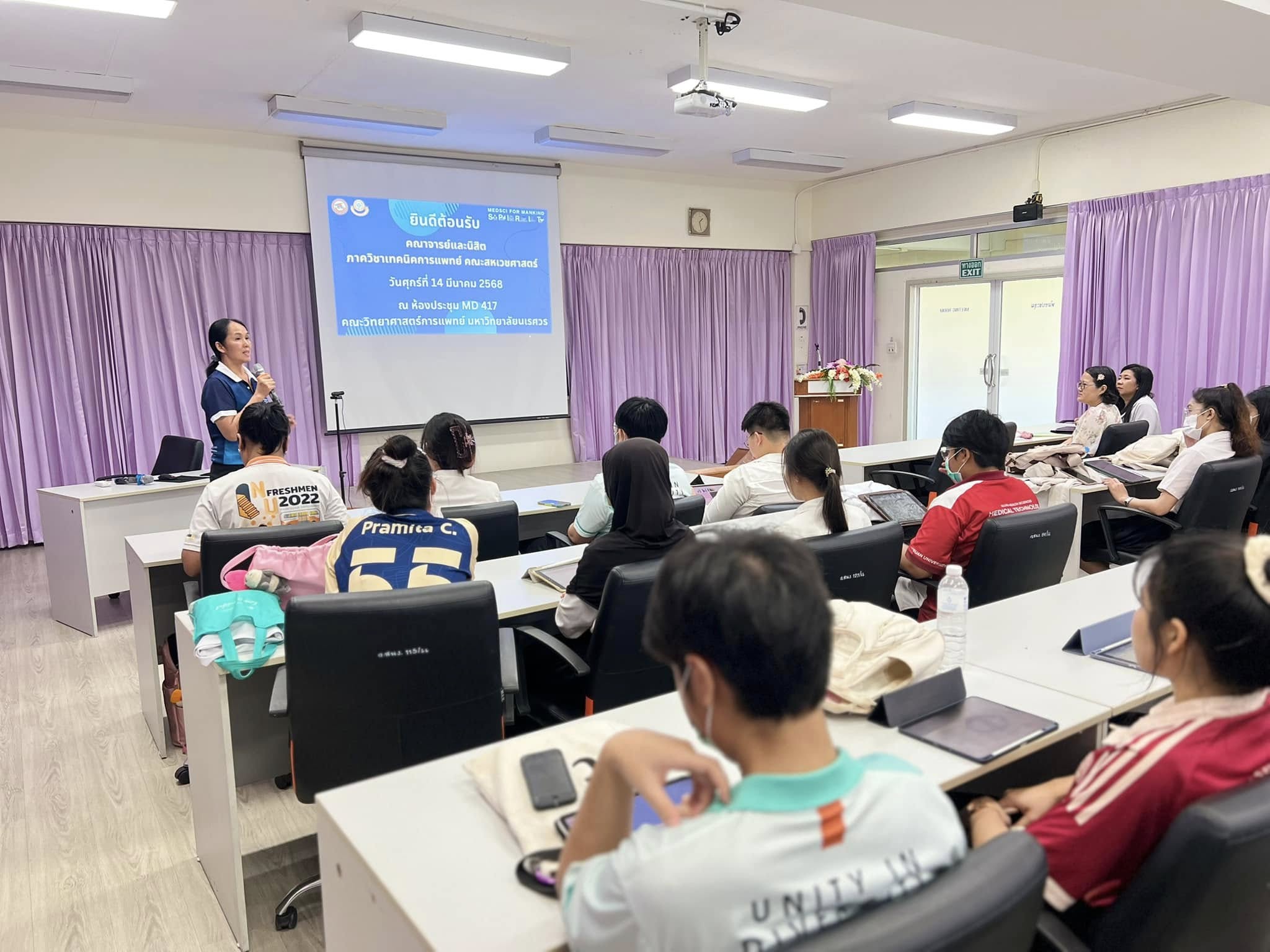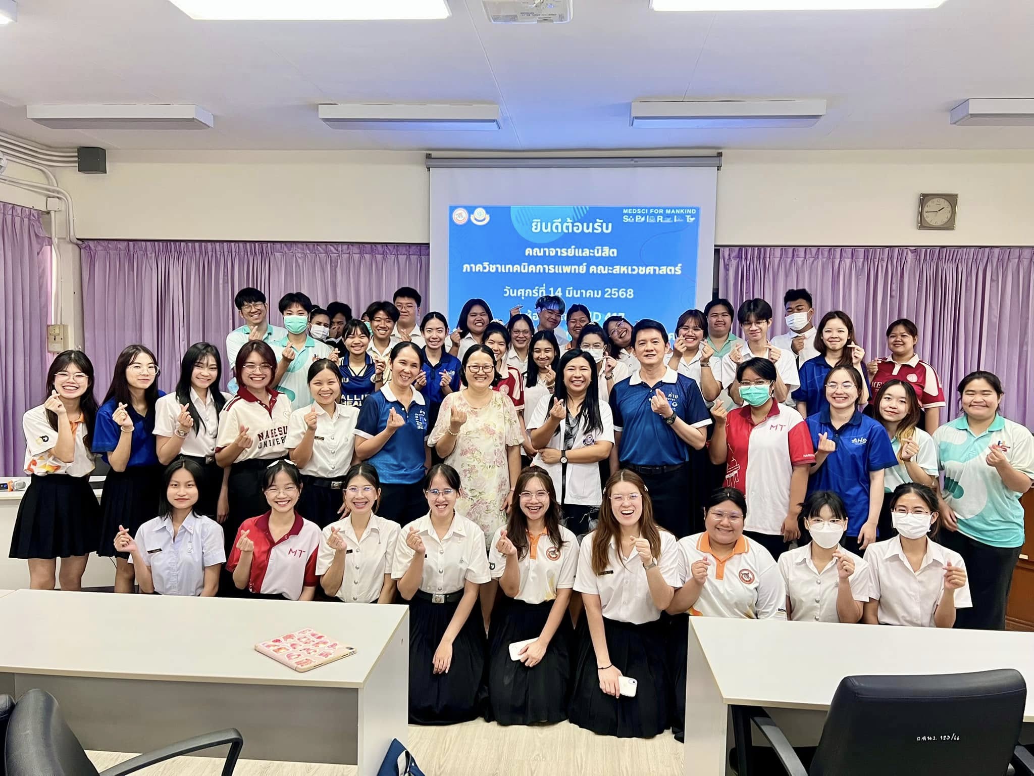 เมื่อวันศุกร์ที่ 14 มีนาคม 2568 สถานบริการวิชาการด้านวิทยาศาสตร์การแพทย์ คณะวิทยาศาสตร์การแพทย์ ร่วมต้อนรับ ดร.วัชรินทร์ เทียนสันต์ ผู้ช่วยศาสตราจารย์ ดร.ยอดหทัย ทองศรี และนิสิตระดับปริญญาตรี (ชั้นปีที่ 3) จำนวน 42 ท่าน(ในรายวิชา 651367 การจัดการความปลอดภัยในห้องปฏิบัติการทางการแพทย์) ภาควิชาเทคนิคการแพทย์ คณะสหเวชศาสตร์ เข้าเยี่ยมชมห้องปฏิบัติการที่ได้รับการรับรองระบบการจัดการด้านความปลอดภัยของห้องปฏิบัติการที่เกี่ยวข้องกับสารเคมี ตามมาตรฐาน “มอก. 2677 เล่ม 1 – 2558” และห้องปฏิบัติการความปลอดภัยทางชีวภาพ ระดับที่ 2 ณ ห้องประชุม MD 417 และห้องปฏิบัติการ สถานบริการวิชาการด้านวิทยาศาสตร์การแพทย์ คณะวิทยาศาสตร์การแพทย์ มหาวิทยาลัยนเรศวร