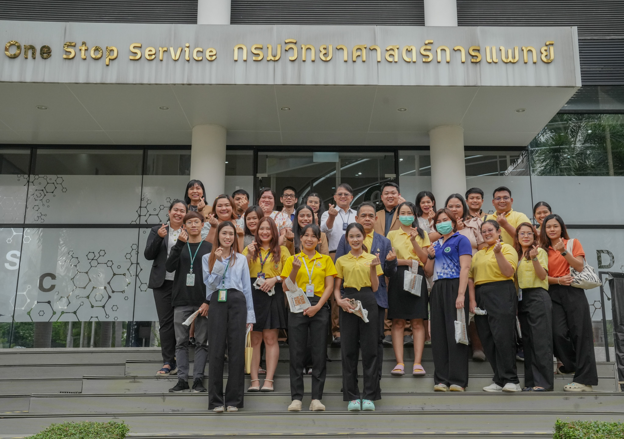 วันที่ 31 มีนาคม 2568 คณะผู้บริหารคณะวิทยาศาสตร์การแพทย์ นำโดย รองศาสตราจารย์ ดร.สุขกิจ ยะโสธรศรีกุล คณบดี และ ดร.หทัยชนก อิ่มเพ็ง รองคณบดีฝ่ายพัฒนานิสิต ได้นัดหมายเพื่อพบปะพูดคุยกับศิษย์เก่า คณะวิทยาศาสตร์การแพทย์ที่ปฏิบัติงานในห้องปฏิบัติการ และหน่วยงานย่อยต่างๆในกรมวิทยาศาสตร์การแพทย์ รวมมากกว่า 20 ท่าน ซึ่งประกอบไปด้วยศิษย์เก่าตั้งแต่ยุคเริ่มต้นของการก่อตั้งคณะและหลักสูตรฯ จนกระทั่งบุคลากรรายล่าสุดซึ่งเป็นศิษย์เก่ารหัส 62 สาขาวิชาจุลชีววิทยา ที่ก็เริ่มต้นจากการเข้ามาฝึกปฏิบัติสหกิจศึกษาและบรรจุเป็นพนักงานของกรมวิทยาศาสตร์การแพทย์
