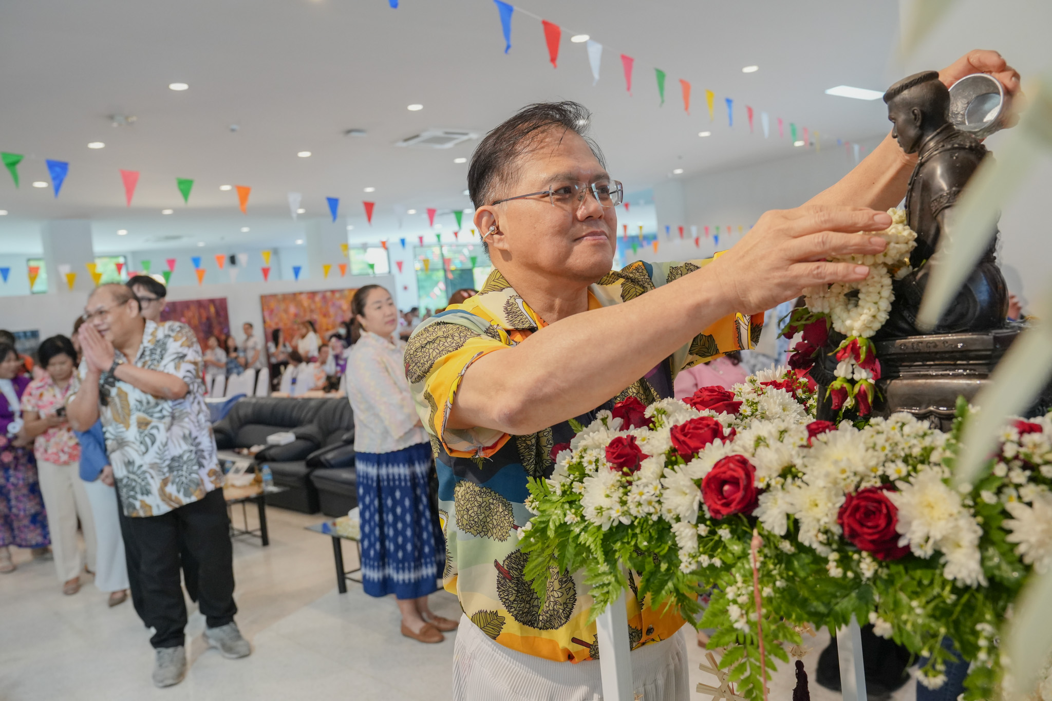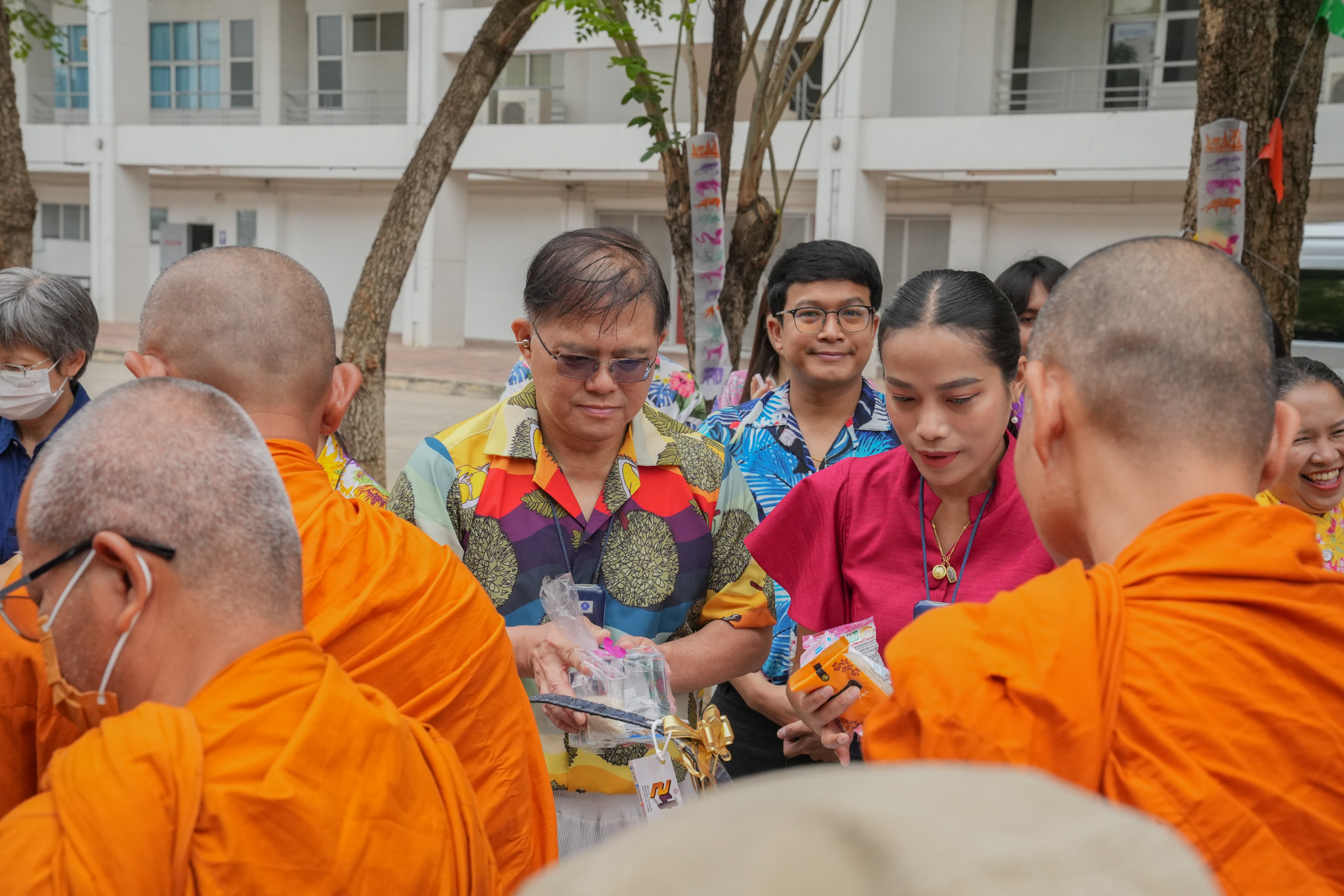 วันที่ 3 เมษายน 2568 รศ.ดร.สุขกิจ ยะโสธรศรีกุล คณบดีคณะวิทยาศาสตร์การแพทย์ พร้อมด้วย รศ.ดร.รักษิณา พลสีลา รองคณบดีฝ่ายการจัดการหลักสูตร, ดร.หทัยชนก อิ่มเพ็ง รองคณบดีฝ่ายพัฒนานิสิต, นายแพทย์ณรงค์ จัตุรัส ผู้ช่วยคณบดี และบุคลากร คณะวิทยาศาสตร์การแพทย์ เข้าร่วมกิจกรรม “สุขสราญ สงกรานต์ มอนอ” ประจำปี 2568 เพื่อร่วมสืบสานประเพณีไทยอันงดงาม และเสริมสร้างความเป็นสิริมงคลในเทศกาลปีใหม่ไทย