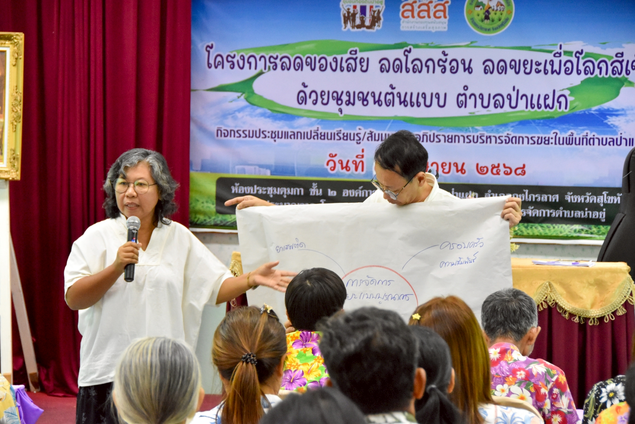 วันพุธที่ 9 เมษายน 2568 หน่วยบริการวิชาการเพื่อชุมชน คณะวิทยาศาสตร์การแพทย์ ได้จัดกิจกรรมการให้ความรู้ เรื่อง “การจัดการขยะอินทรีย์ด้วยเทคโนโลยีชีวภาพ” โดยวิทยากร ดร.วิสาข์ สุพรรณไพบูลย์ (อาจารย์ประจำภาควิชาชีวเคมี คณะวิทยาศาสตร์การแพทย์) และคุณกัญญาวีร์ ฟักทอง (นักวิชาการอิสระ) ได้ให้ความรู้แก่ คณะผู้บริหารและบุคลากรองค์การบริหารส่วนตำบลป่าแฝก โดยมีตัวแทนกลุ่มผู้นำชุมชน และประชาชนตำบลป่าแฝก ร่วมเสนอแนวทางดำเนินการลดของเสีย ลดโลกร้อน และลดขยะด้วยชุมชนต้นแบบ ณ องค์การบริหารส่วนตำบลป่าแฝก อำเภอกงไกรลาศ จังหวัดสุโขทัย