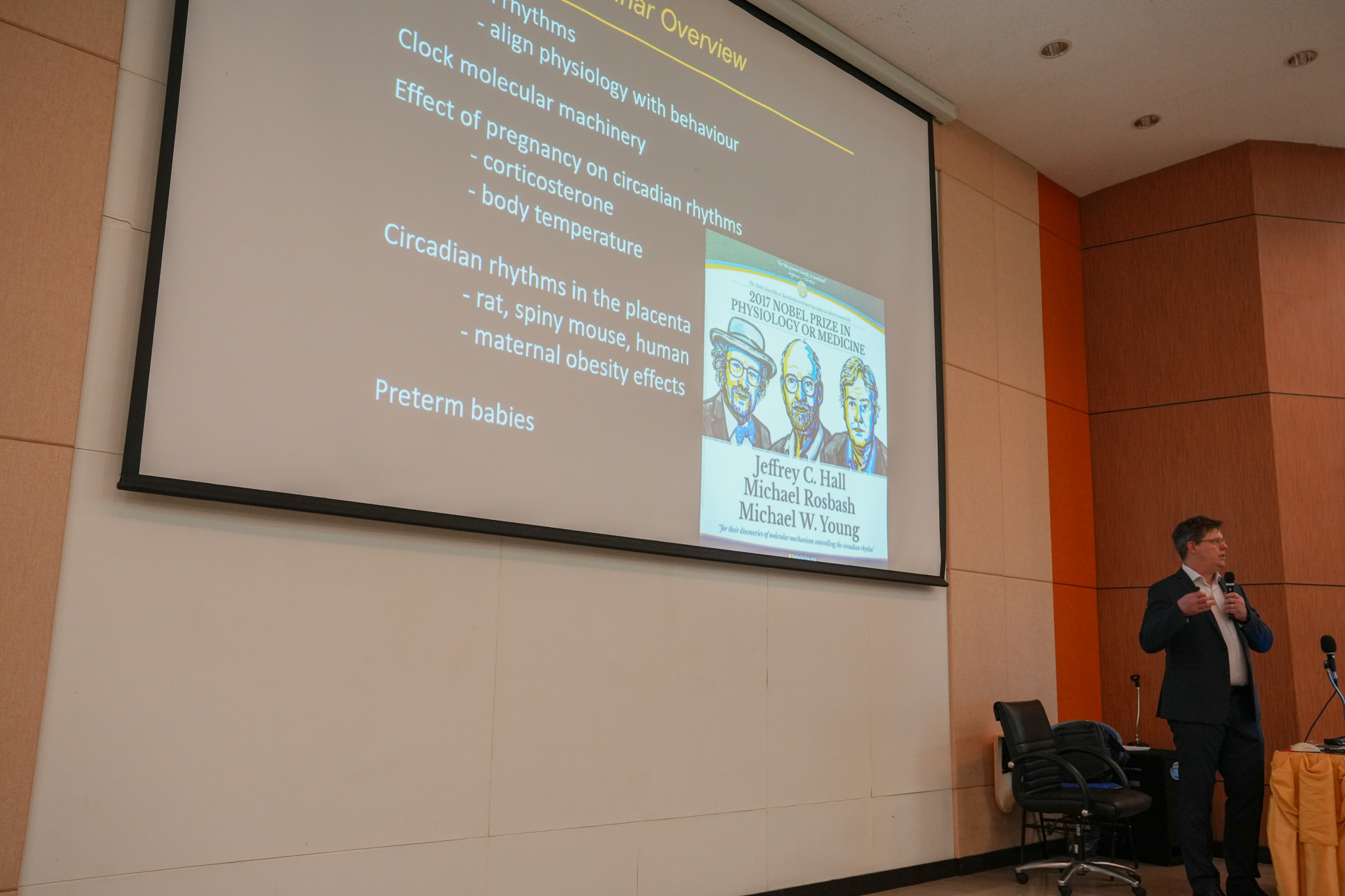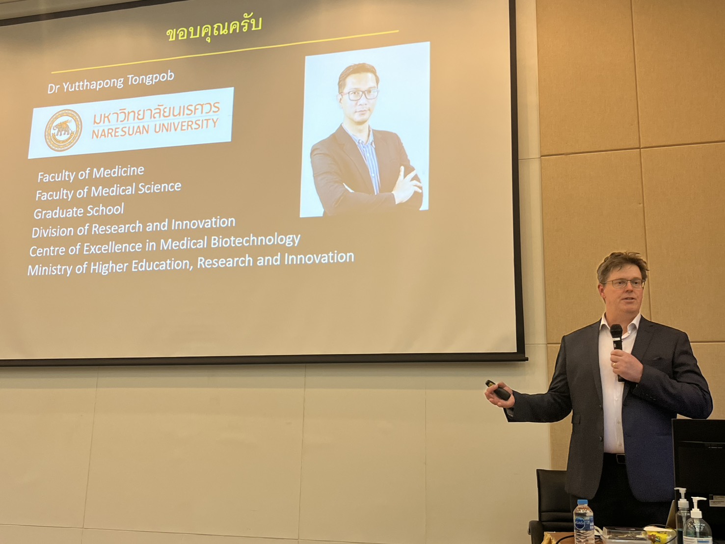 วันที่ 21 เมษายน 2568 คณะวิทยาศาสตร์การแพทย์ ร่วมกับ คณะแพทยศาสตร์, บัณฑิตวิทยาลัย, สถานวิจัยเพื่อความเป็นเลิศทางด้านเทคโนโลยีชีวภาพทางการแพทย์ และกองวิจัยและนวัตกรรม มหาวิทยาลัยนเรศวร ได้จัดกิจกรรม “International Seminar Series” ในหัวข้อ: “Reintroduction of circadian cues to preterm neonates, to improve postnatal outcomes” โดยได้รับเกียรติจาก Associate Professor Dr. Peter Mark จาก University of Western Australia, Australia