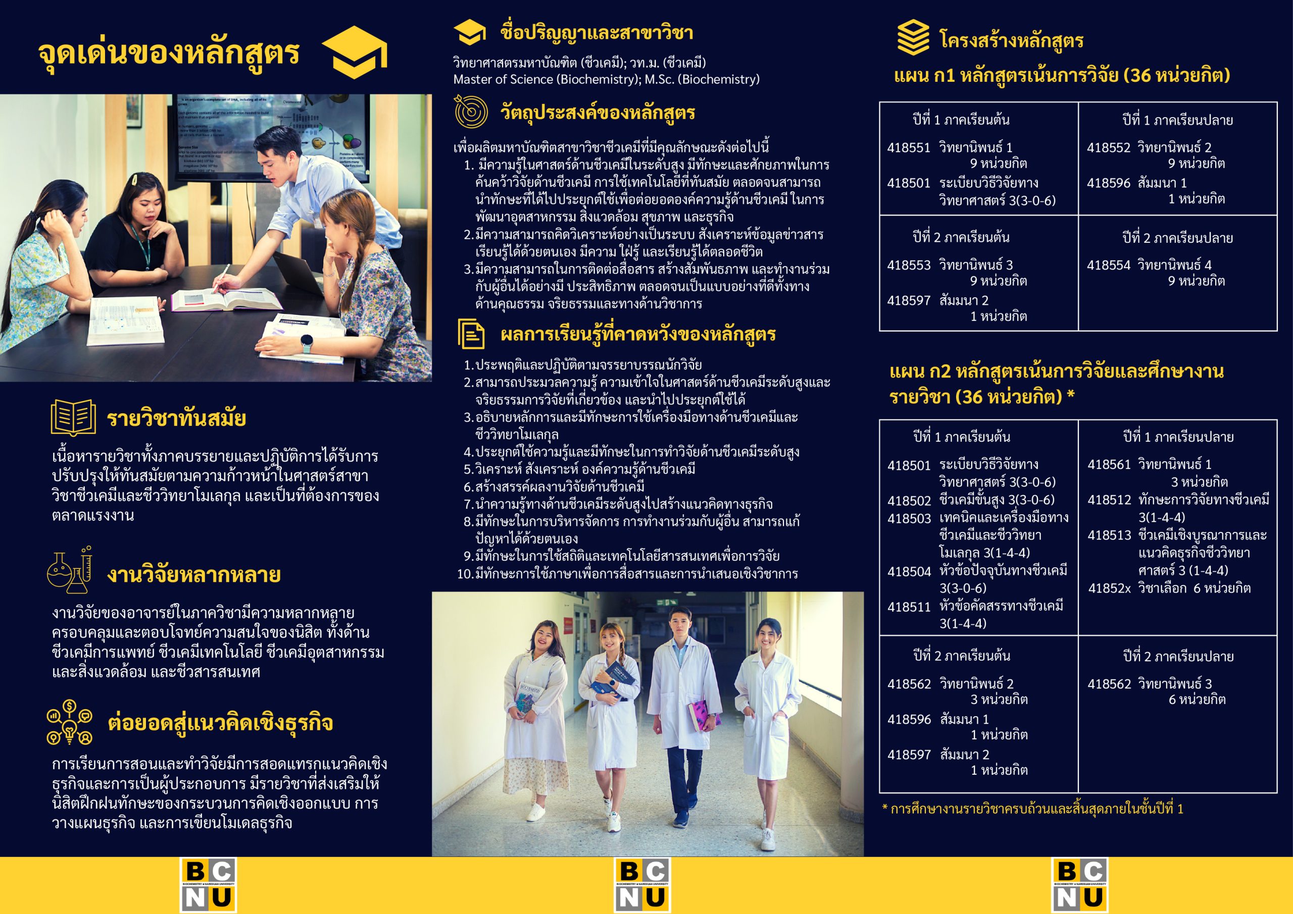 แผ่นพับหลักสูตรวิทยาศาสตรมหาบัณฑิต สาขาวิชาชีวเคมี