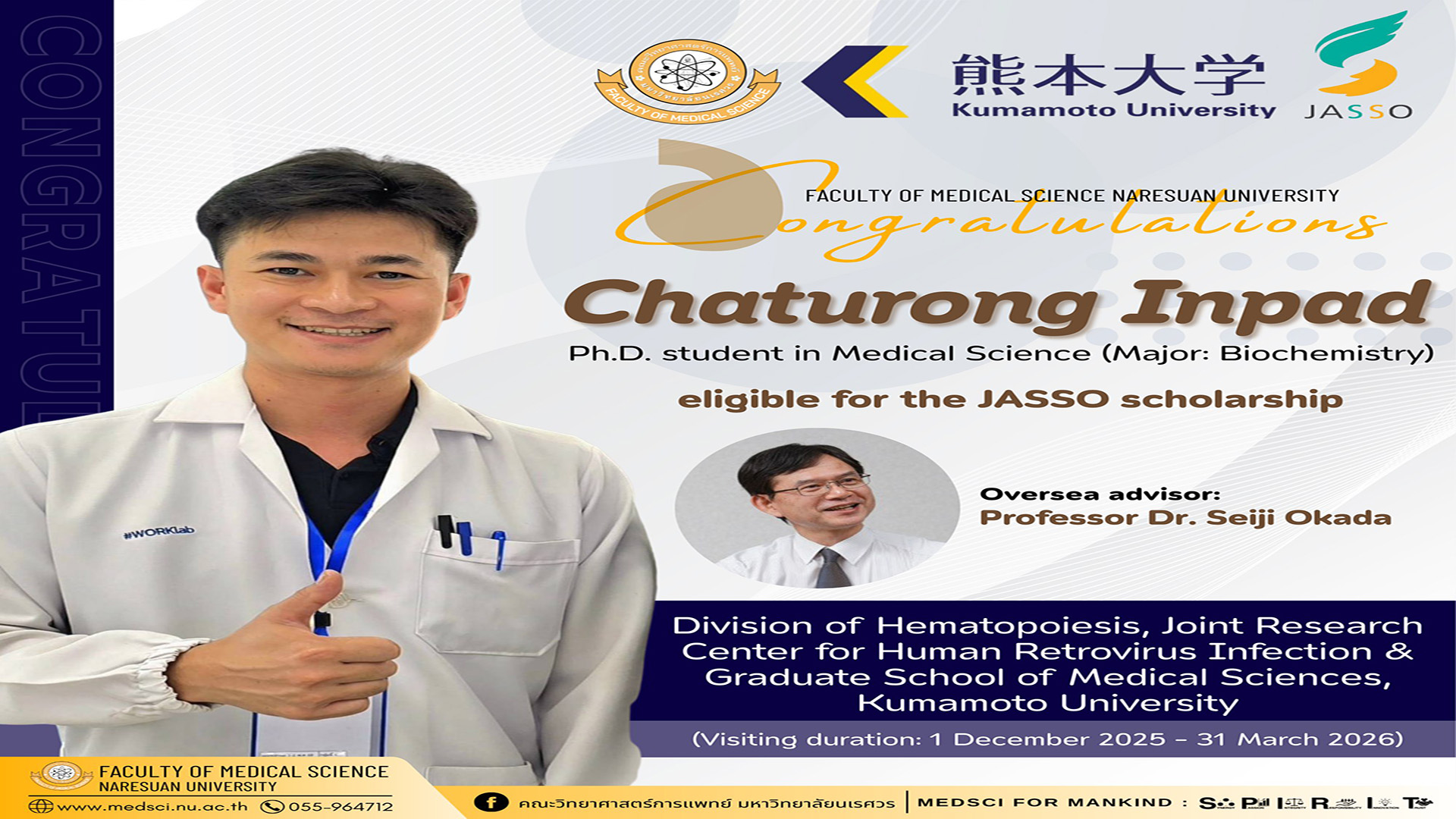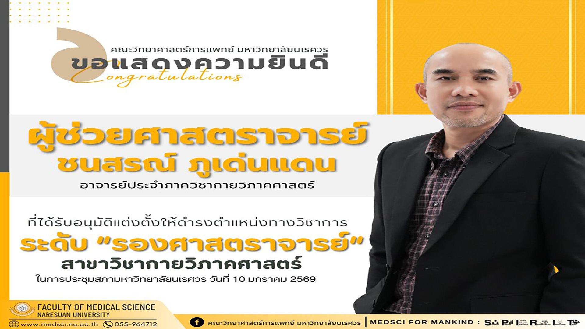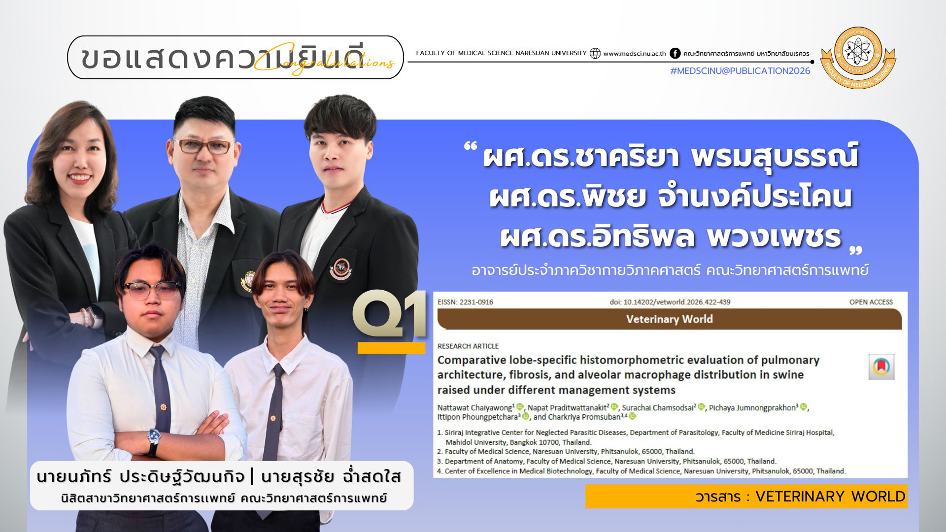 คณะวิทยาศาสตร์การแพทย์ ขอแสดงความยินดีกับผศ.ดร.ชาคริยา พรมสุบรรณ์ผศ.ดร.พิชย จำนงค์ประโคนผศ.ดร.อิทธิพล พวงเพชรอาจารย์ประจำภาควิชากายวิภาคศาสตร์ คณะวิทยาศาสตร์การแพทย์.นายนภัทร์ ประดิษฐ์วัฒนกิจนายสุรชัย ฉ่ำสดใสนิสิตสาขาวิทยาศาสตร์การเเพทย์ คณะวิทยาศาสตร์การแพทย์ มหาวิทยาลัยนเรศวร.ที่ได้รับการตีพิมพ์ในวารสารระดับนานาชาติ…