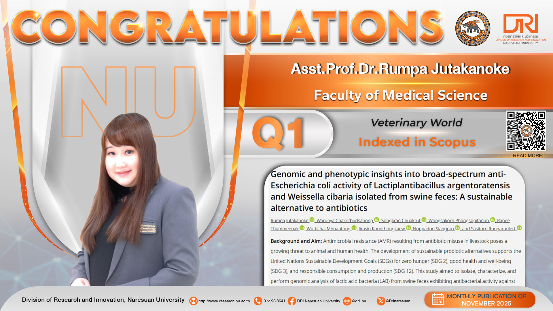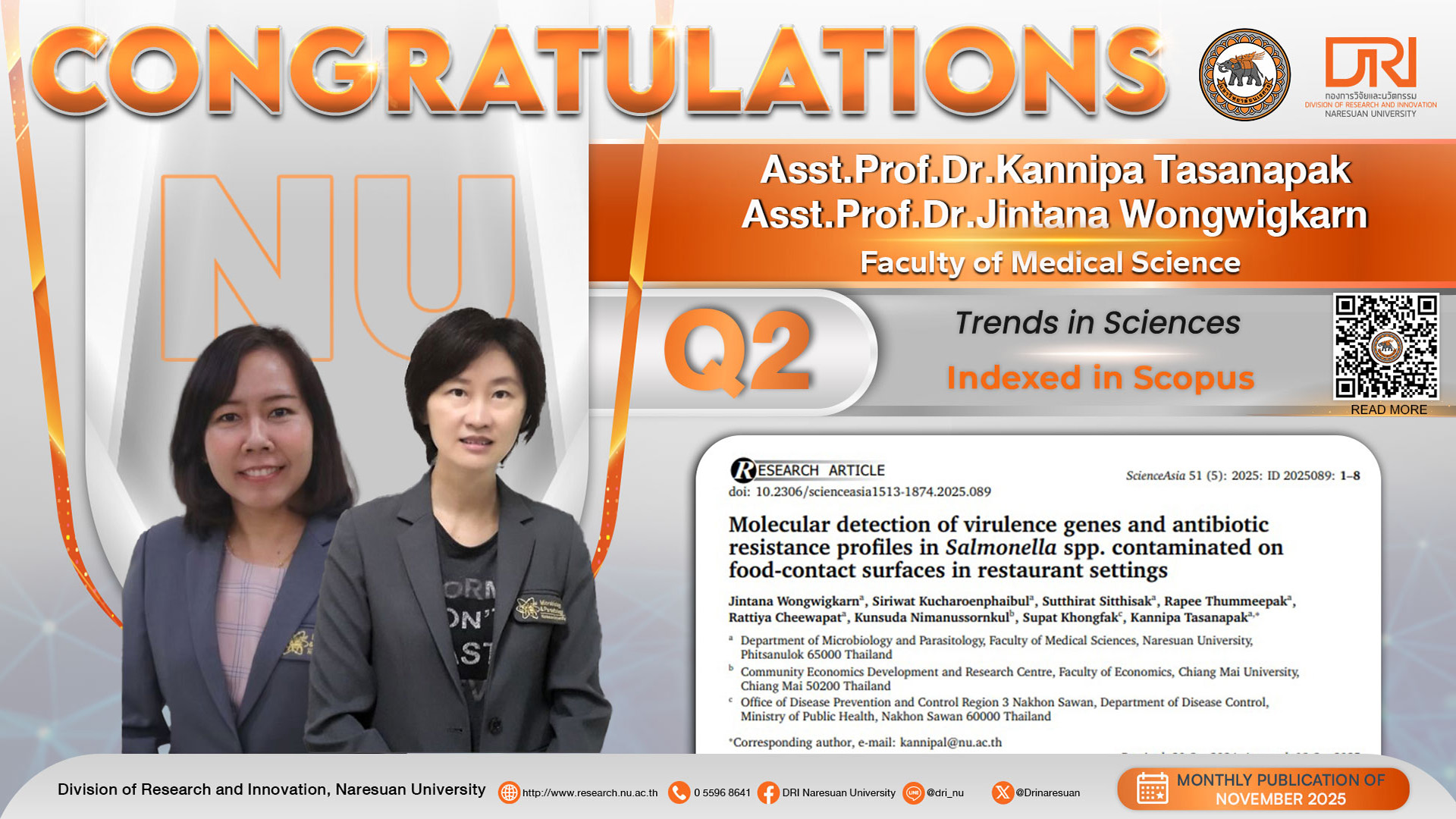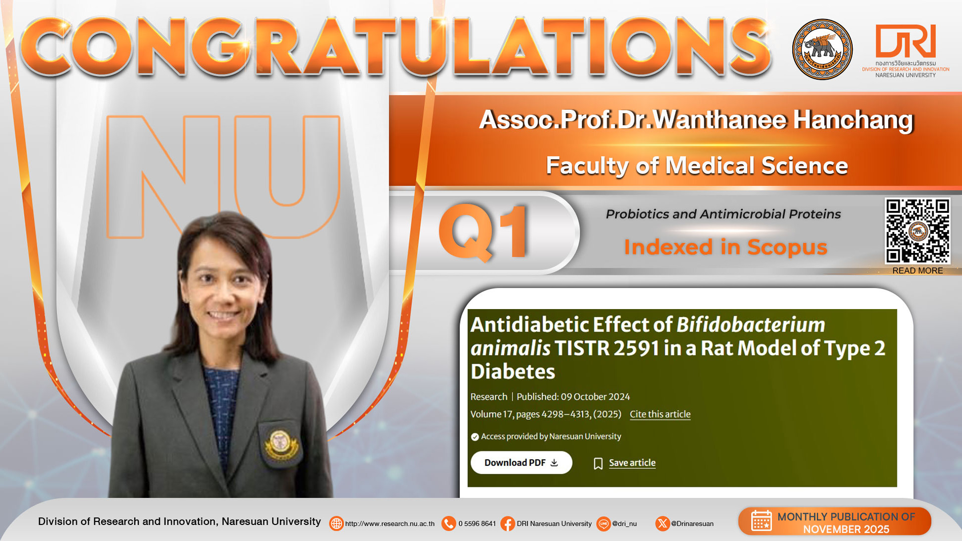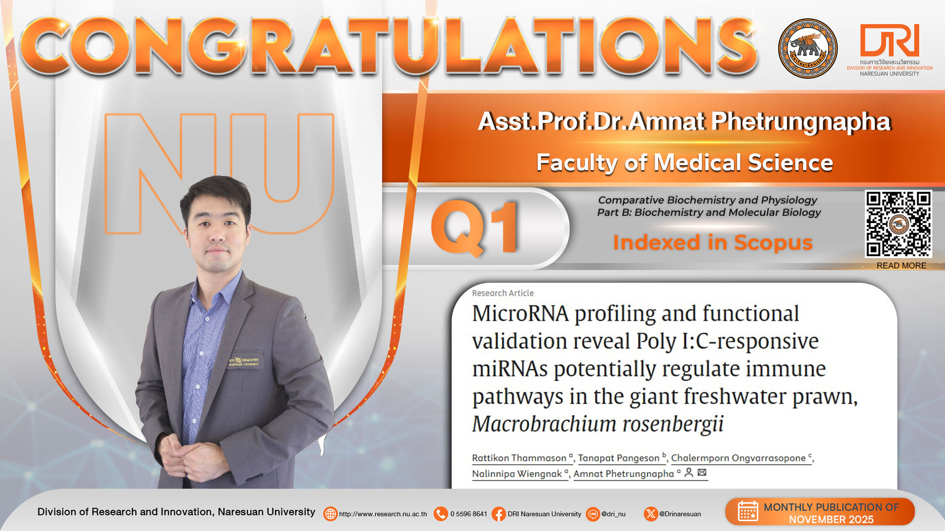 คณะวิทยาศาสตร์การแพทย์ ขอแสดงความยินดีกับผศ.ดร.ชาคริยา พรมสุบรรณ์ผศ.ดร.พิชย จำนงค์ประโคนผศ.ดร.อิทธิพล พวงเพชรอาจารย์ประจำภาควิชากายวิภาคศาสตร์ คณะวิทยาศาสตร์การแพทย์.นายนภัทร์ ประดิษฐ์วัฒนกิจนายสุรชัย ฉ่ำสดใสนิสิตสาขาวิทยาศาสตร์การเเพทย์ คณะวิทยาศาสตร์การแพทย์ มหาวิทยาลัยนเรศวร.ที่ได้รับการตีพิมพ์ในวารสารระดับนานาชาติ…